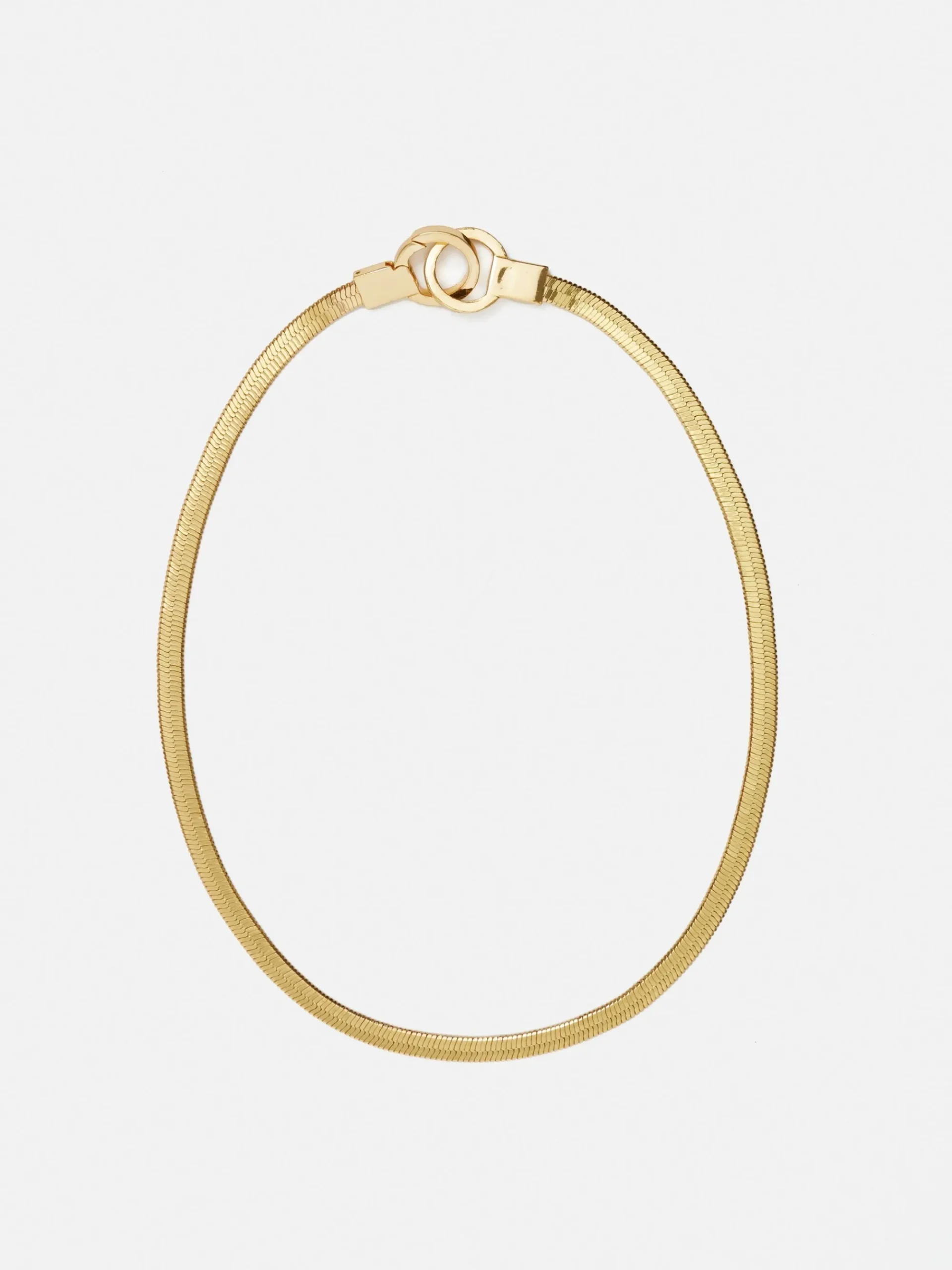 A vintage-inspired aesthetic with 24-carat gold plating. Our bespoke Chunky Snake Chain Necklace is finished with a front spring clasp fastening that can also be concealed backwards. Pairs well with your existing jewellery edit, or the matching bracelet/ earrings.