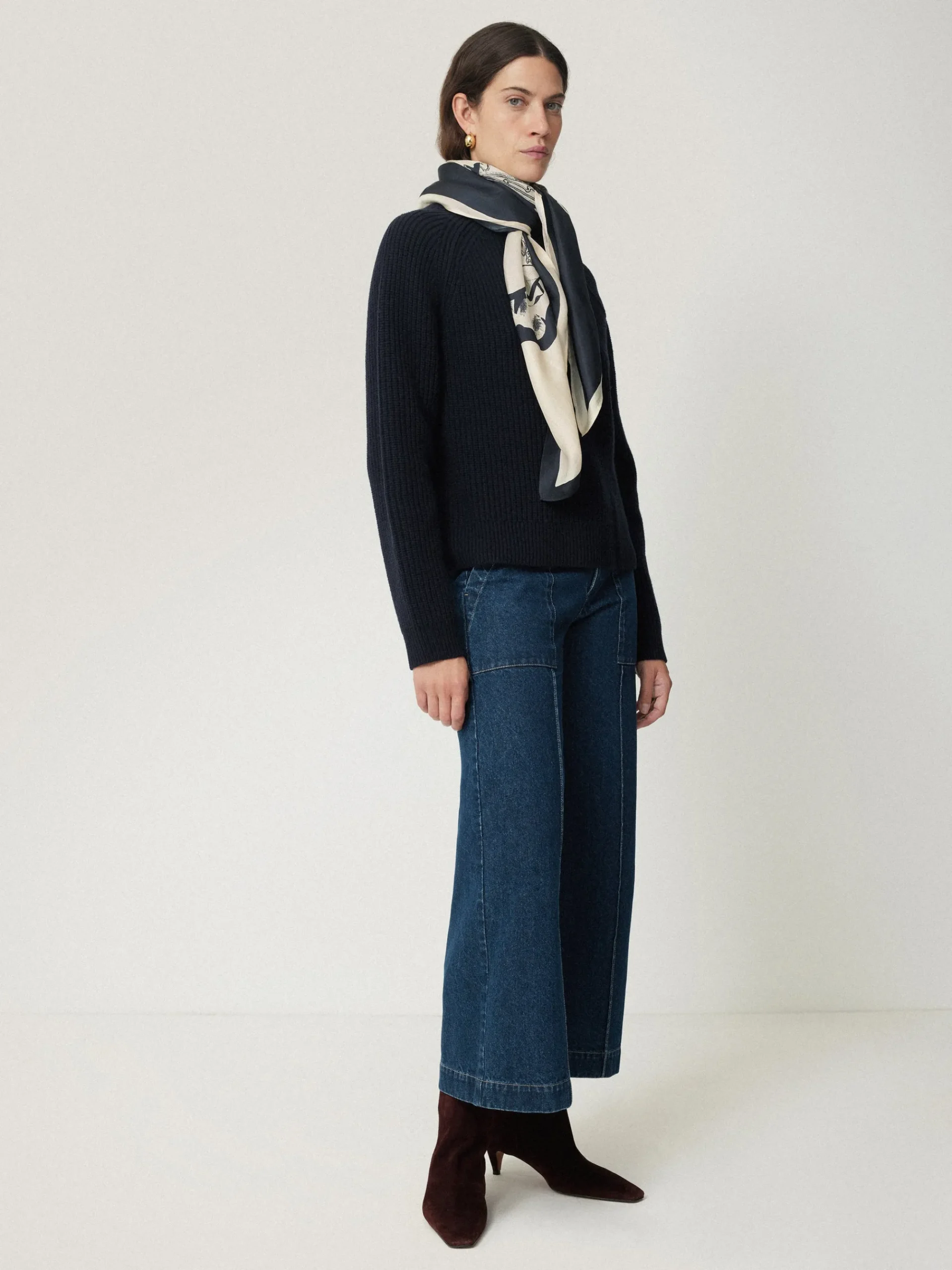 Our floral scarf started out as a collage by our in-house print designer, taking inspiration from the faded grandeur of manor houses. The repetitive pattern was then digitised onto a silk twill fabric in a graphic monochrome palette.