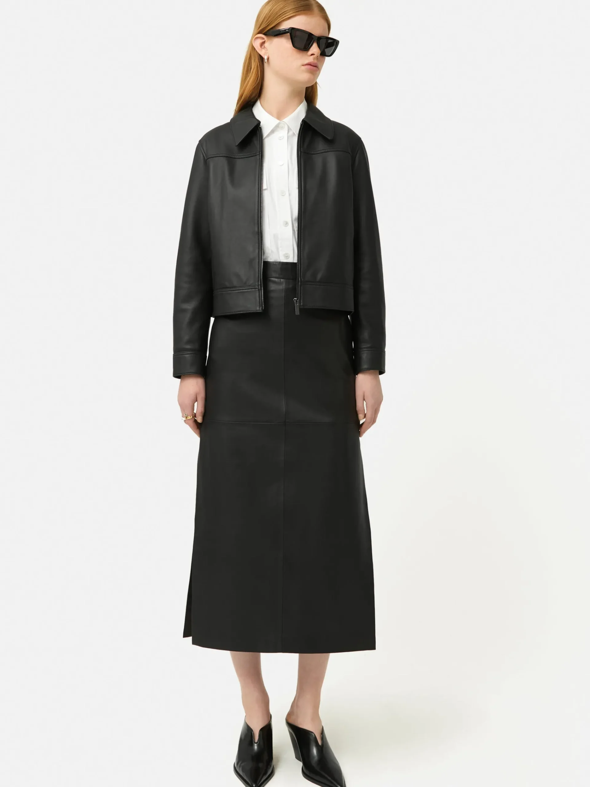 Fashioned from sumptuously soft leather, this opulent maxi skirt asserts itself as a seasonal essential. Boasting a clean, contemporary silhouette complemented by daring deep side slits, it demands attention. Pair it with knee-high boots and a slouchy knit for an unmistakably perfect autumn look.