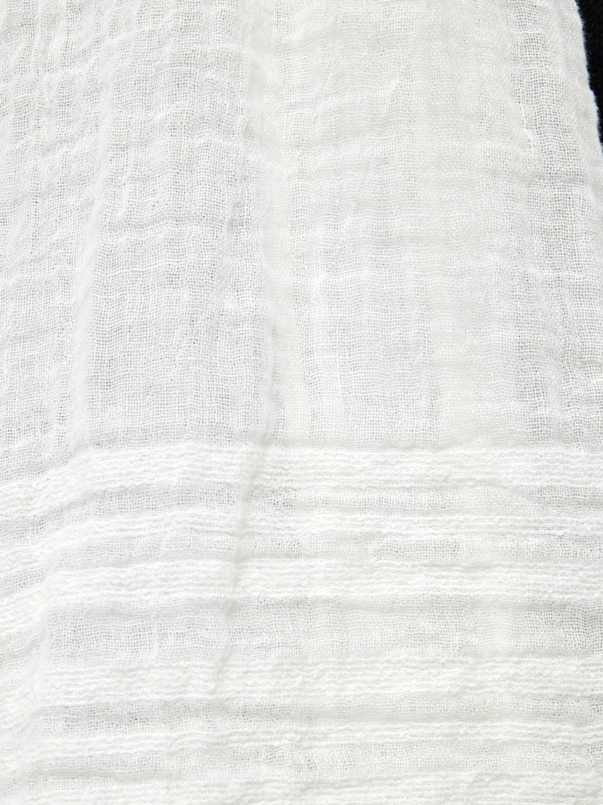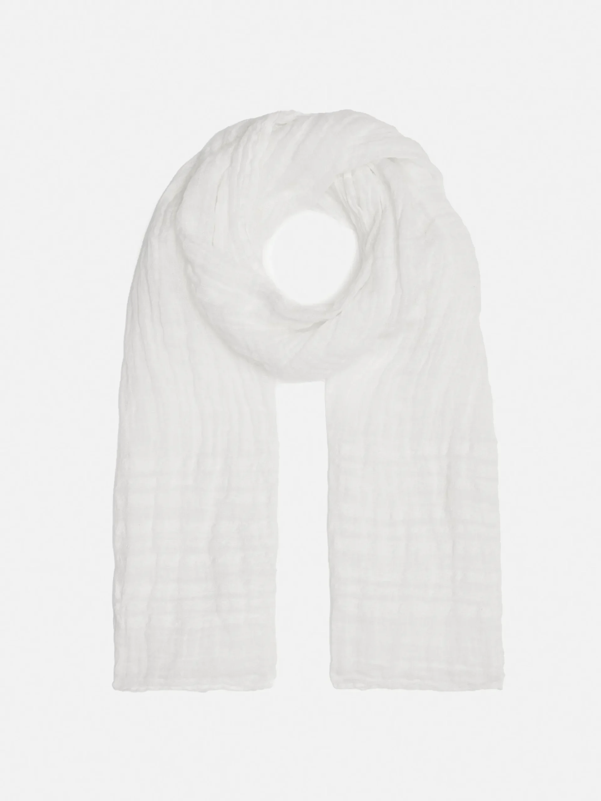 Made from 100% linen this soft, lightweight scarf is the perfect layer for spring or cool summer evenings. Available in classic white and a beautiful blue for a bold pop of colour. Slip it on over your favourite summer dress or wear with a simple tee.