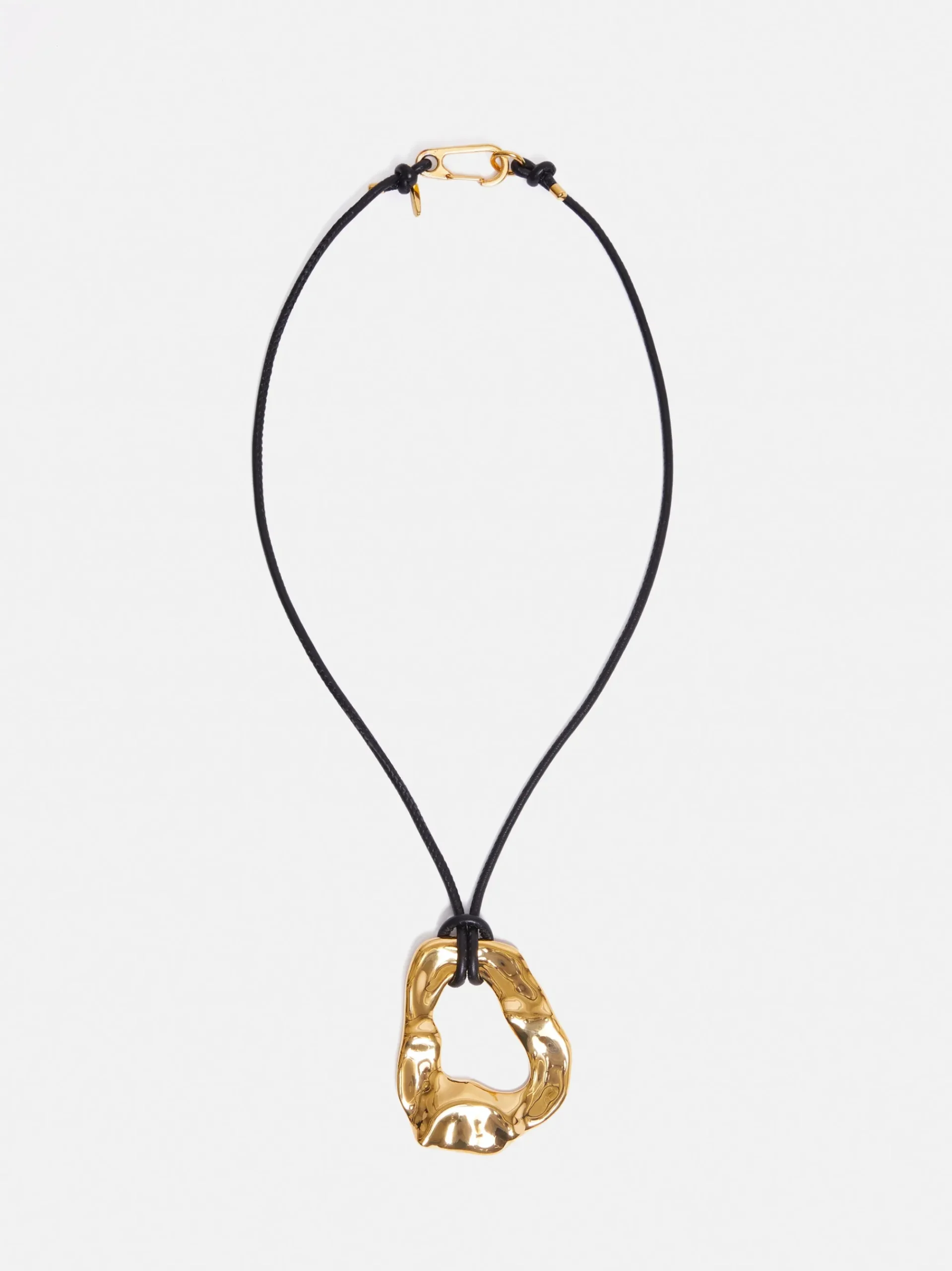 Set to stand out; the Molten Loop Leather Necklace has a polished 24-carat gold plated pendant elegantly hanging from a …