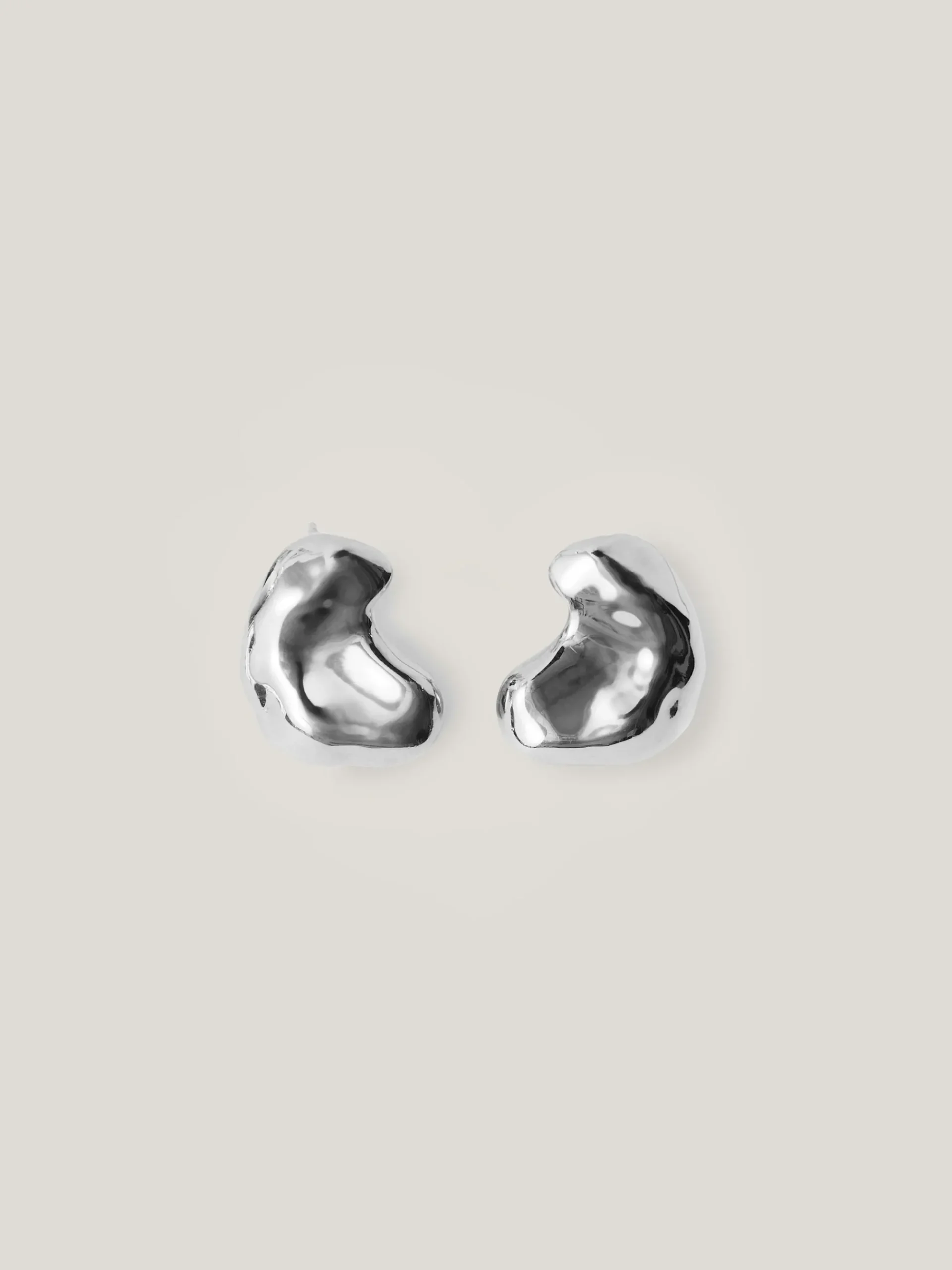 Details: Inspired by organic sculptural formations, these stud earrings feature a bespoke design in sterling silver-plated brass with a molten texture, as the perfect way to lift any day or night look.