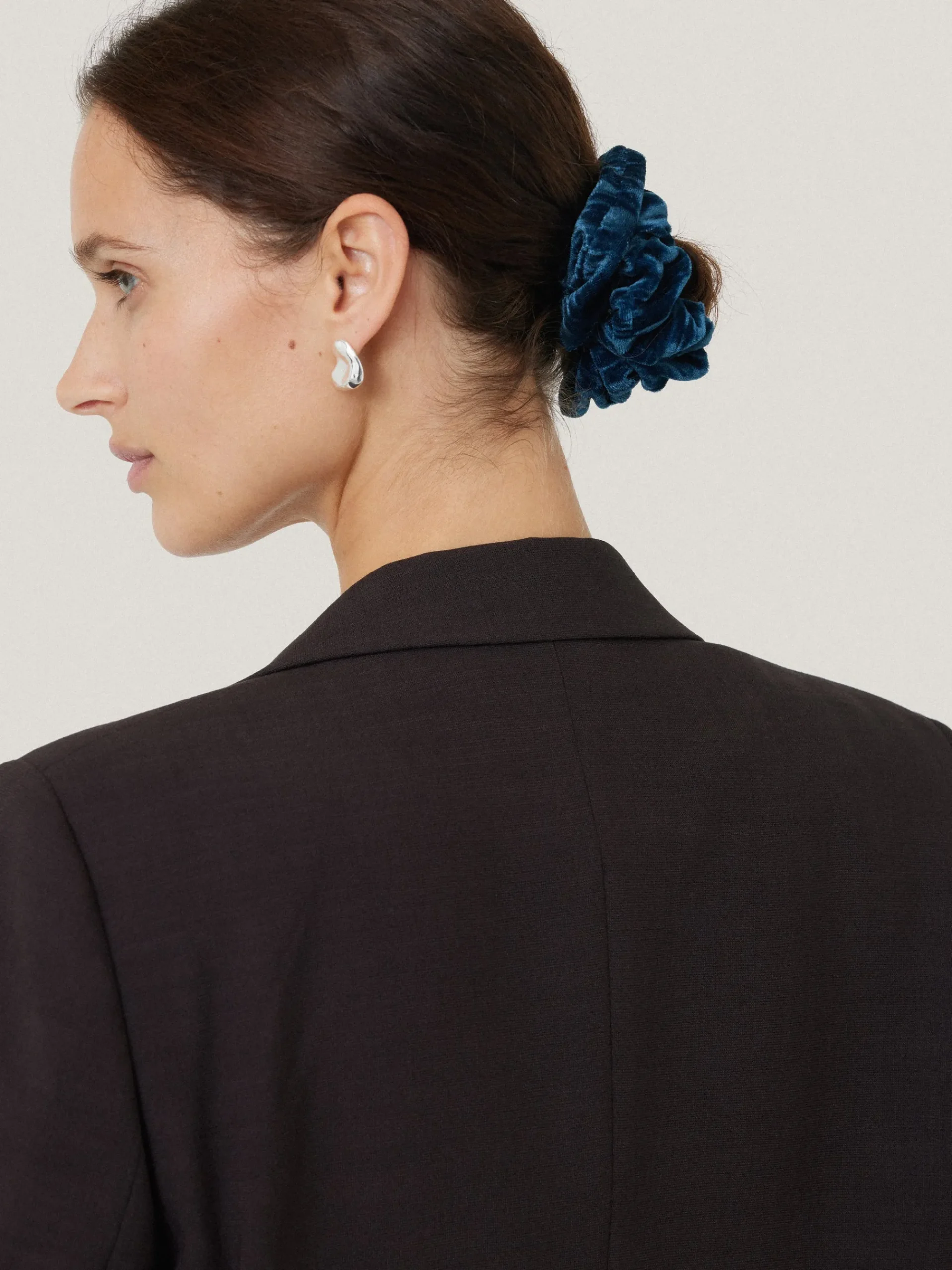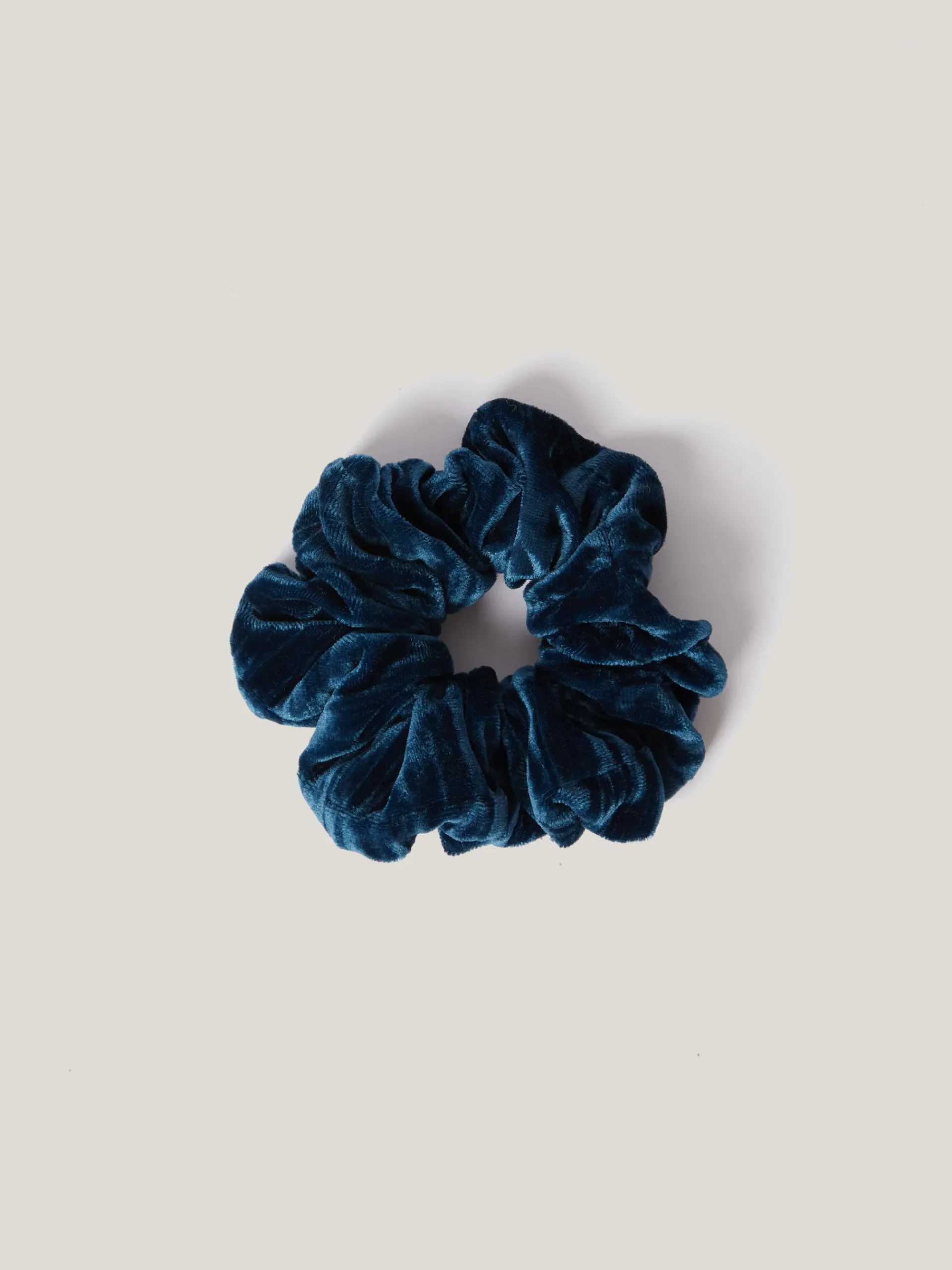 This oversized scrunchie adds a pop of jewel tone colour while instantly dressing up any hairstyle in a rich teal velvet.