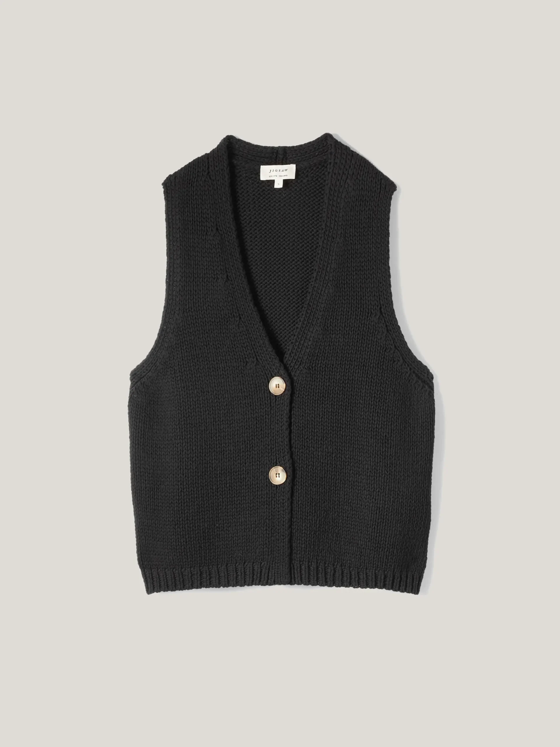 Embrace relaxed, summertime elegance with the Pure Cotton Knitted Waistcoat. Wear to perfection alone or pair with a boxy white tee.