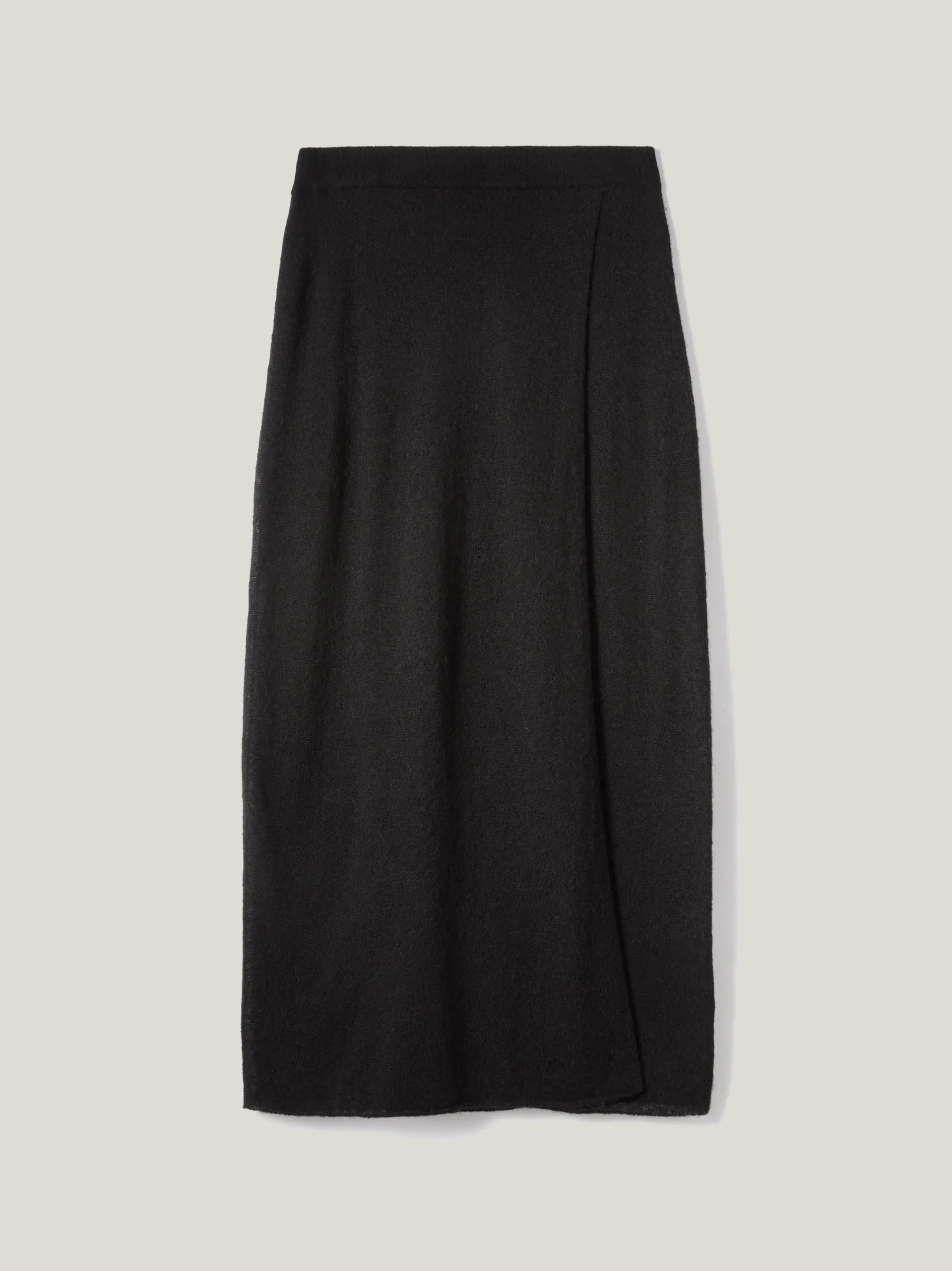 This midi skirt elevates downtime at home and beyond in a sheer gauze knit, which has been infused with ultra-soft alpaca yarns. The slim fit and fixed wrap front creates a flattering look. Forming part of a skirt and scarf in the same fabrication, wear all three pieces for a cosy head-to-toe look.