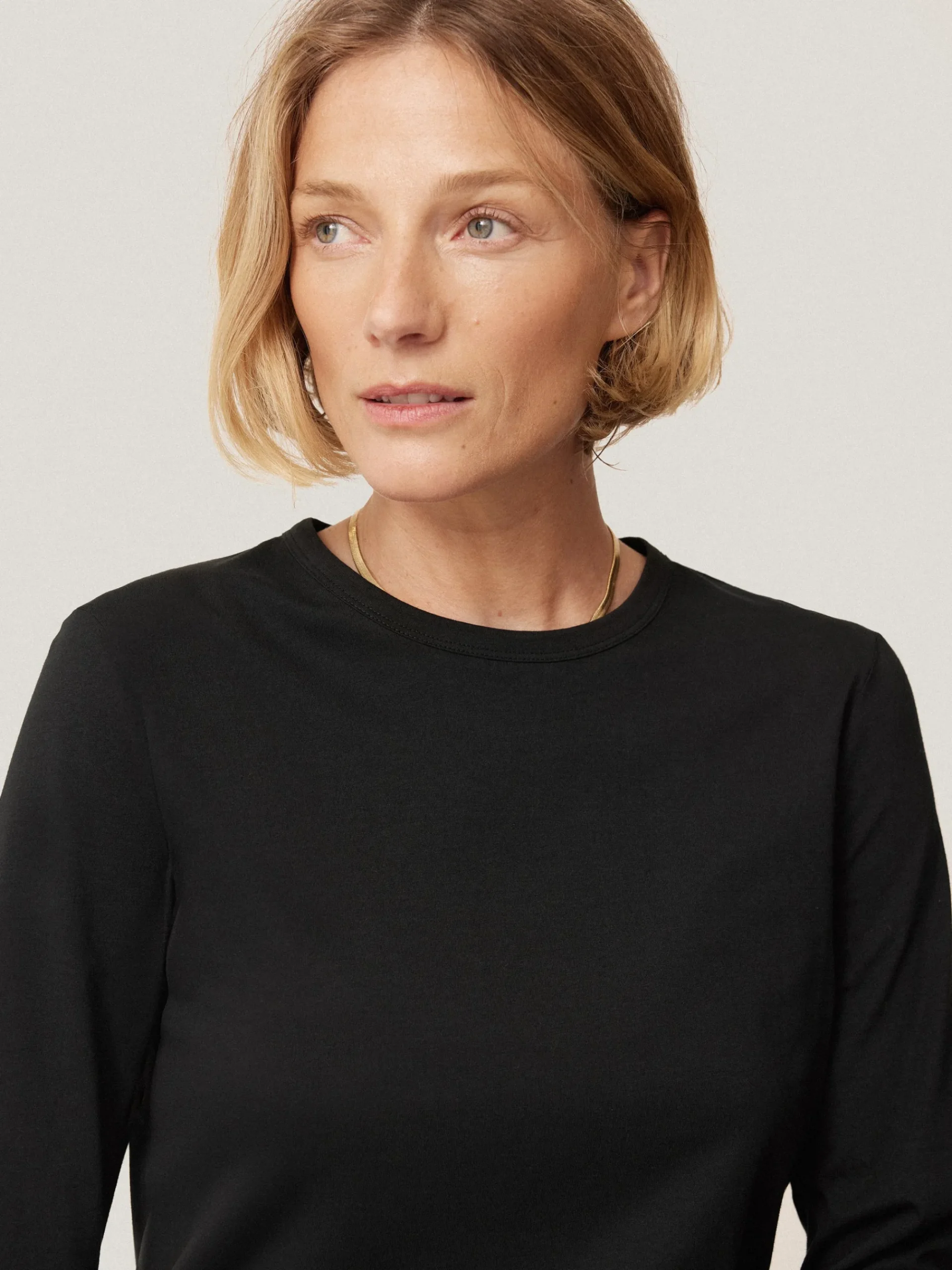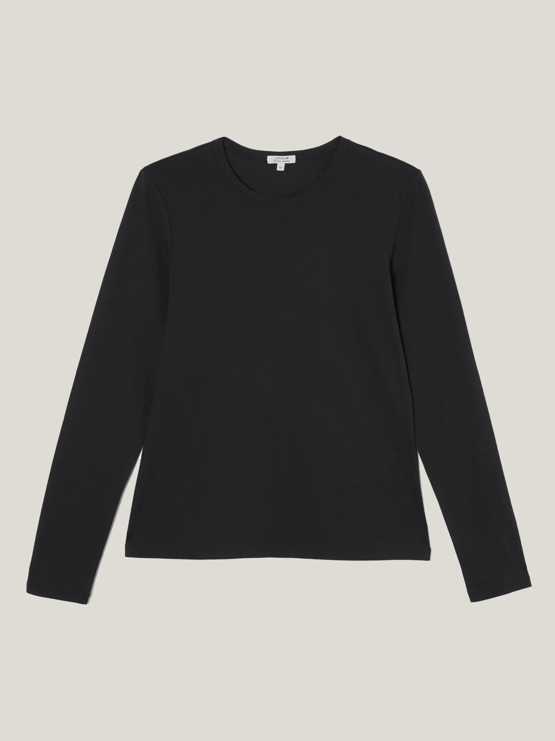 Soft Supima cotton long sleeve T-shirt. Cut in a classic fit silhouette with long slim sleeves this elevated basic serves as a great foundation piece for any outfit. Supima Cotton, a responsibly sourced and superior in quality cotton with exceptional strength, softness, colour retention and a luxurious lustre. Fit and Features