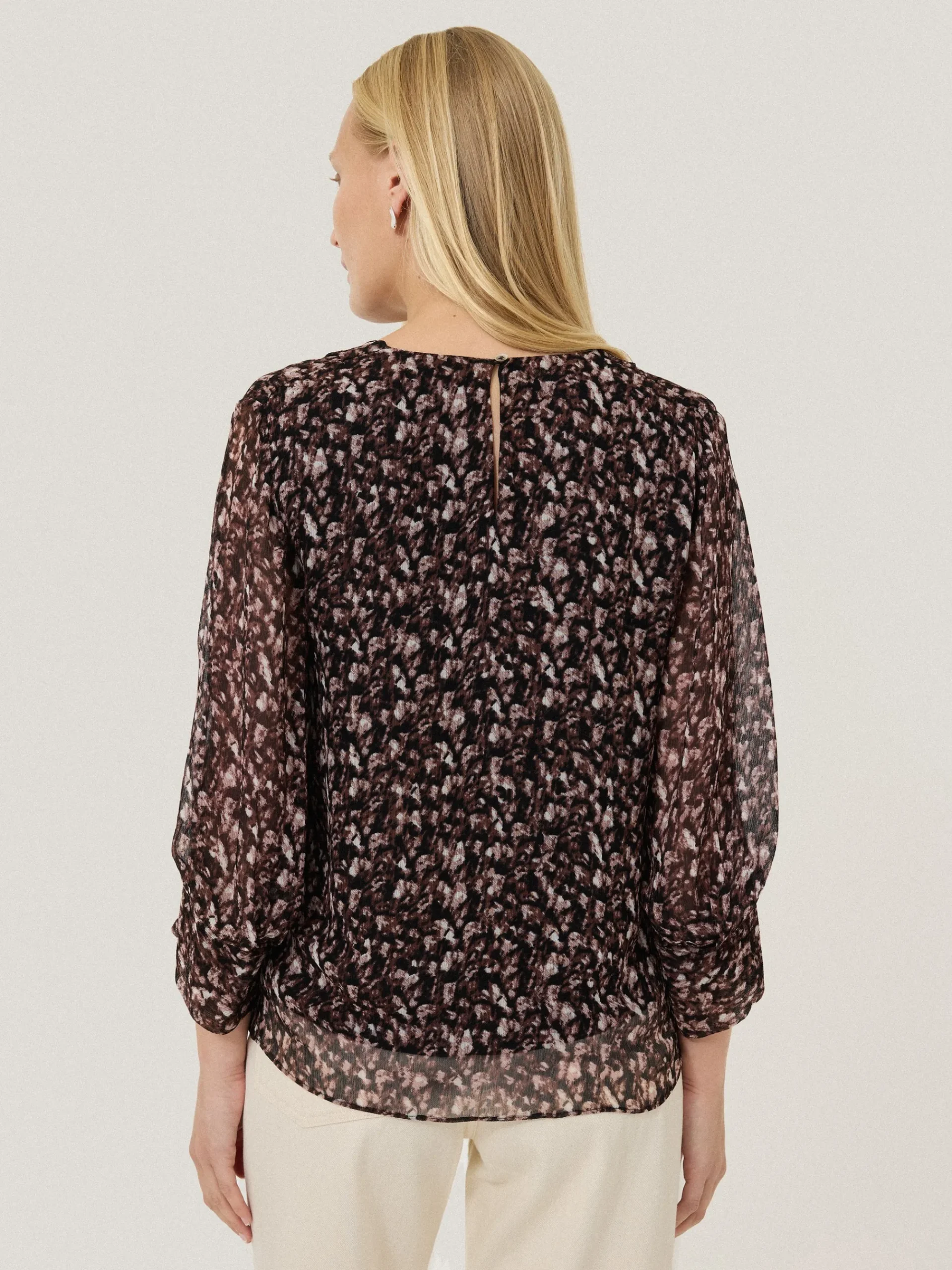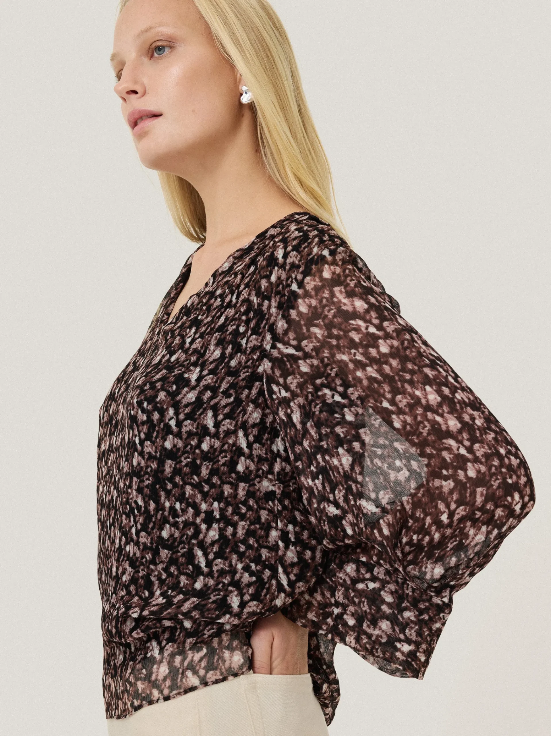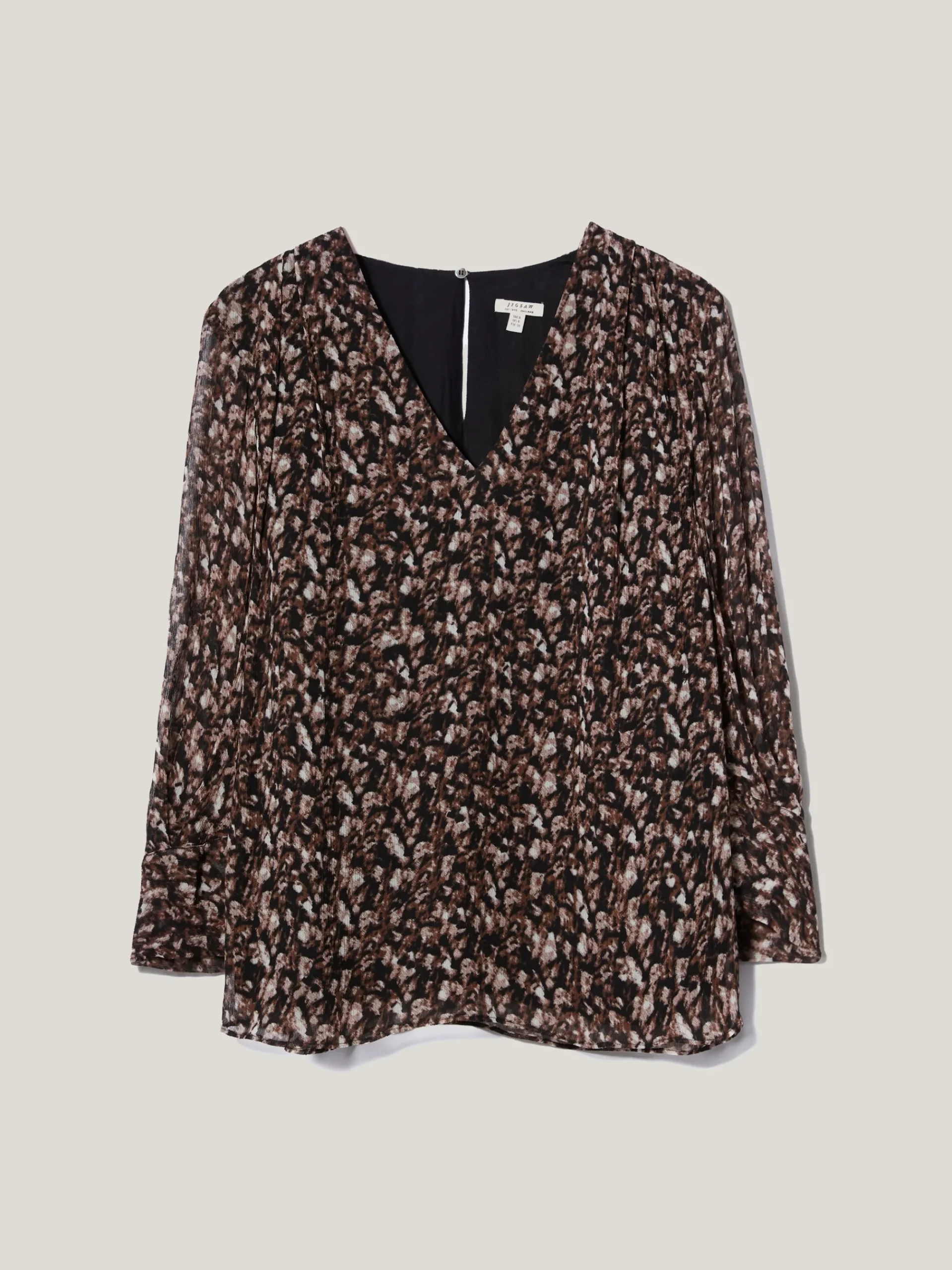 Not your obvious animal print at first glance, this long sleeved top has just as much irreverent Britishness as its counterparts in an abstract design. Crafted from a crinkle georgette, it features an elasticated waist at the back for all day comfort and falls elegantly in rich, earthy tones. Partner with the matching skirt for a bold head-to-toe look.