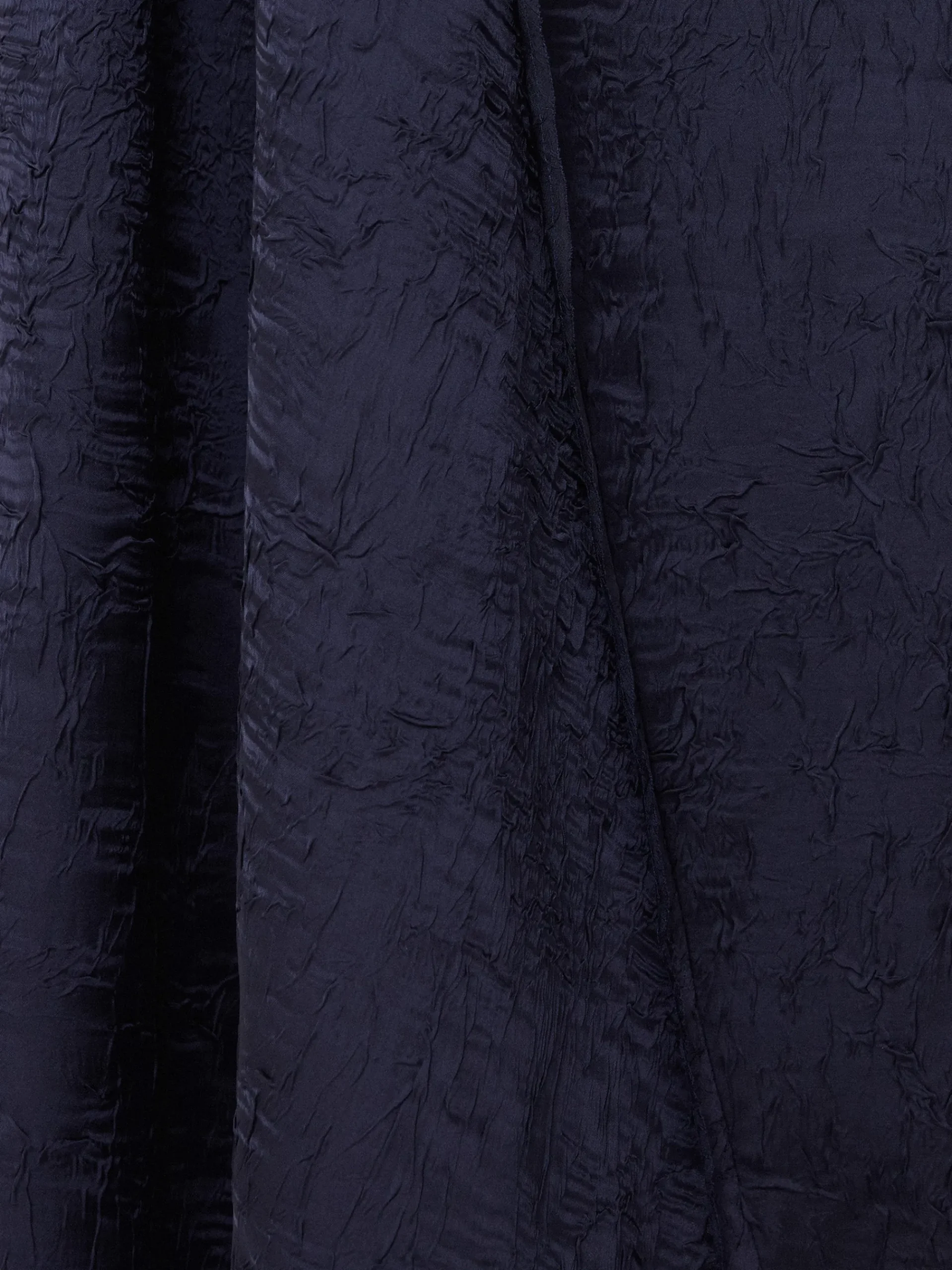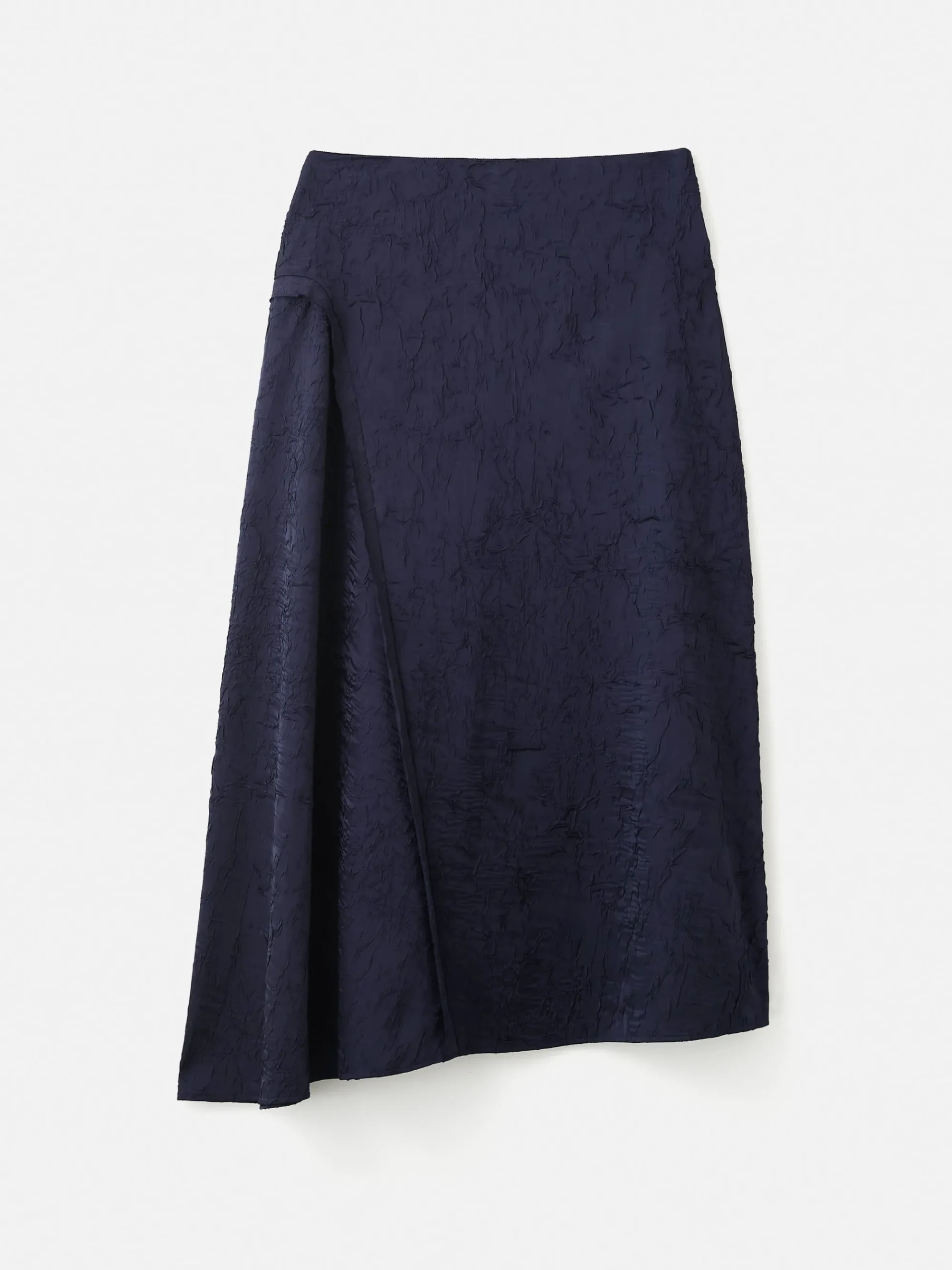 Classic meets contemporary with the Asymmetric Textured Skirt, where a single inverted side-pleat adds structural detail to an otherwise modest silhouette. Imagined in an elegant navy hue, this is minimalism at its finest – just with an unexpected twist.