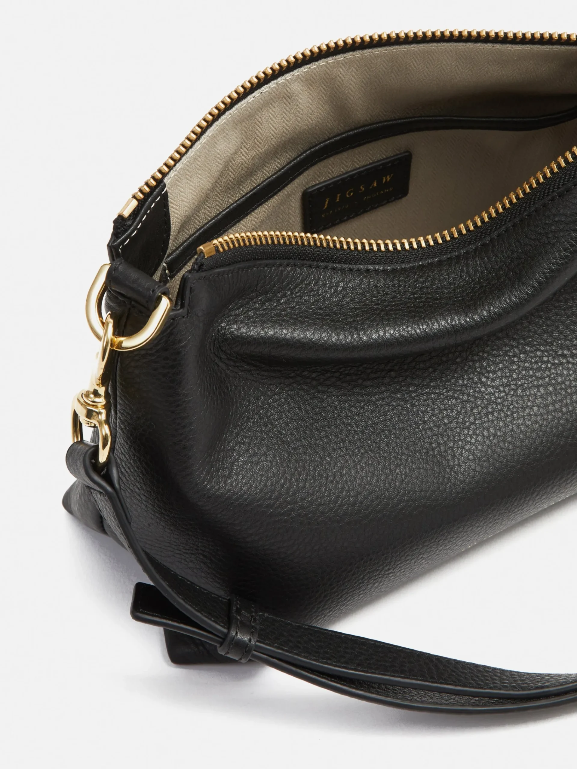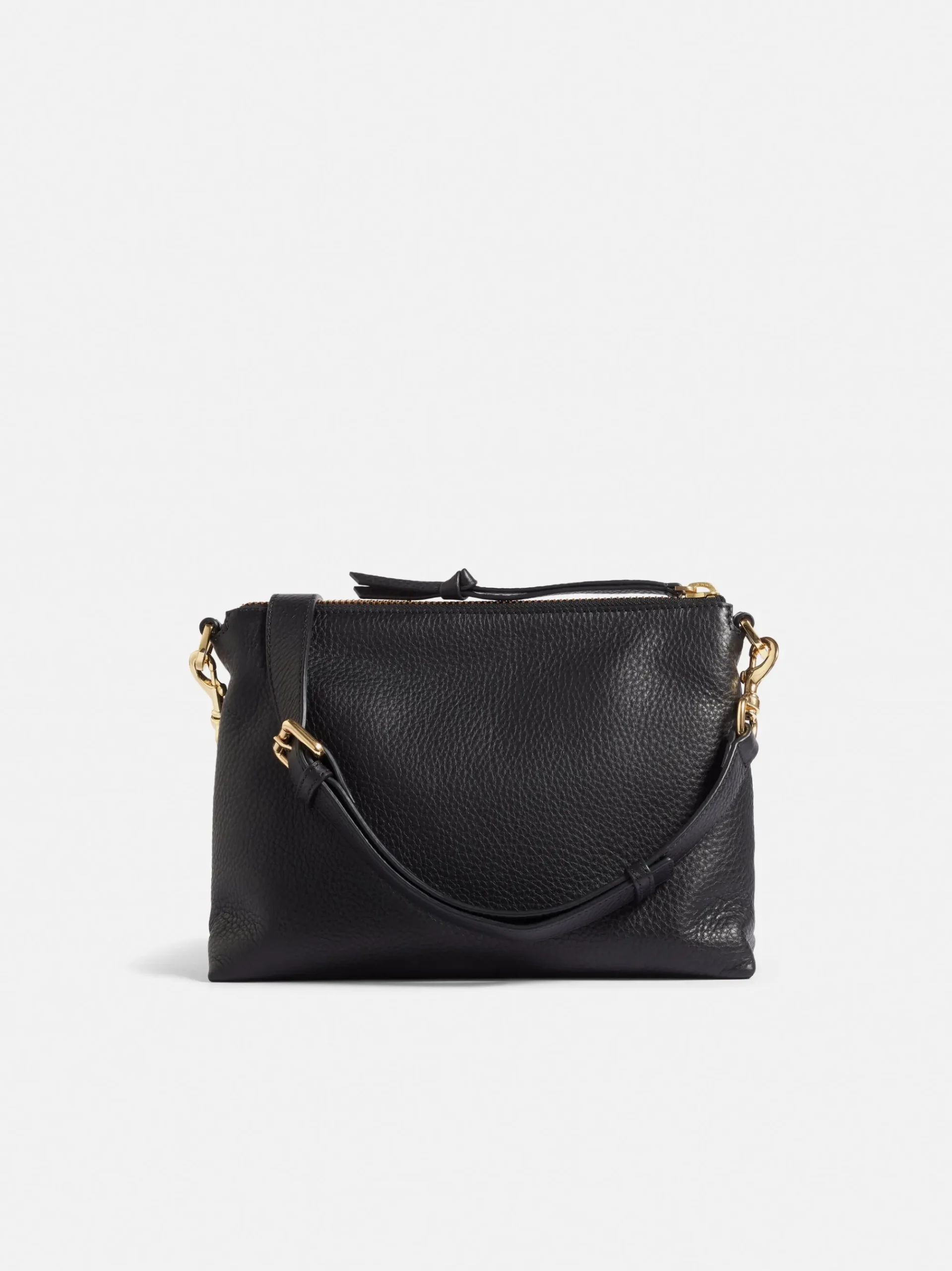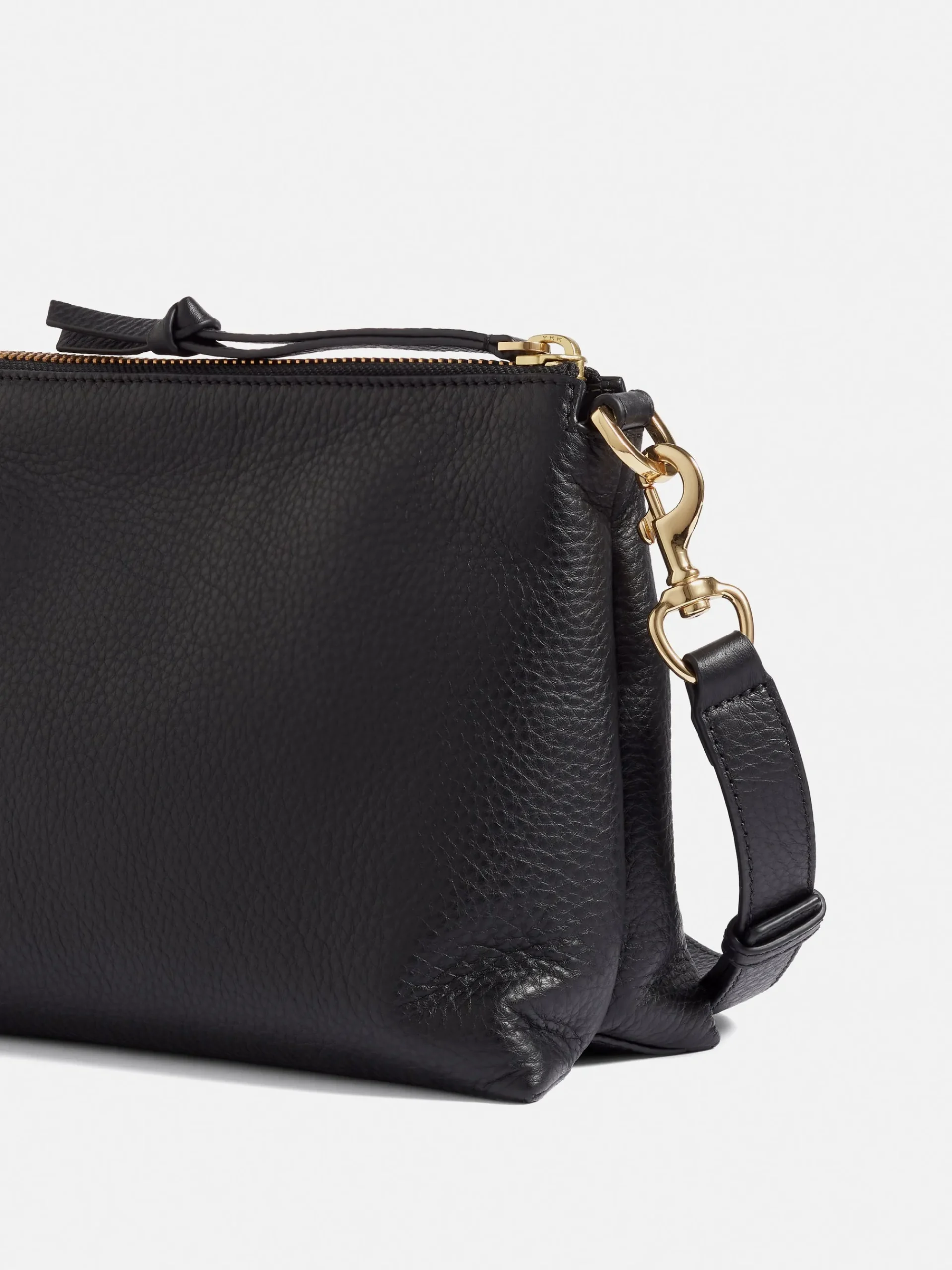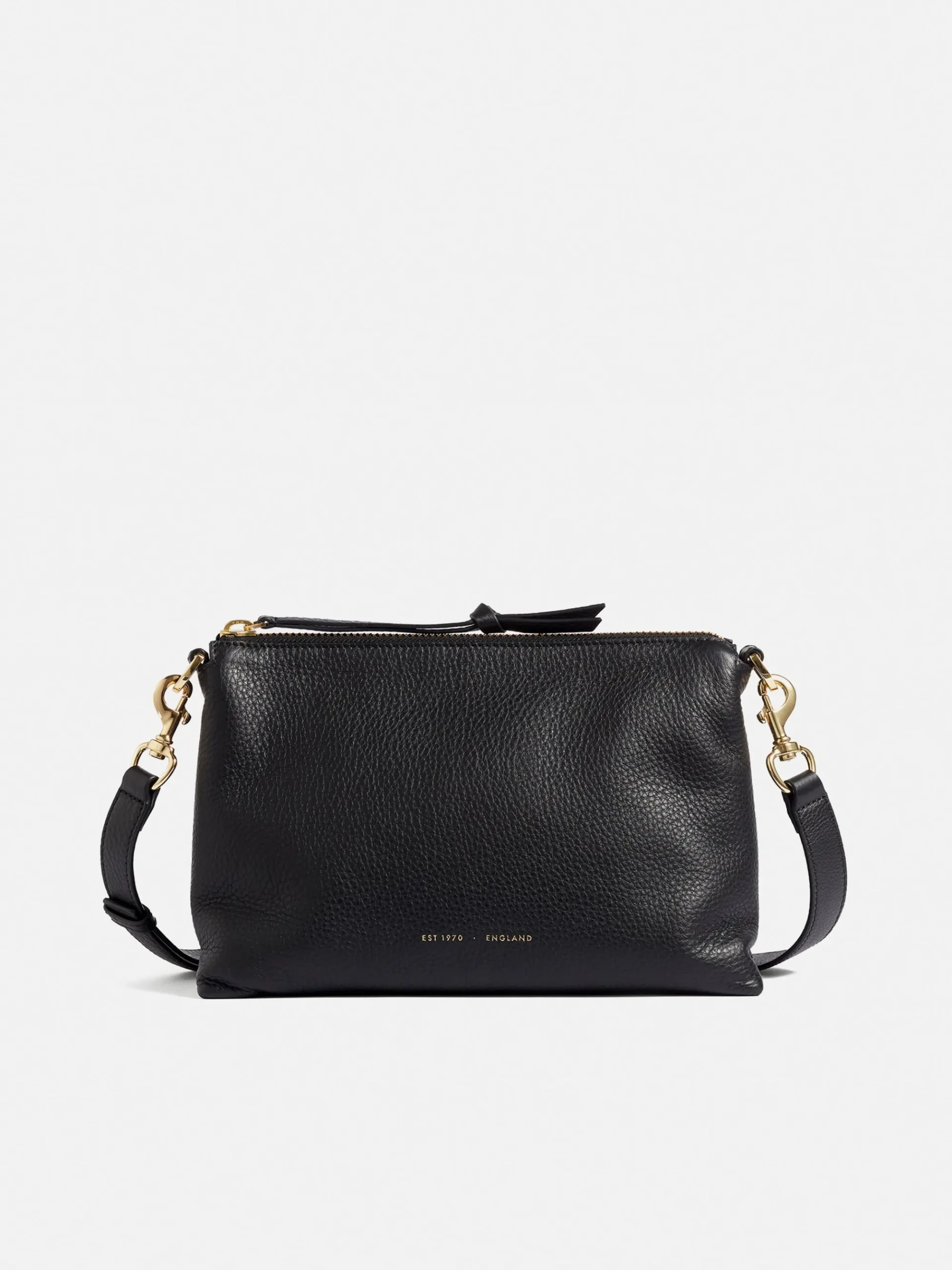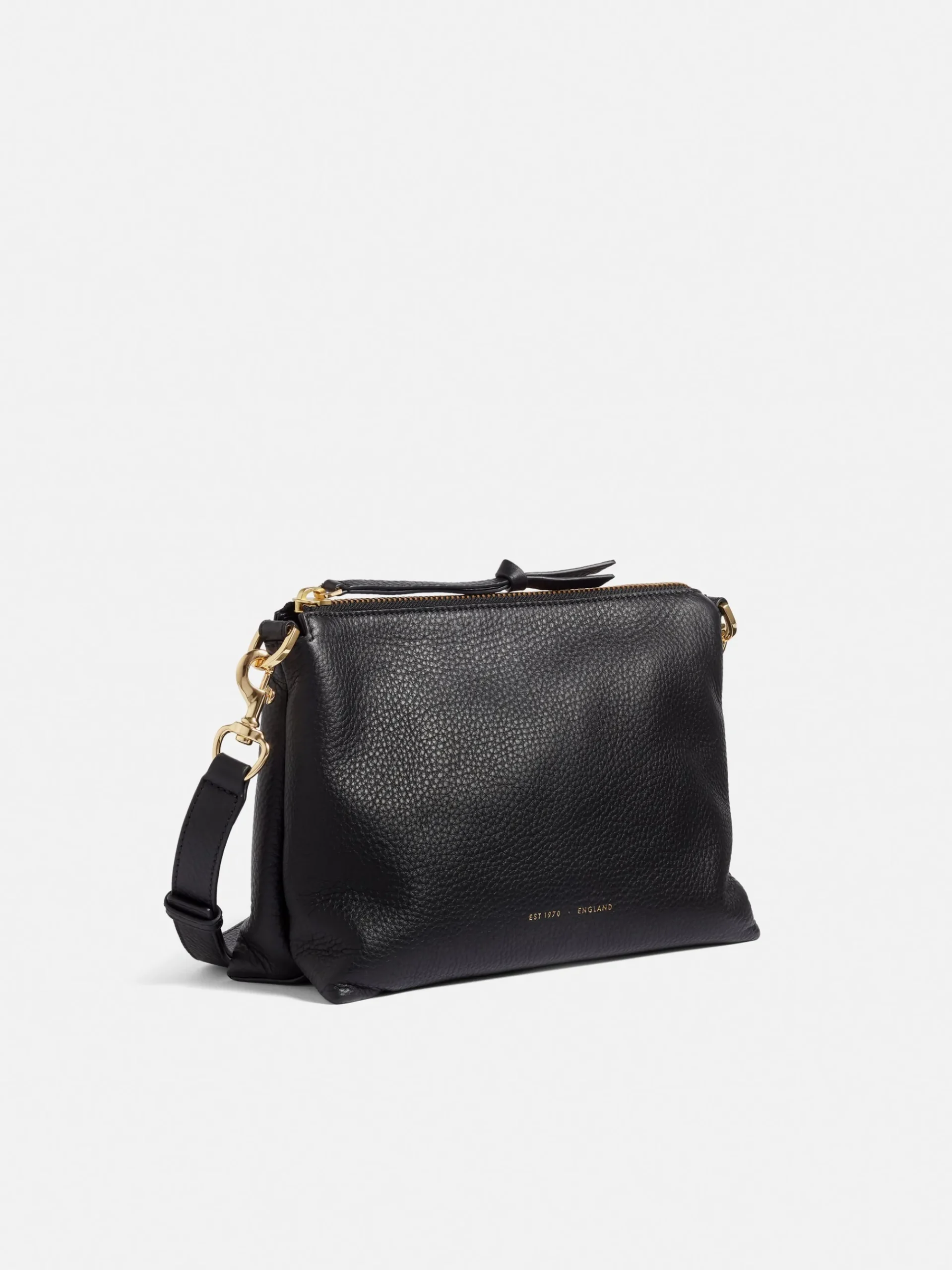 Soft crossbody saddle bag in pebble leather. Designed as a softer twist to a classic structured silhouette with adjustable strap to wear across the body or on the shoulder. Ada features our classic gold finish hardwear and a zip closure with added oversized pebble leather knotted puller. The interior is finished with clean bonded lining in cotton twill fabric. Fit and Features