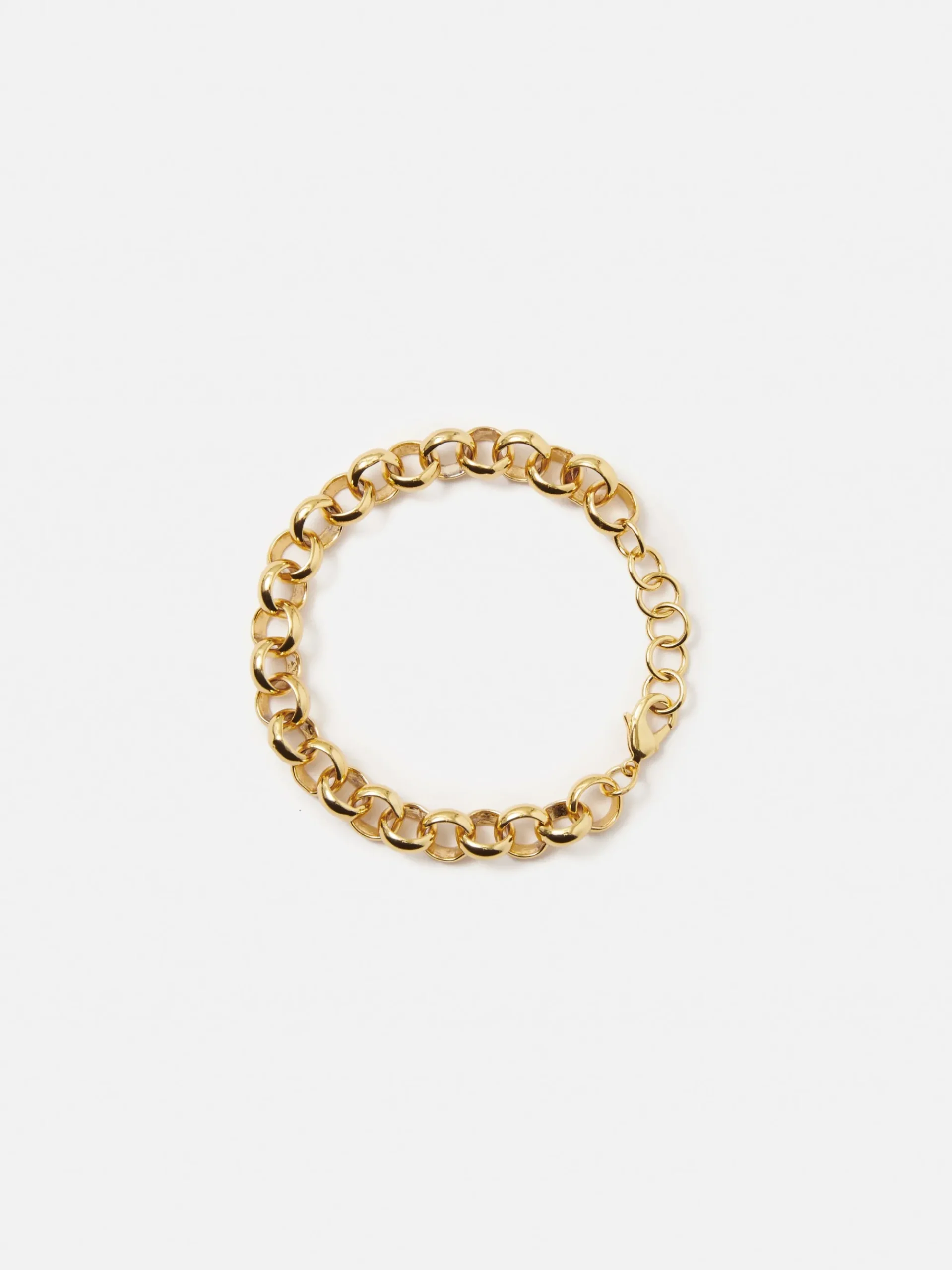 Our belcher chain bracelet is the perfect foundation piece for layering with other chain styles in a chunky vintage-inspired design. Crafted from 24ct gold plated brass, this piece can also be mixed and matched with the co-ordinating belcher necklace.