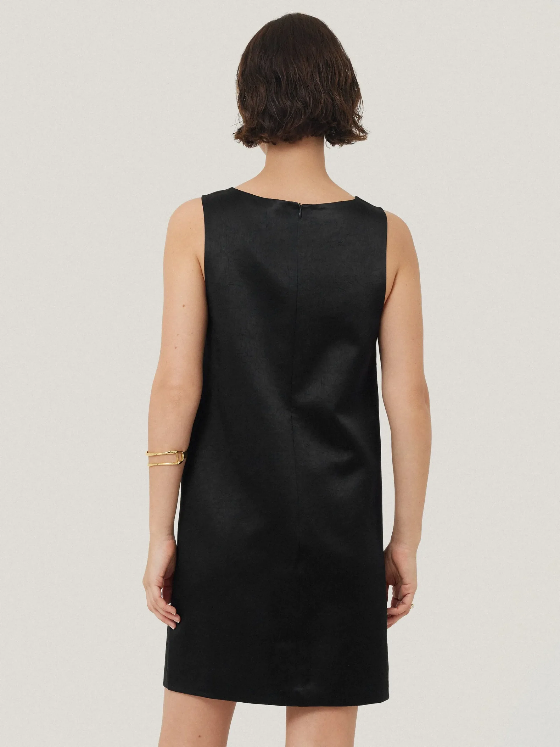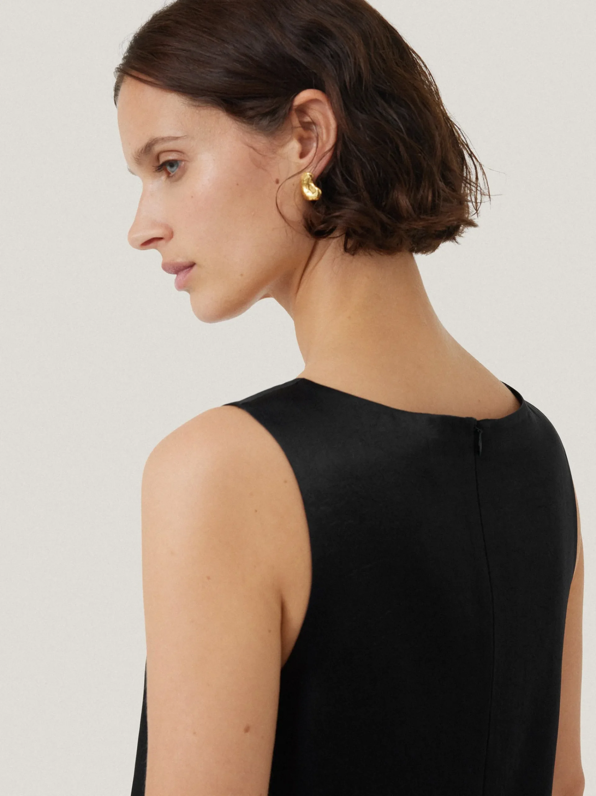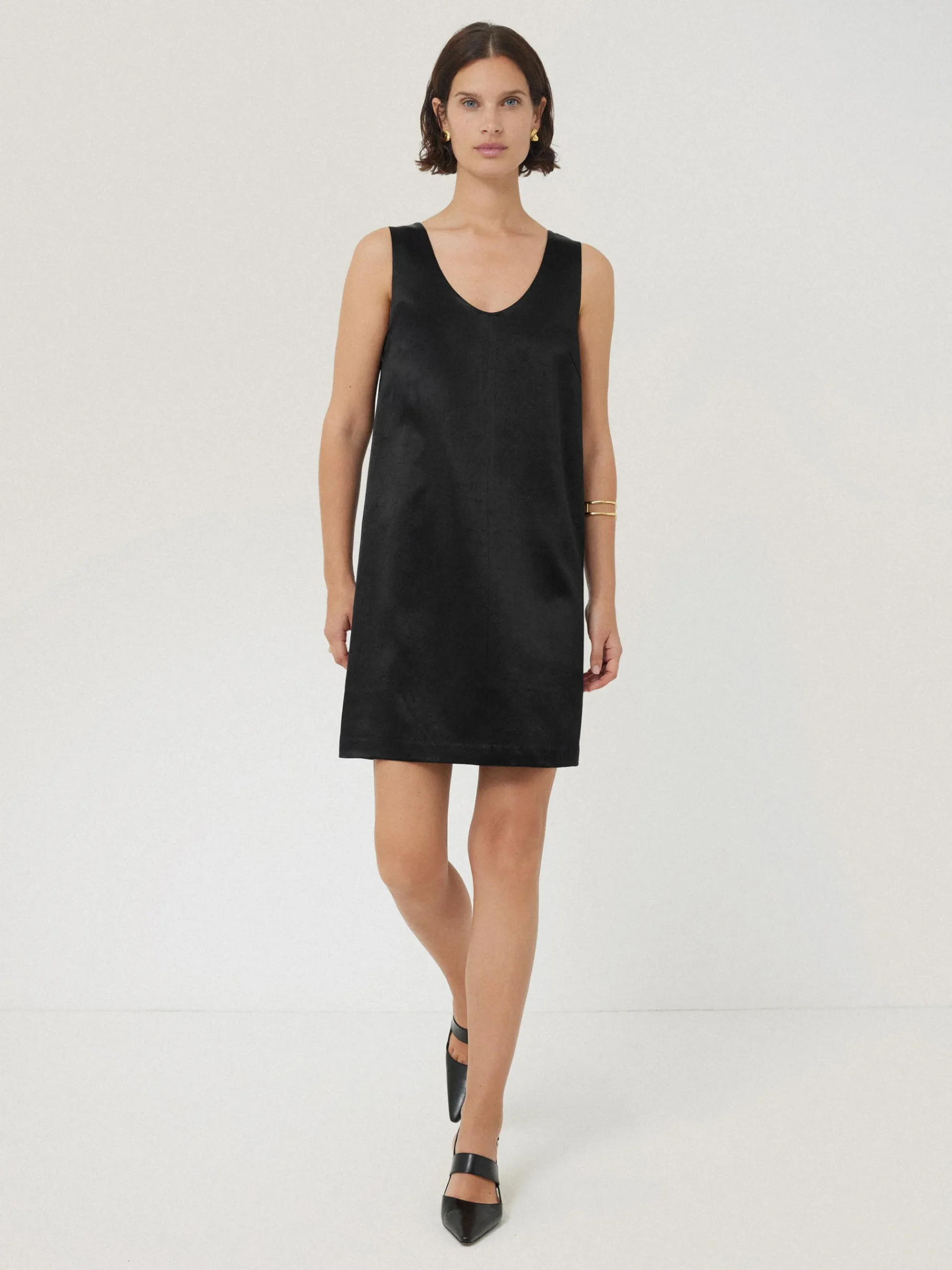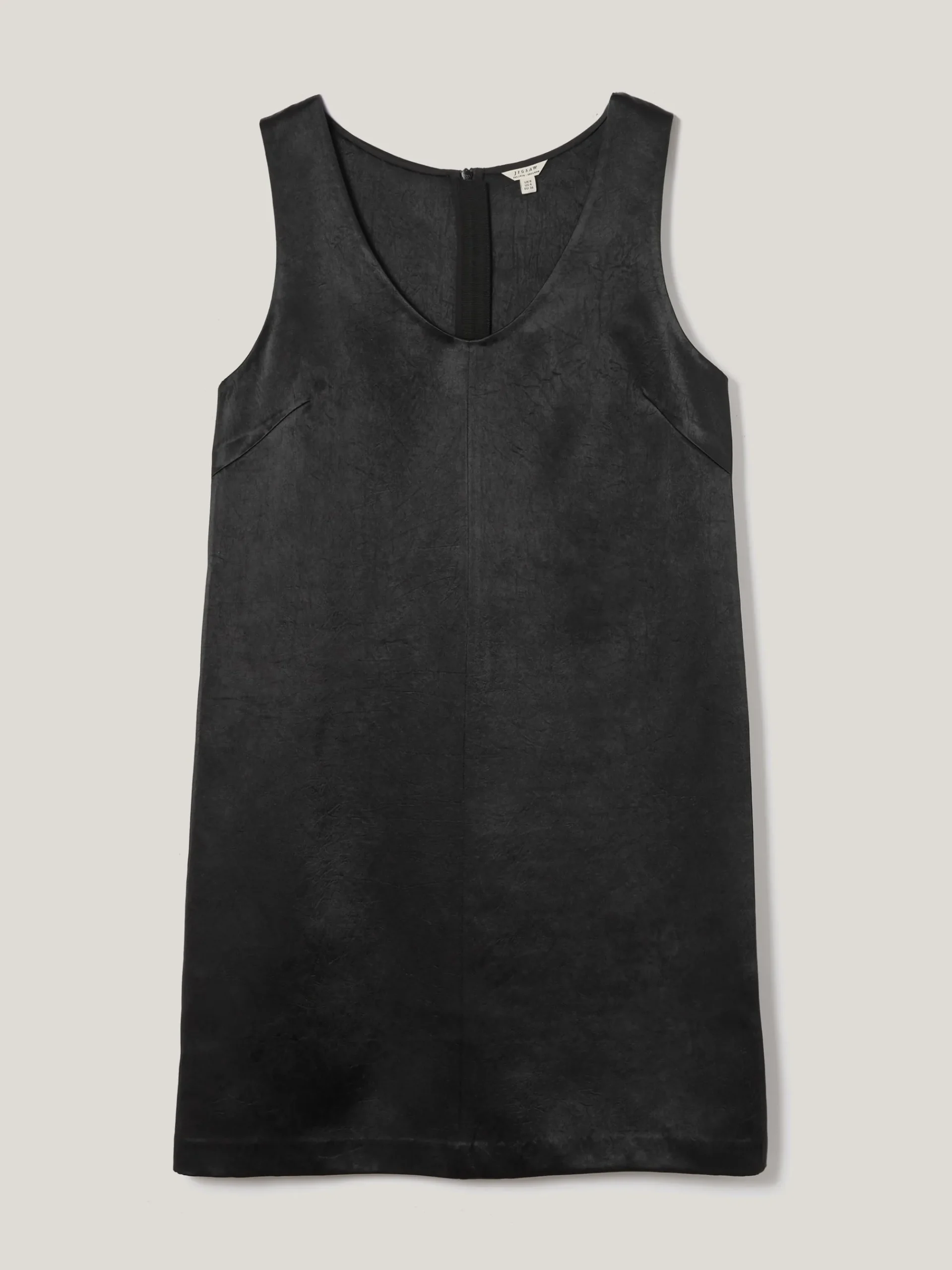 A minimalist’s take on the little black dress, we love the Bonded Satin mini for its mid-weight finish and lustruous sheen; ideal for evening or daytime layering over a long sleeve top or blouse. Cut for a chic A-line fit with a simple scoop neckline, this pinafore style will slot effortlessly into any wardrobe.