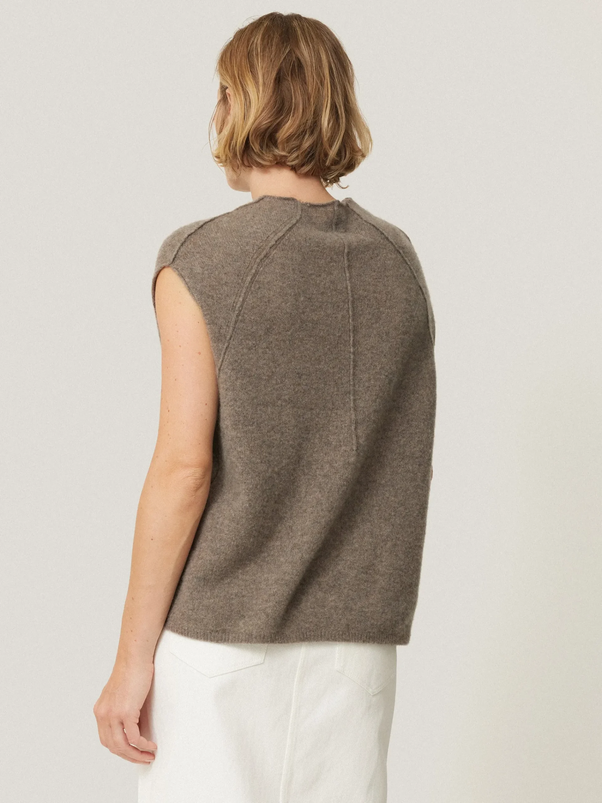 Our signature Cloud cashmere is reimagined in a new cap sleeve silhouette. This boxier style is finished with minimal tr…