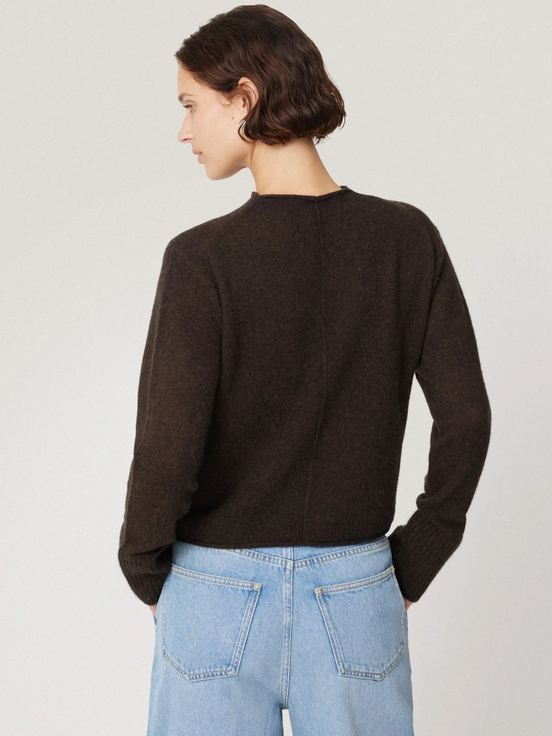 Our signature Cloud cashmere is reimagined in a new shape with the Eldon jumper. This boxier style features a minimal rolled edge around the neckline with shorter sleeves and fluted rib cuff detail for subtle modern touches. 100% fully traceable, Cloud cashmere is knitted off gauge for a supersoft airy feel, perfect for transitional layering into the colder months.