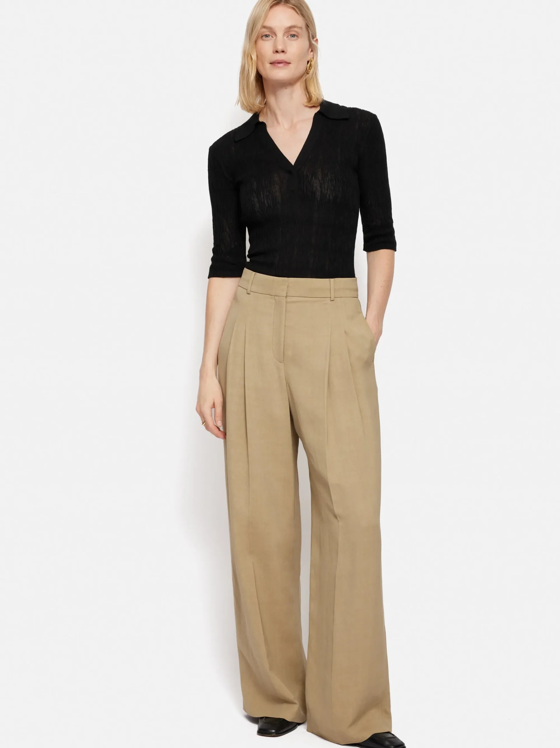 Refresh your transeasonal styling with our knitted collar top. Designed with a textured rib stitch, it is detailed with a collar, rib trims and a bell half sleeve that offers a vintage-inspired aesthetic. For an effortless look, pare it down with jeans and dress it up with courts and gold-plated jewellery.