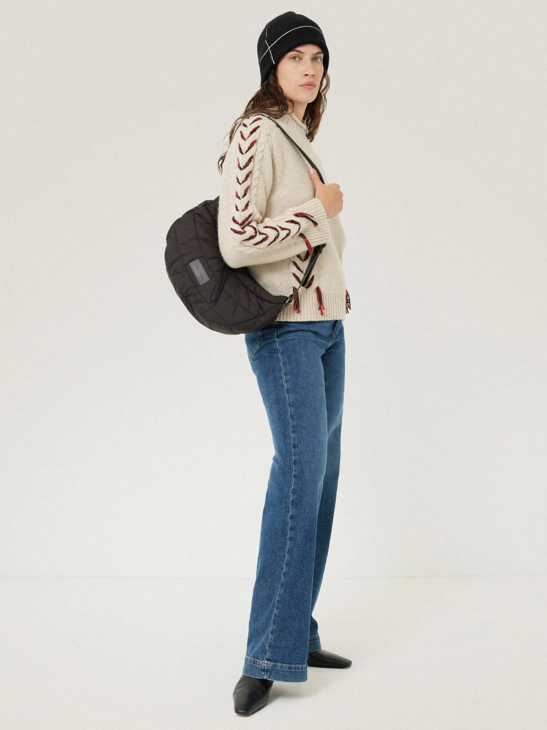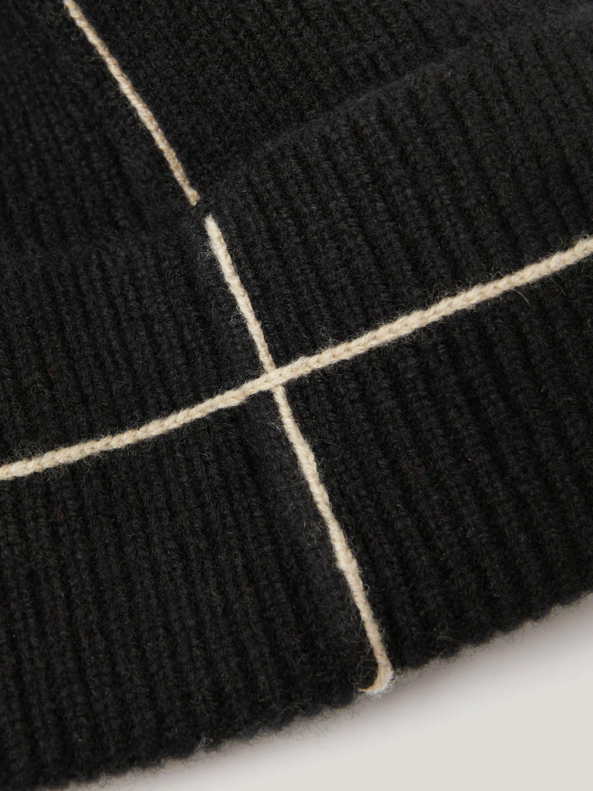 Elements of deconstruction were a theme across AW24, inspiring this classic beanie hat with contrasting seam detail. Crafted from our Compact Wool, this wool blend yarn is infused with 5% cashmere to give its luxurious handle. A key accessory for the winter months.