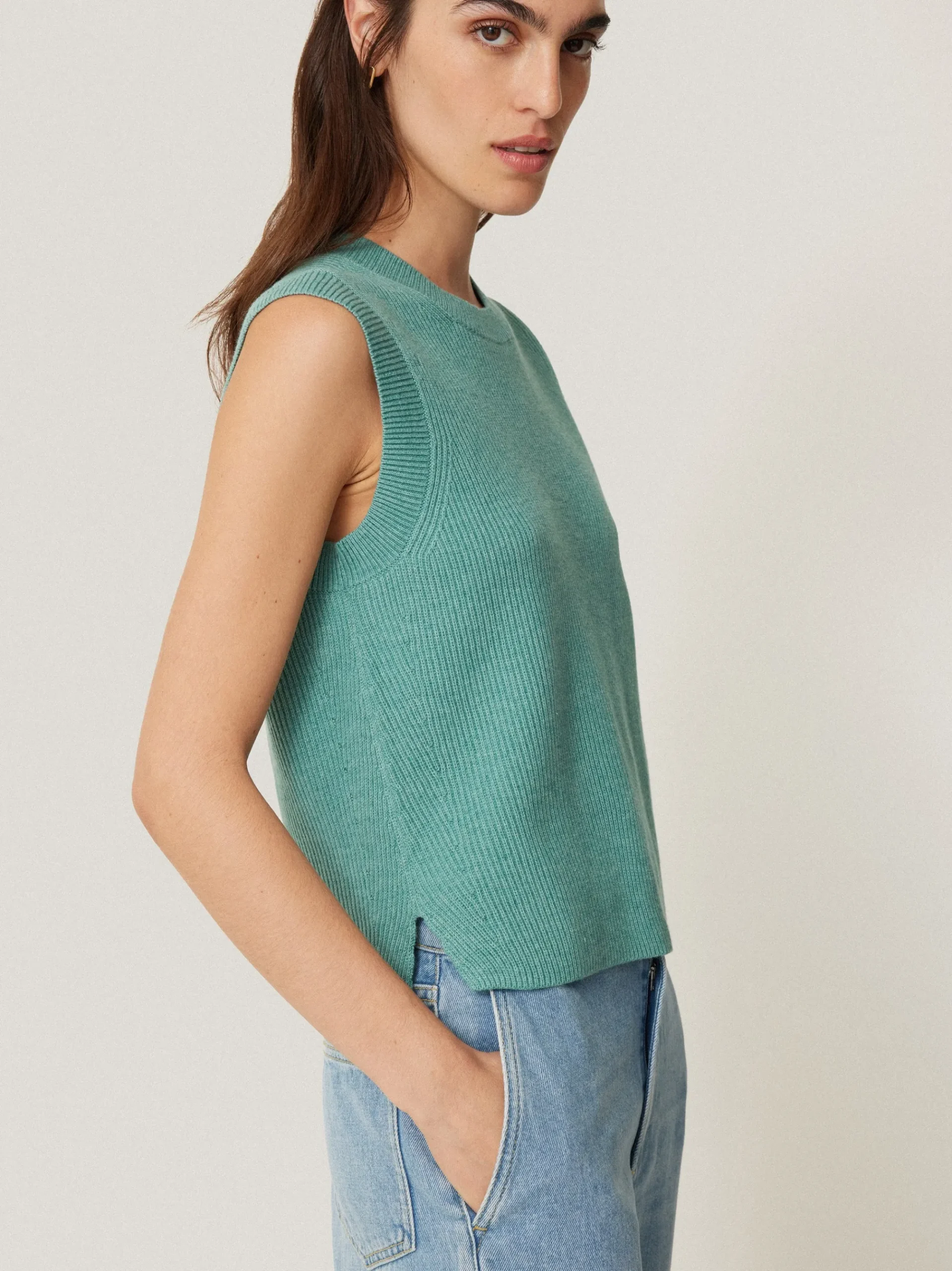 Soft Cotton blend layering tank. Constructed in a rib knit featuring angled ribs at the side seams and slits at the hem….
