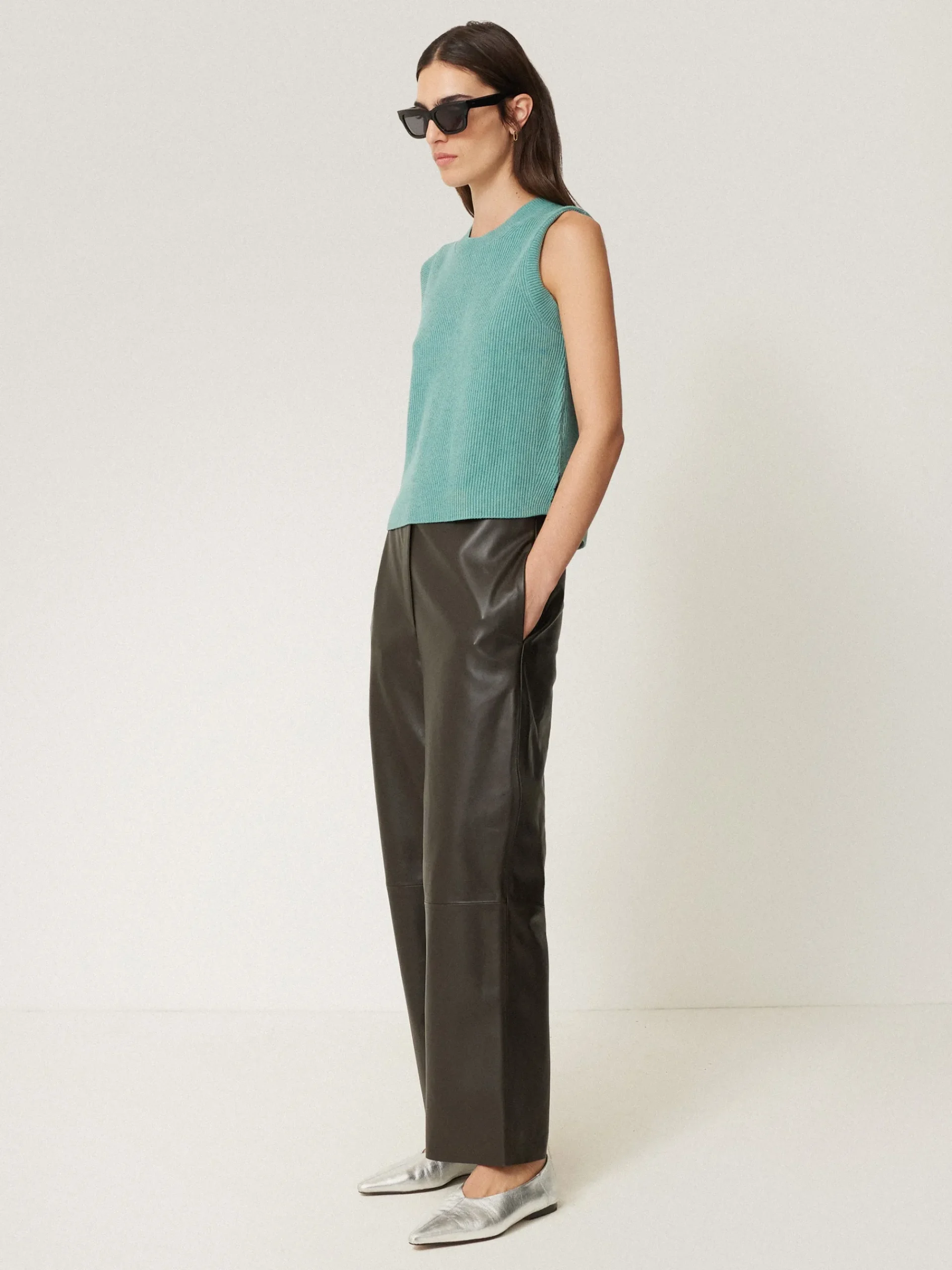 Soft Cotton blend layering tank. Constructed in a rib knit featuring angled ribs at the side seams and slits at the hem. This versatile piece promises endless combinations for your wardrobe. Wear layered over a shirt or blouse, pop over a printed dress or simply wear alone with high waisted trousers.