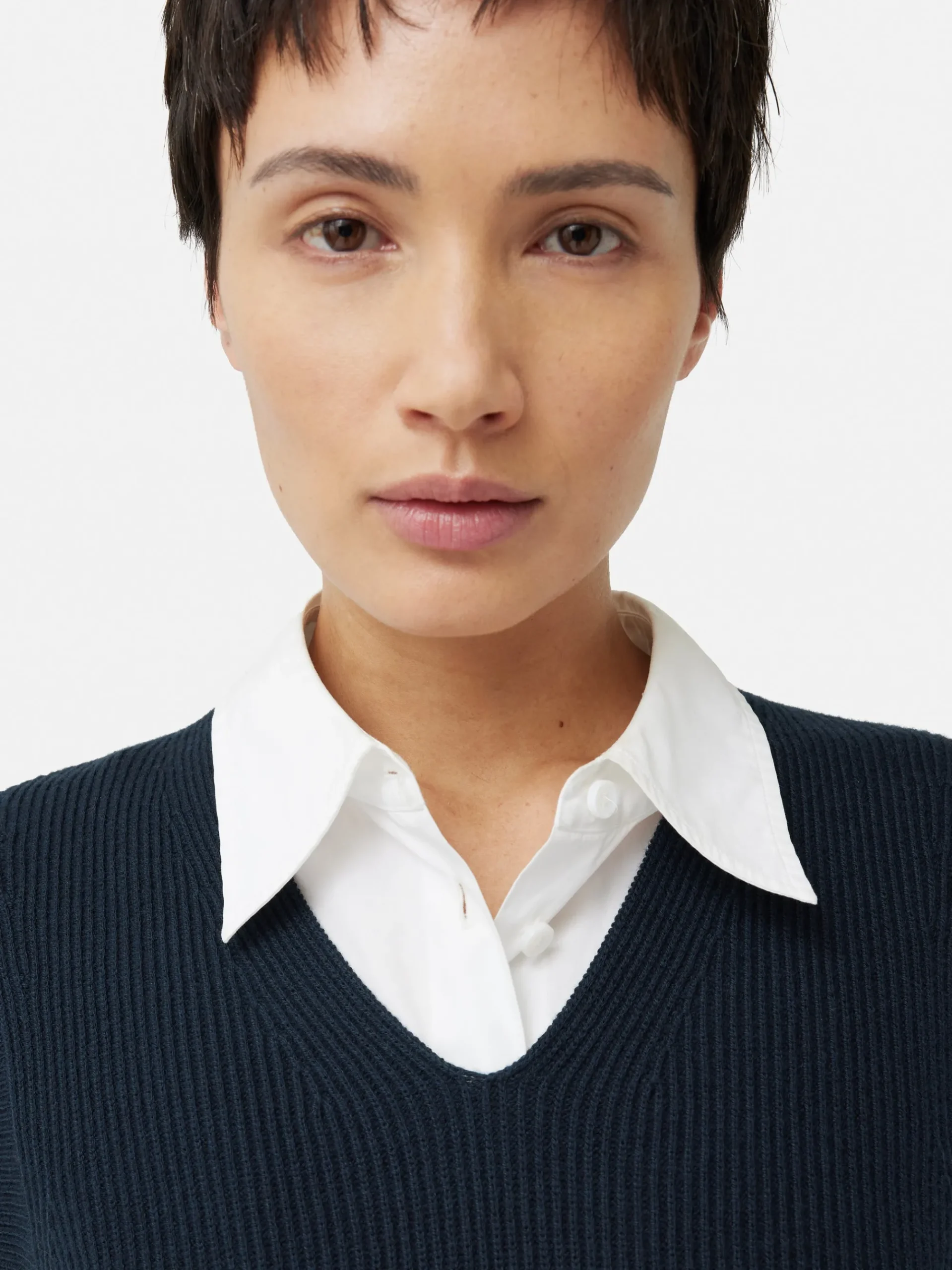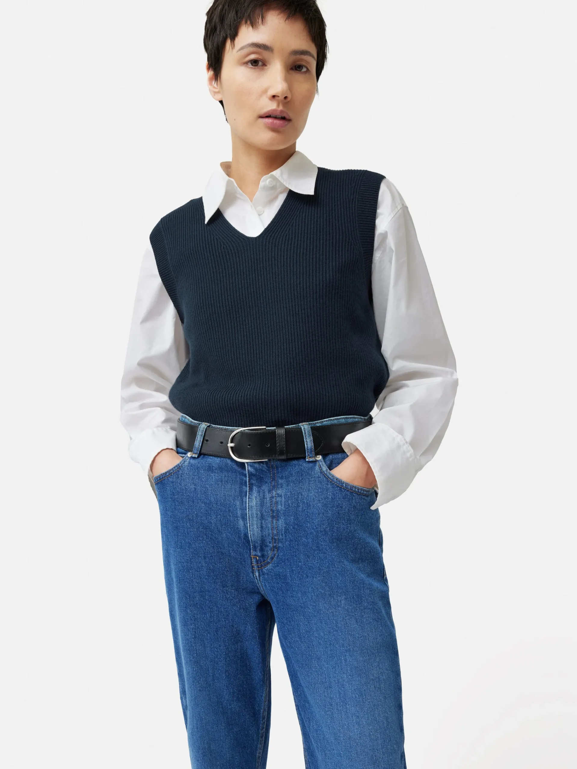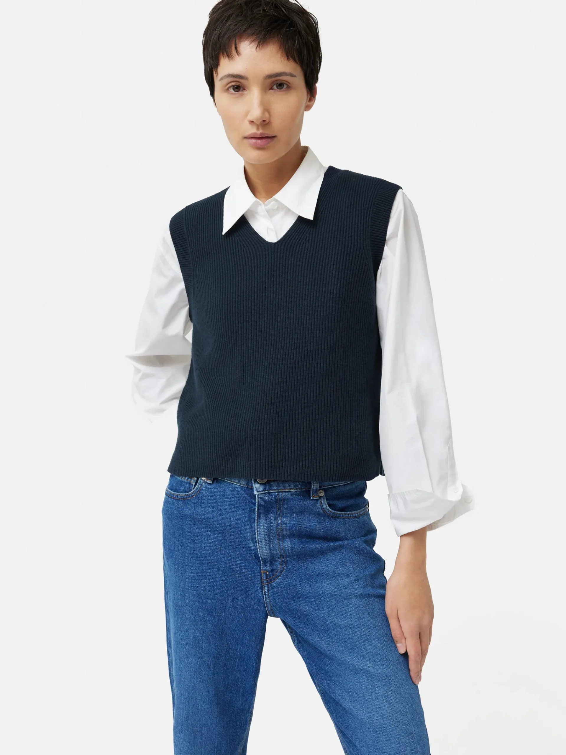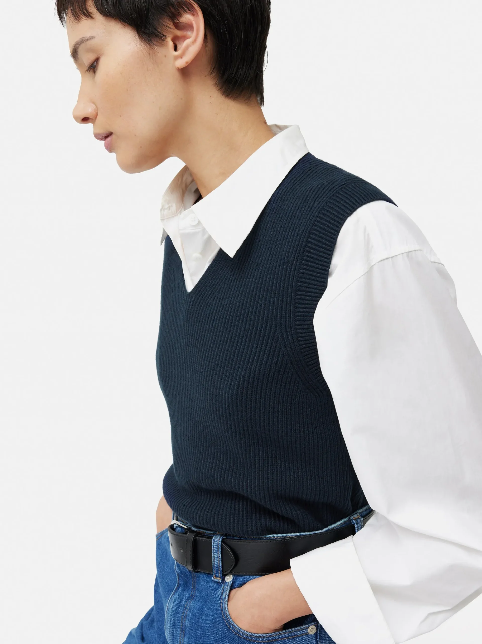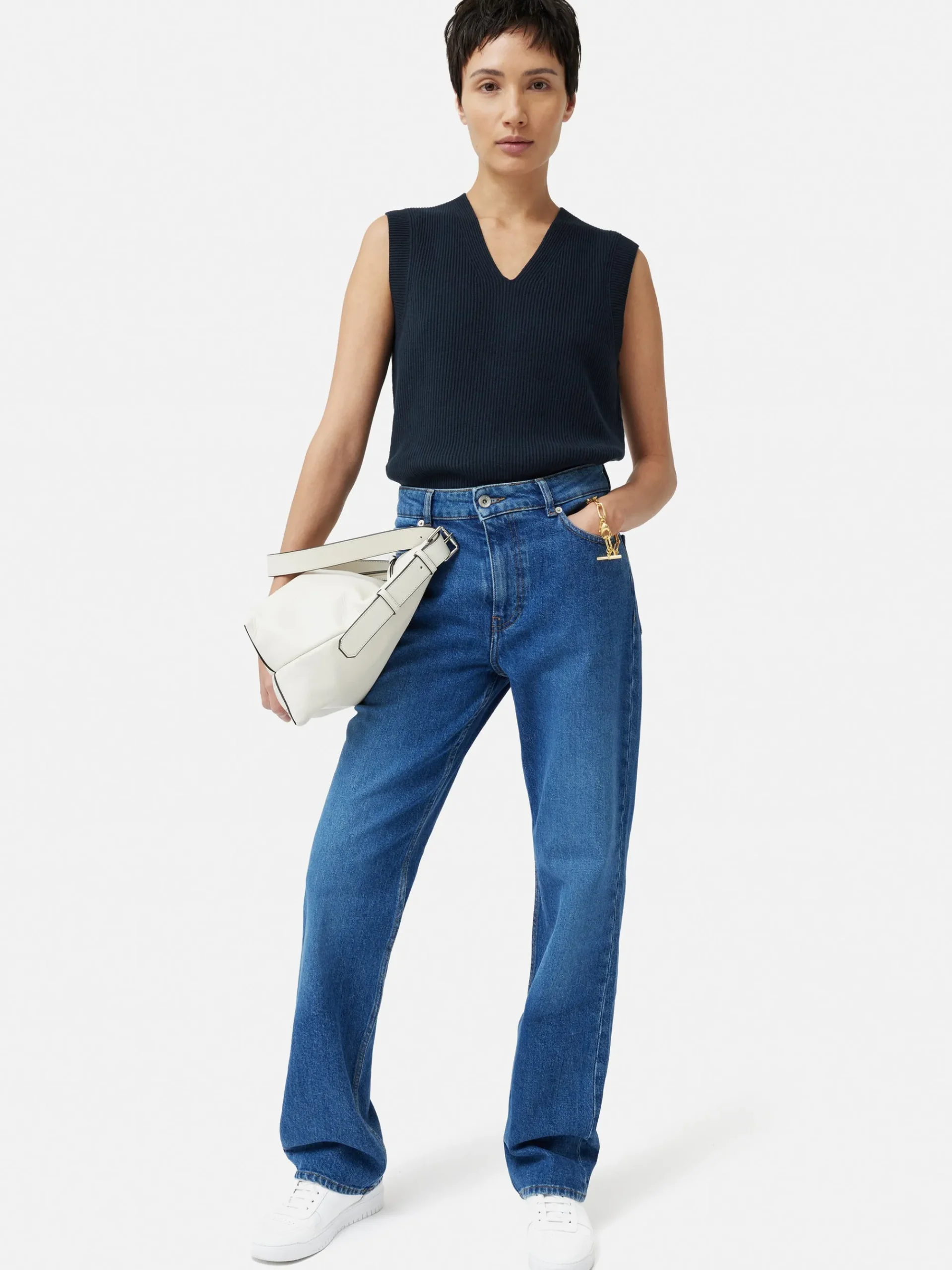 Occasionally, one craves a fresh interpretation of a beloved classic. Hence, we’ve reimagined the best-selling cotton blend tank to feature a graceful v neckline. This variation maintains its versatility, ensuring it retains its innate superpower to effortlessly pair with any ensemble in your wardrobe. Fit and Features