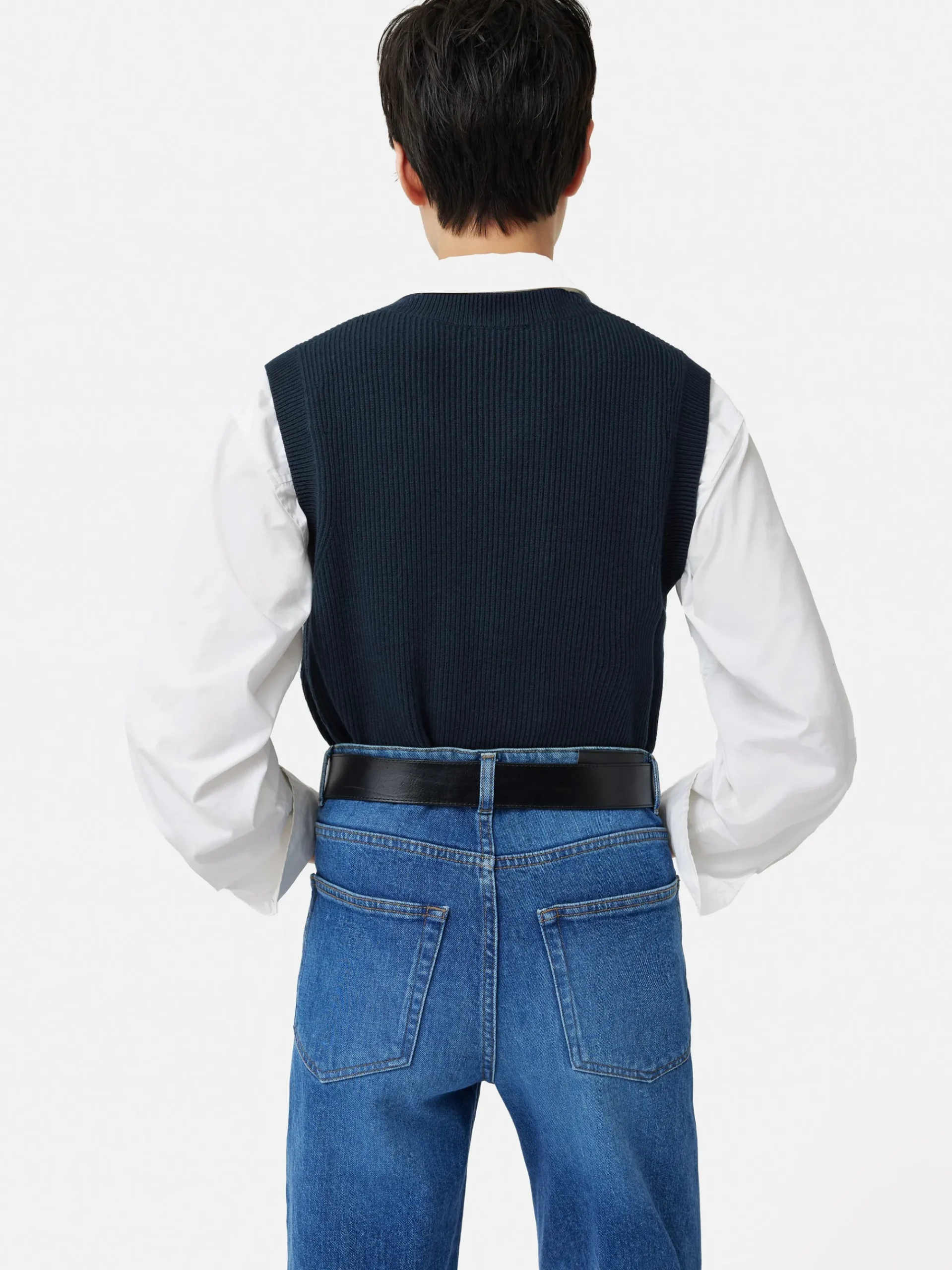 - Ribbed trims at the armholes and neck