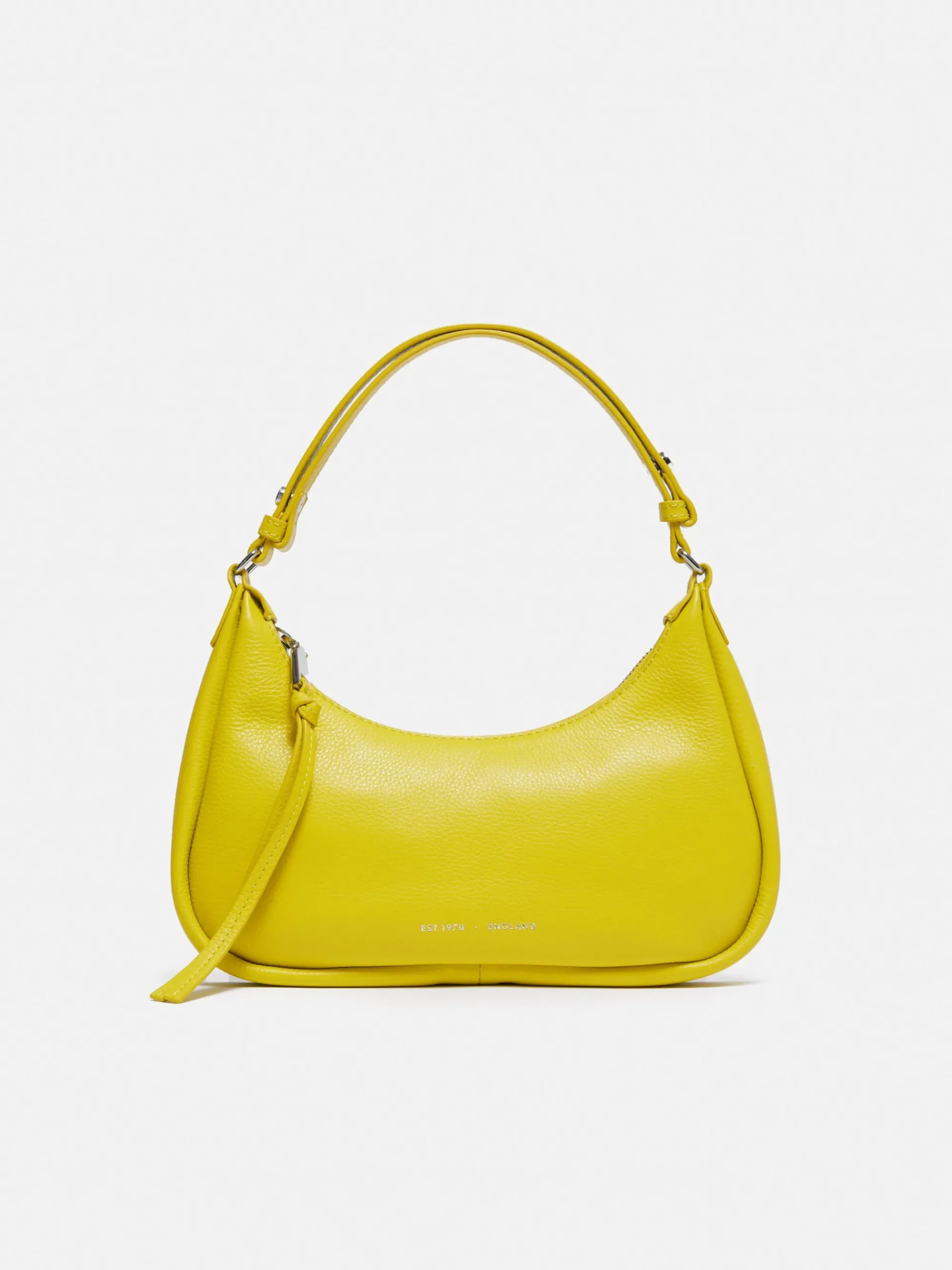 Our 90’s inspired Crescent Bag is the perfect pebble leather shoulder bag that will fit all of your essentials: phone, keys, cardholder and lipstick. Arriving in classic black, neutral off white and yellow for a bold statement and pop of colour to your transitional wardrobe. Featuring an adjustable strap and zip closure for security, this will be your go to bag for the spring season.