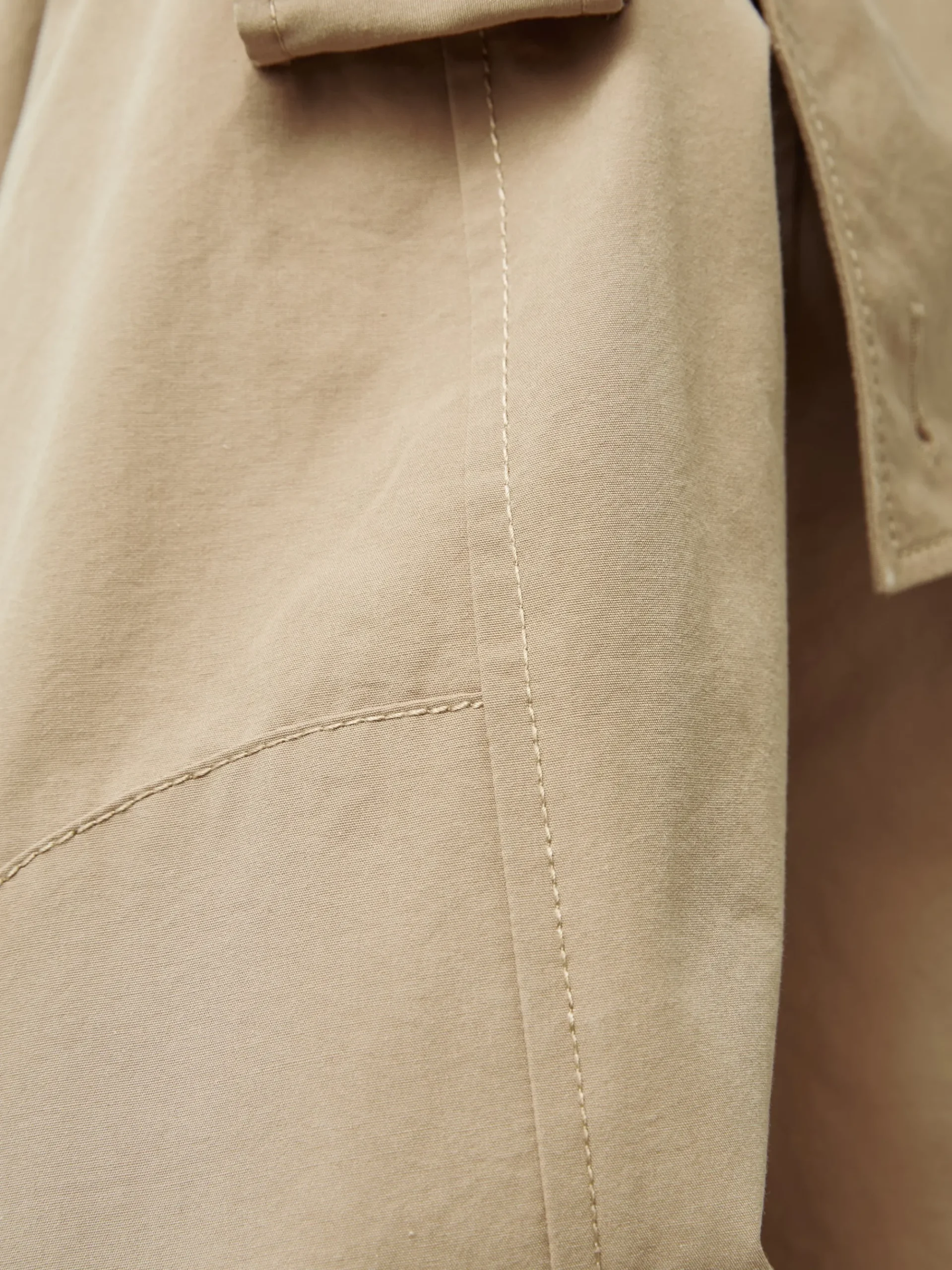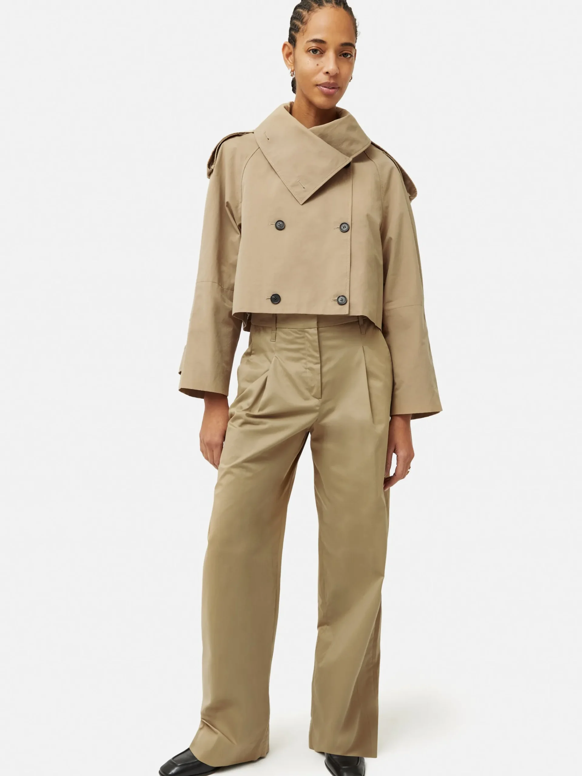 The Nelson is so iconic, we brought it back in a modern cropped rendition. Crafted from luxurious textured pure cotton and treated with a water-resistant finish, its signature features remain intact—an elegant double-breasted front adorned with exquisite horn buttons and intricate epaulette details. Slight modifications to the collar allow for versatile styling options, be it as a sophisticated funnel neck or gracefully buttoned down. The cropped design pairs perfectly with high-waisted bottoms. Additionally, we offer matching trousers in the camel colourway for contemporary co-ordinate look.