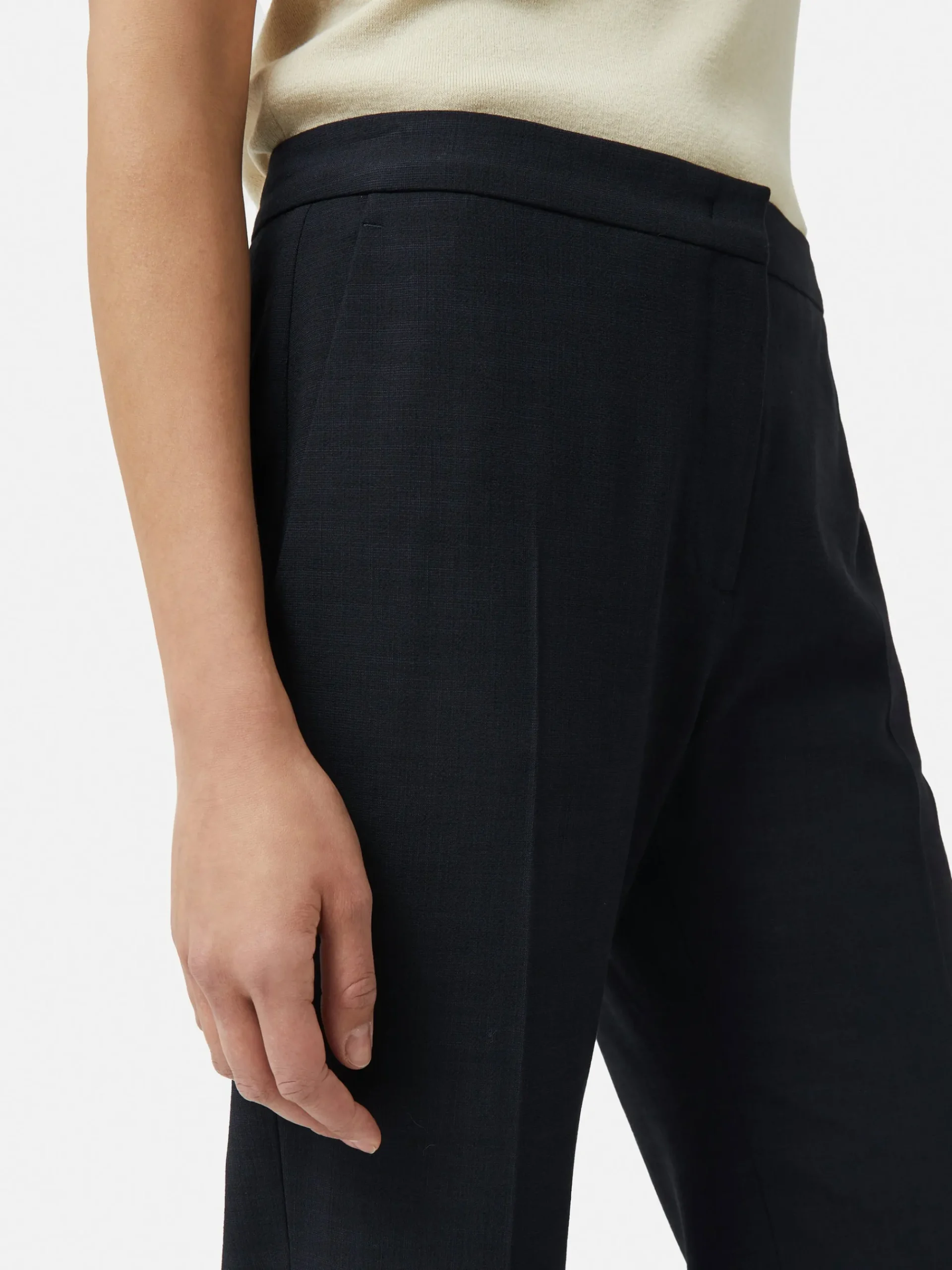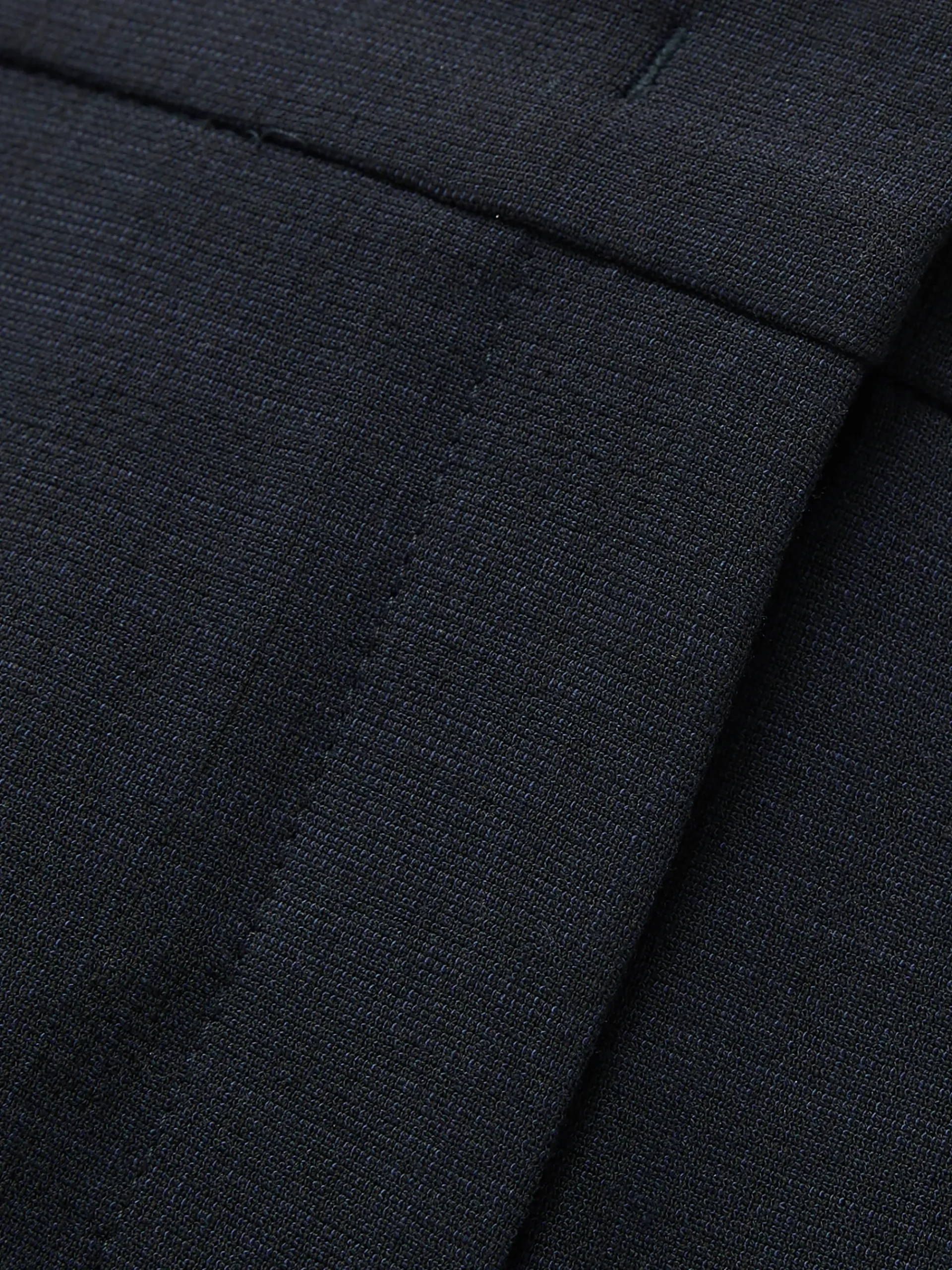 Due to popular demand, the icon tailored trouser has returned, fashioned from the sustainable crosshatch weave by the esteemed Portuguese heritage mill, RIOPELE. Boasting a tailored slim silhouette and a fashionable kick hem, the Mason trouser guarantees a super flattering and smart appearance. Its versatility shines through, making it easy to pair with knitwear for a chic casual look or to complete a suit ensemble by matching it with the Knox Blazer.