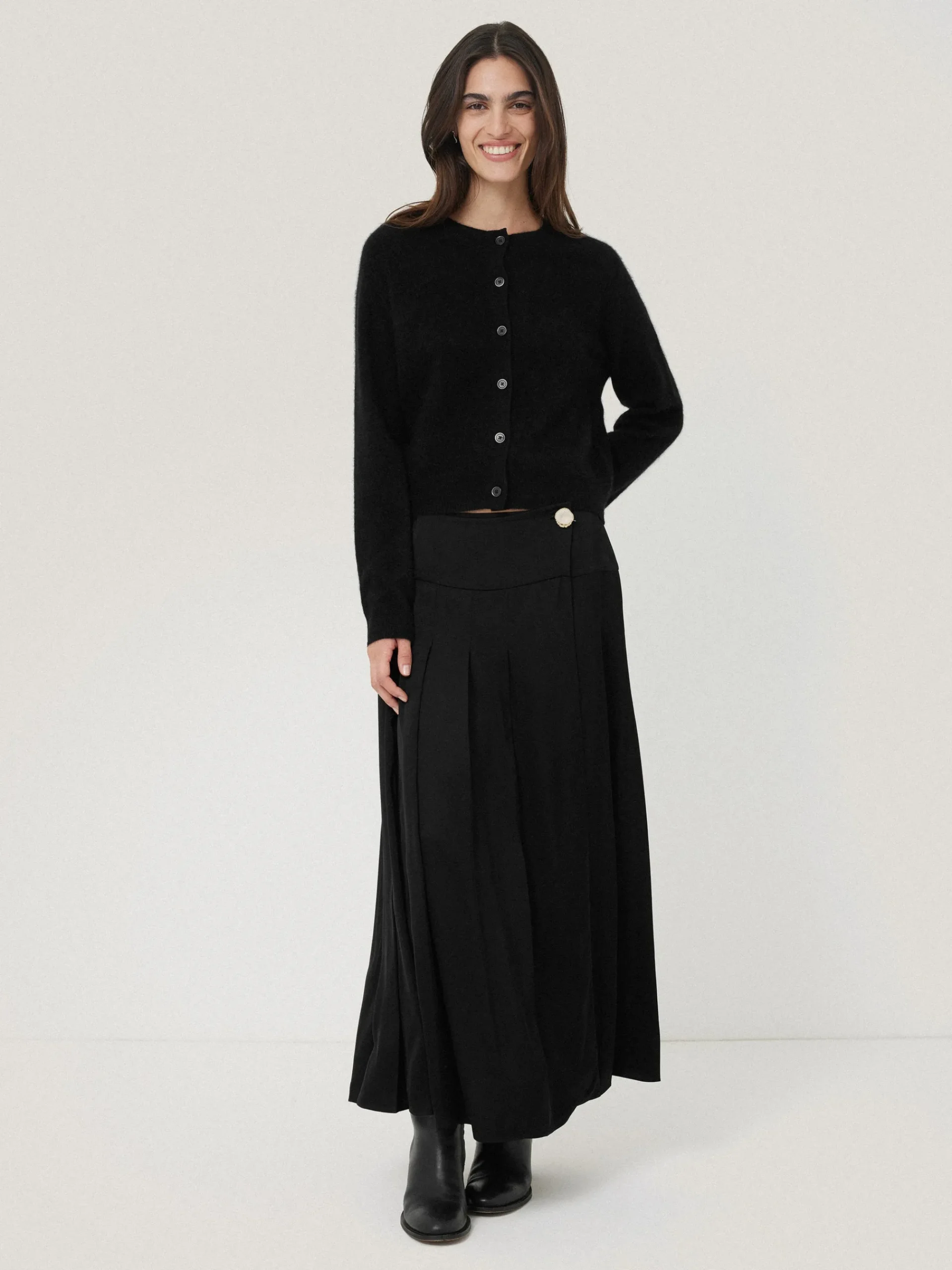 Our Halo cashmere cardigan has a supersoft fluffy texture, created through a special wash. We named this beautiful finish Halo because it has a heavenly aura, and you feel like you’re sinking into a cloud. Raglan sleeves offer more freedom for movement making it a comfy knit for wearing day-to-day. The most cherished cashmere of all.