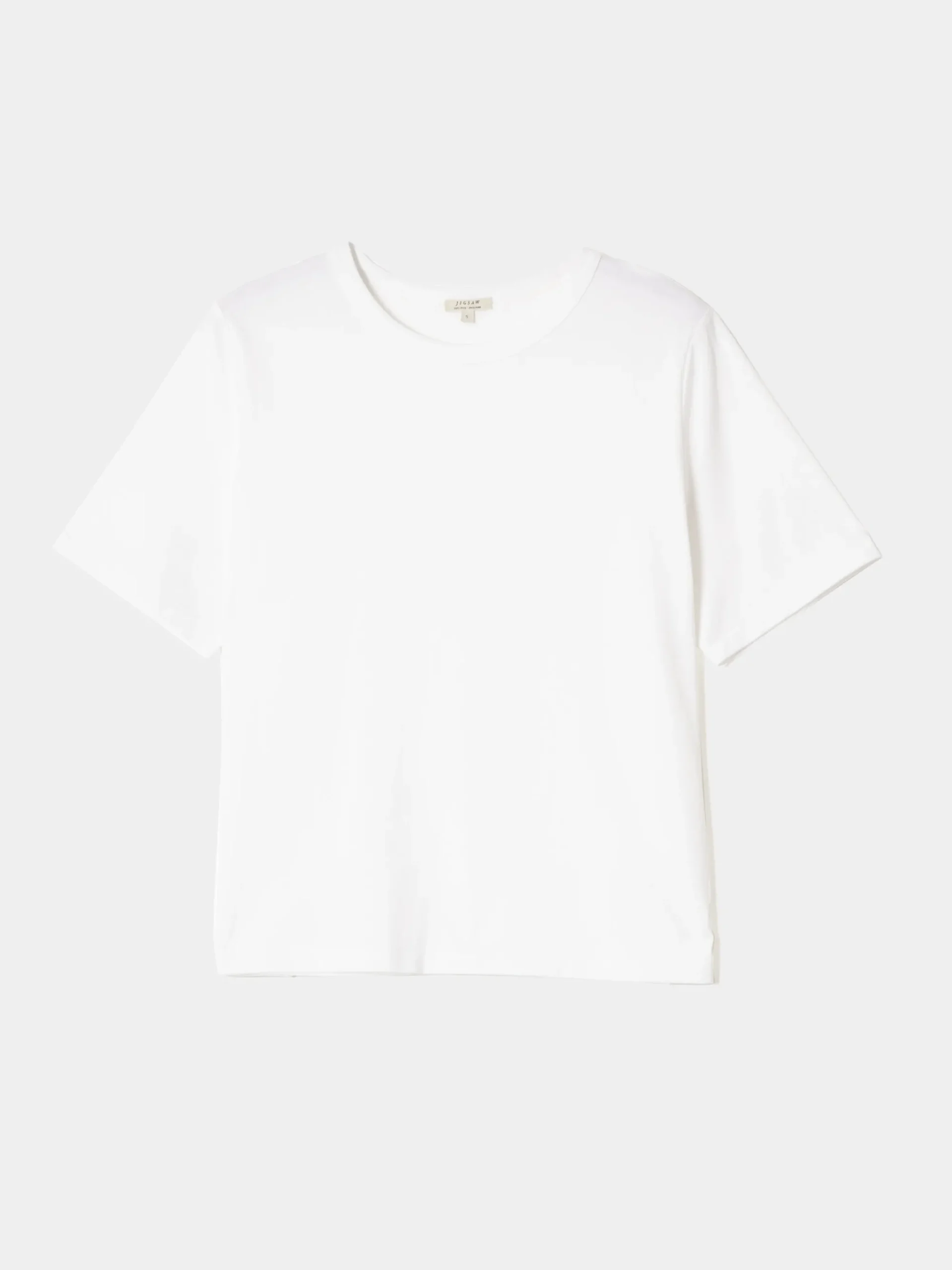 Cut from 100% cotton a classic T-shirt with a slouchy box fit. Features a crew neck subtly emphasized by self fabric trim. Fit and Features