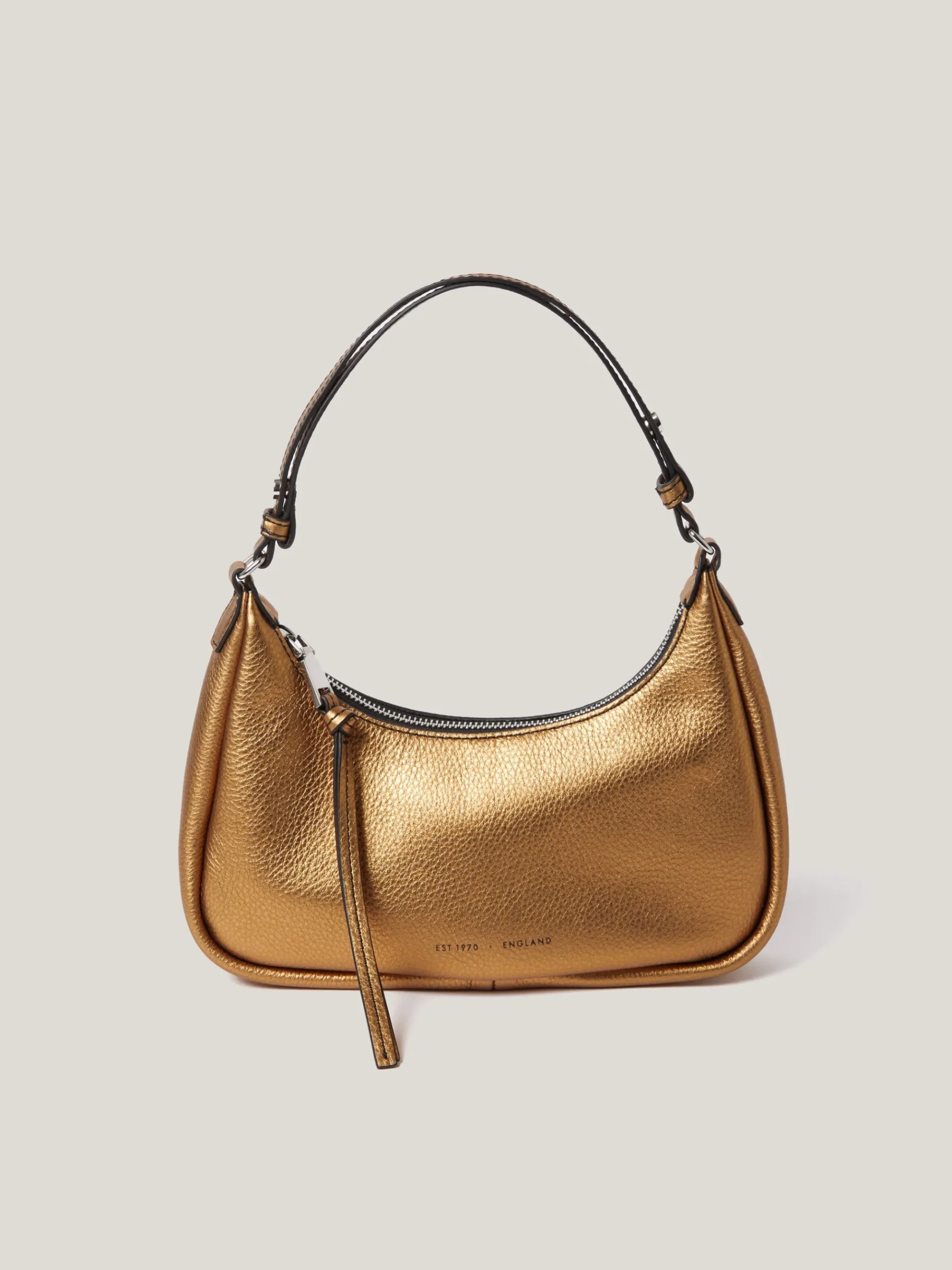 We’ve updated the 90s-inspired shoulder bag in soft grain leather with a sleek crescent shape for a modern spin. Finished with silver-tone hardware, the adjustable shoulder strap allows this bag to sit neatly in the crook of your arm.