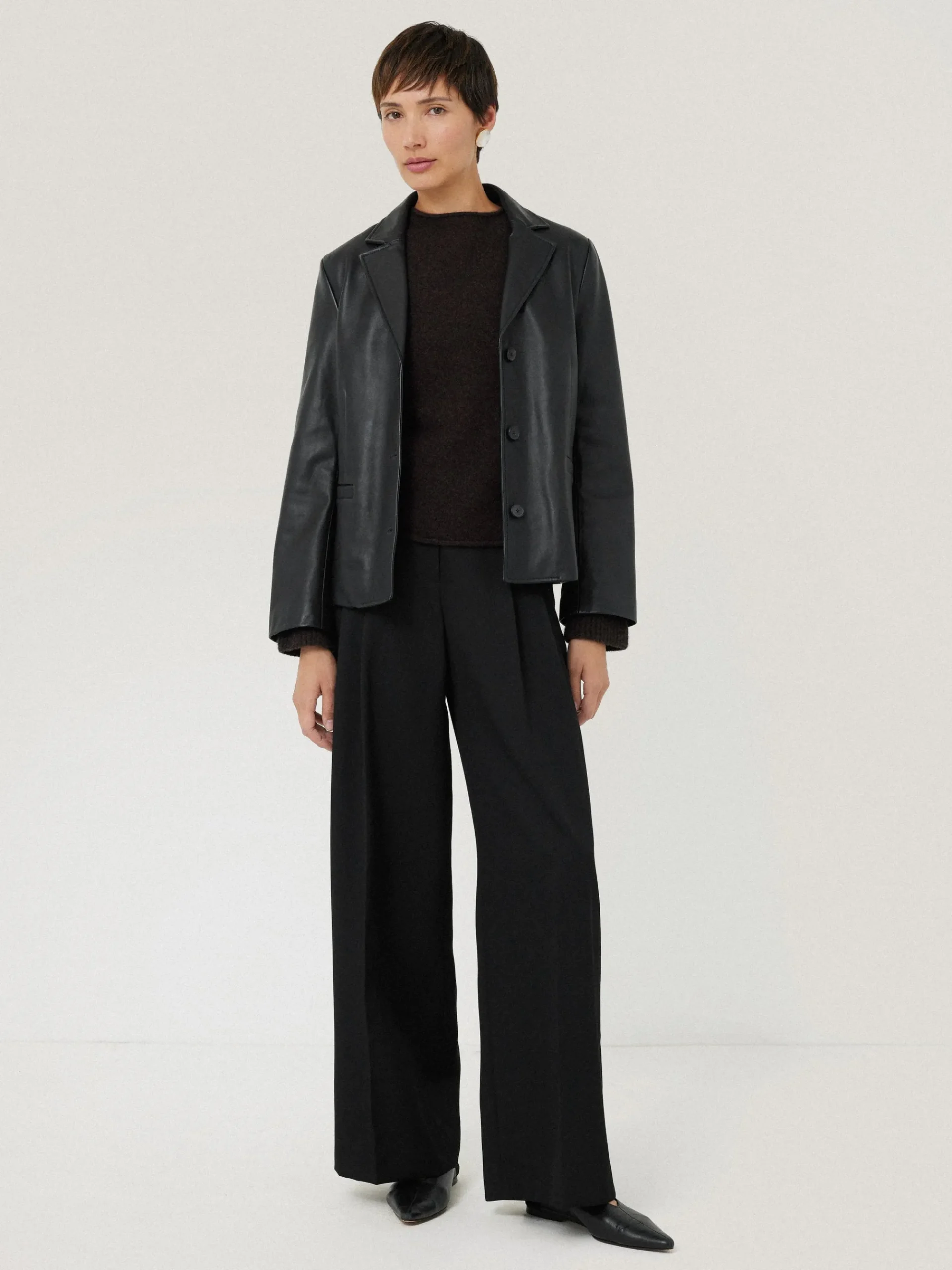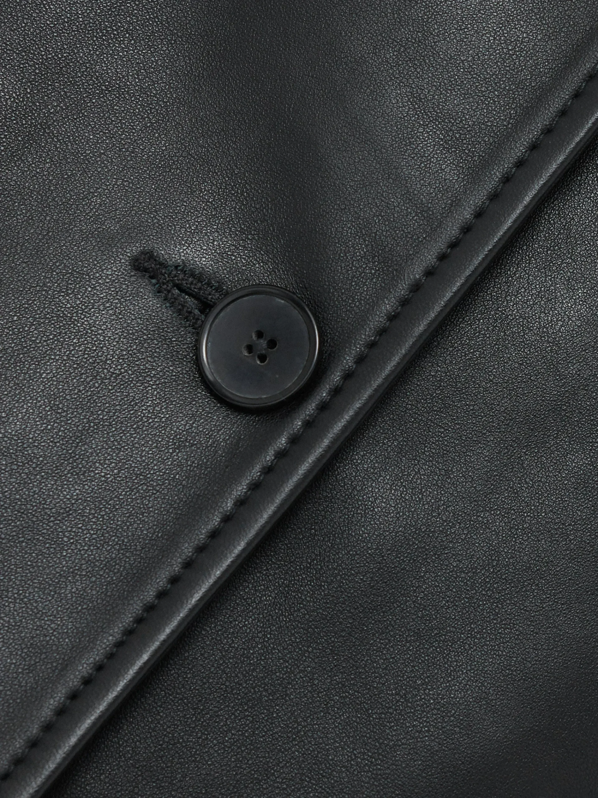 Tailoring with a tough twist; this black leather blazer will smarten any look in soft, buttery leather. Designed from our in-house atelier, the boxy, single-breasted fit allows for effortless layering underneath with a longline silhouette. Perfect for both day and evening wear, this versatile leather blazer works well you’re everyday basics or your favourite mini dress for a polished look. Fit and Features