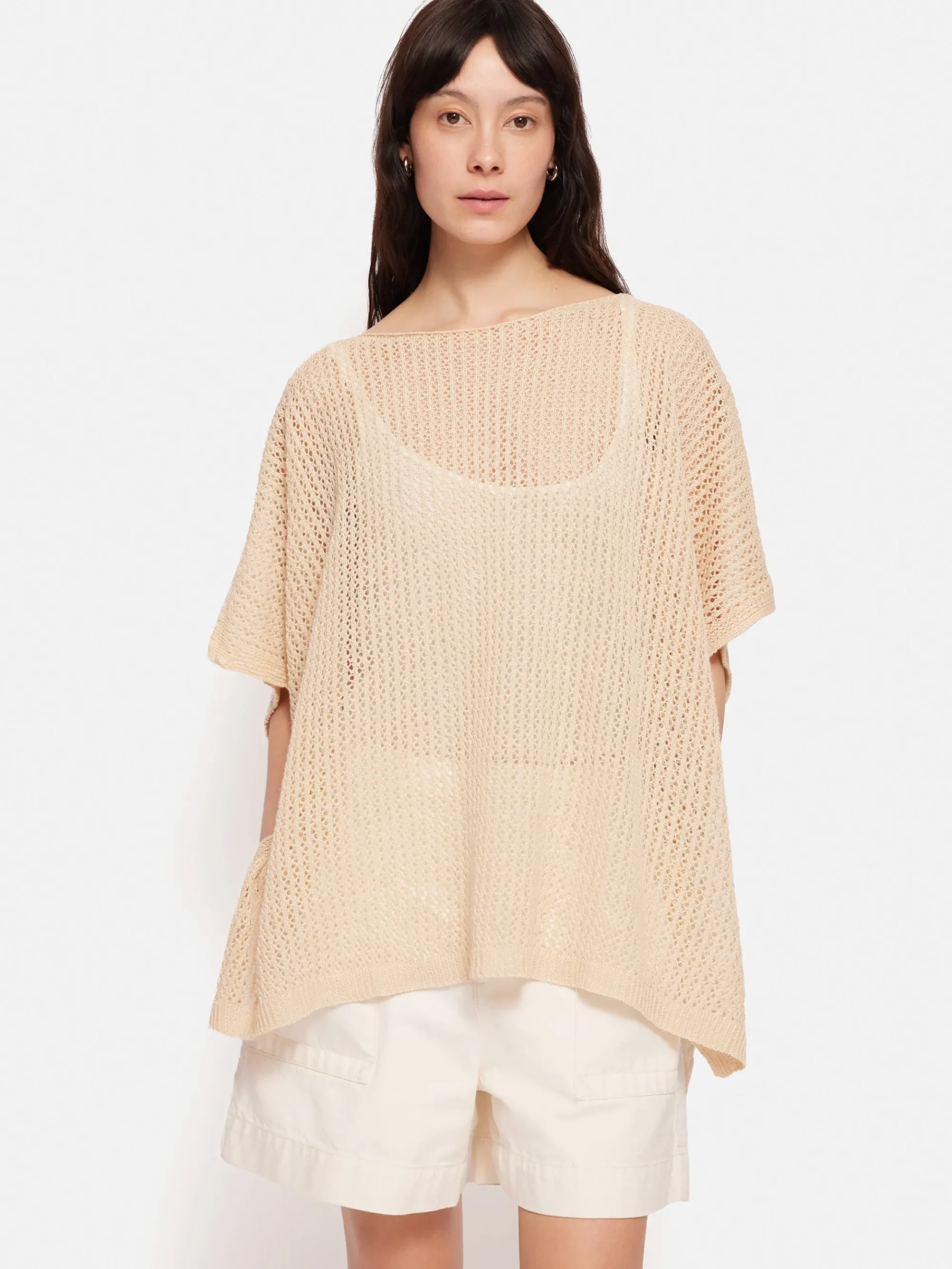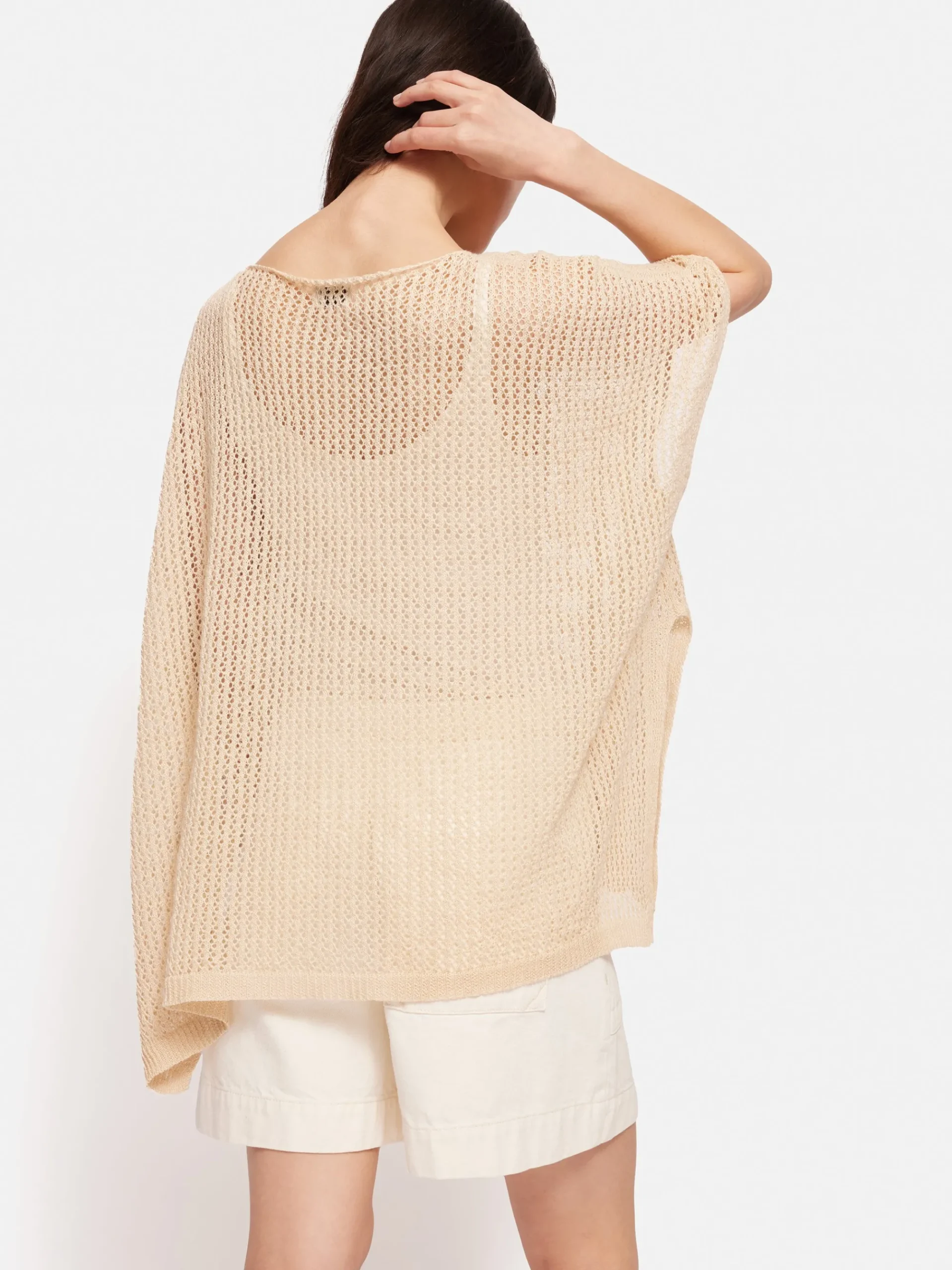 The perfect layer for cool summer nights, this lace knit poncho is made from breathable 100% linen. Arriving in a relaxed neutral cream and an deep earthy khaki this poncho will elevate your summer casual look. Layer over shorts and tee or a laid back summer dress.