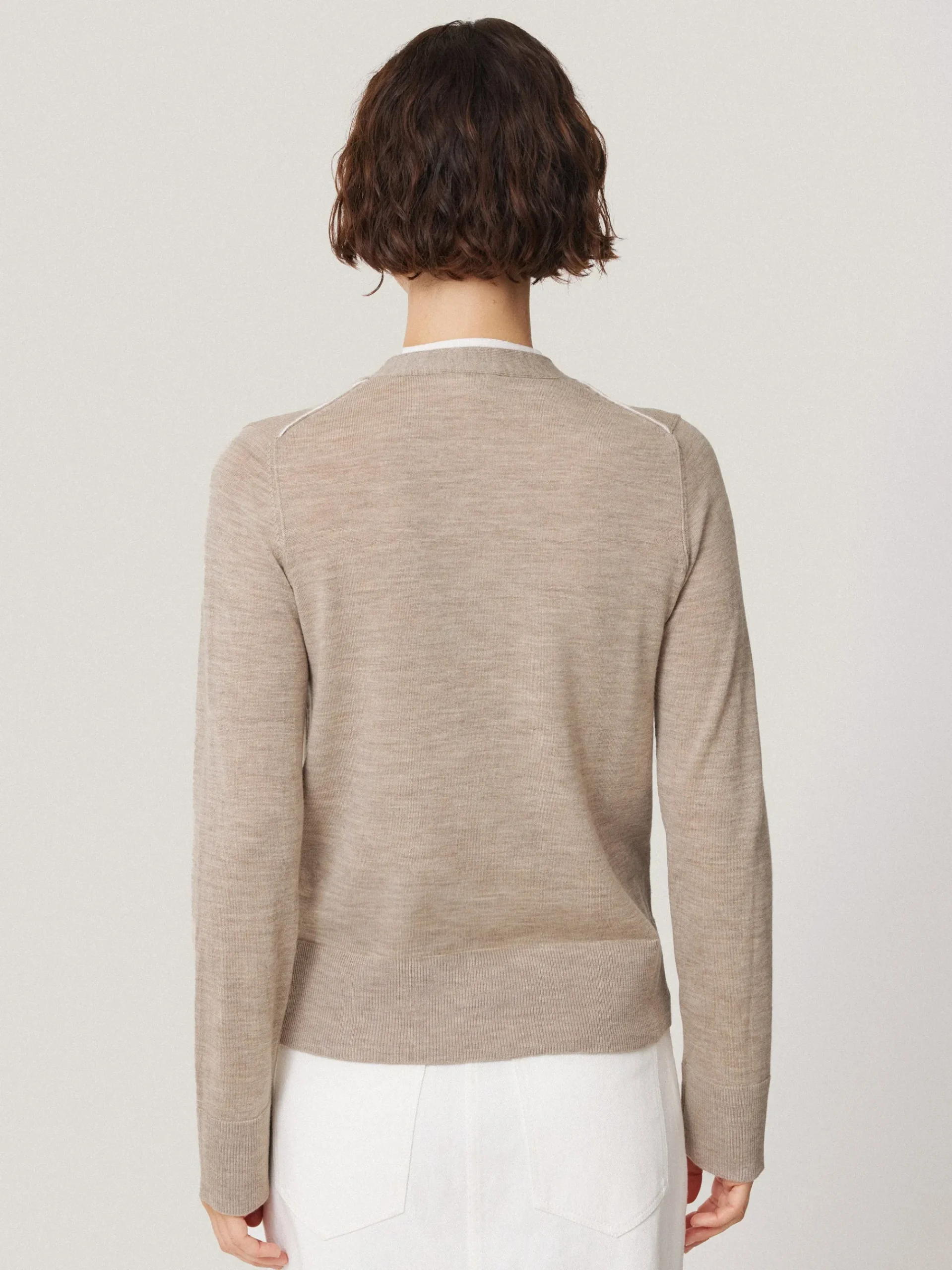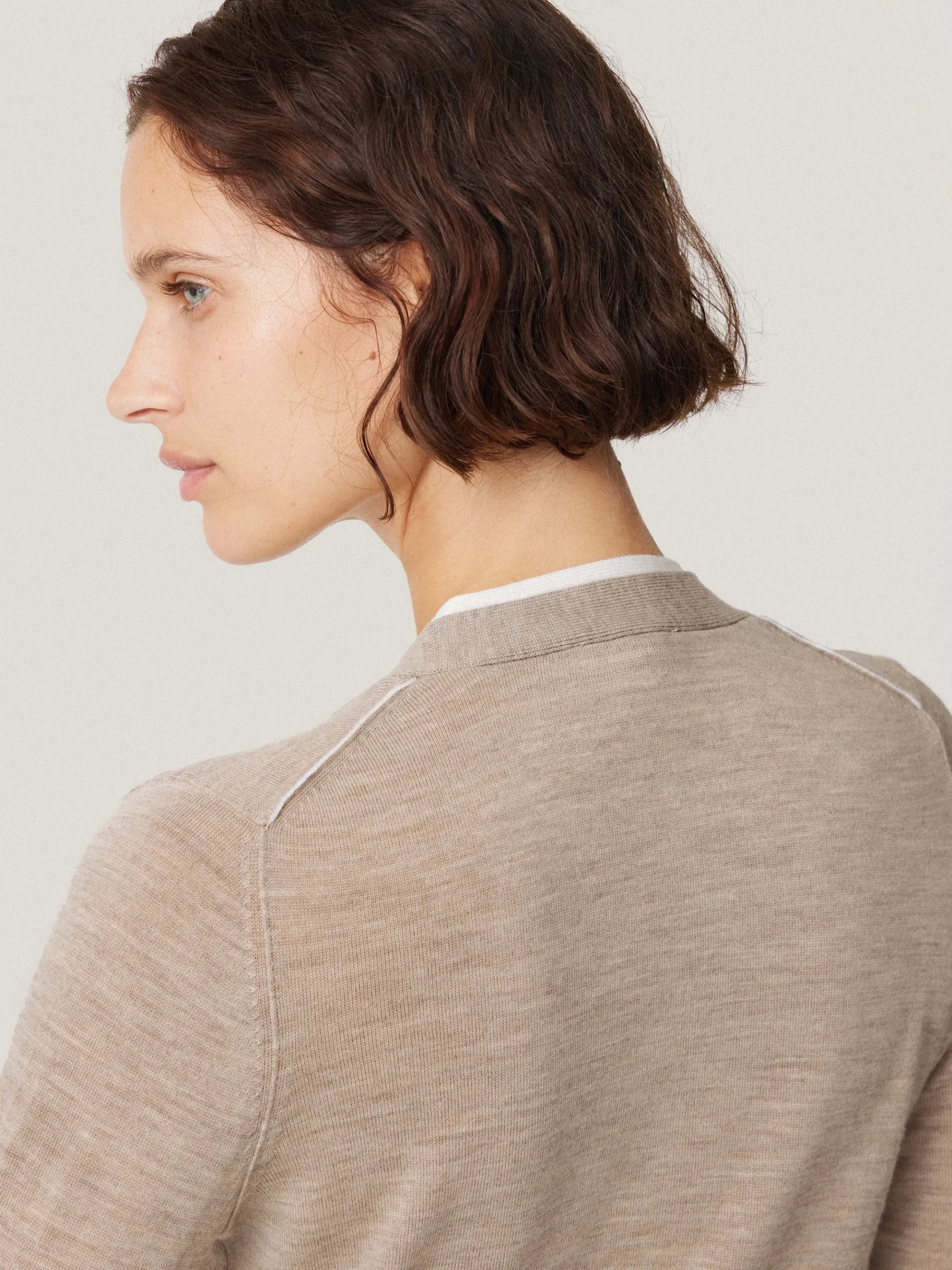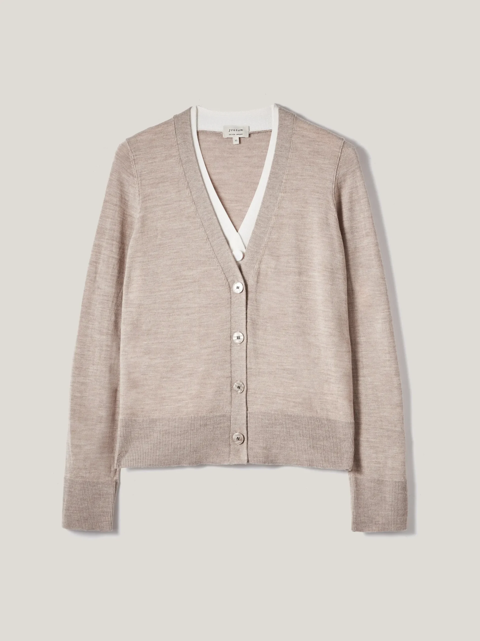 Designed to give the illusion of wearing two layers, this clever-thinking cardigan in soft merino wool features double p…