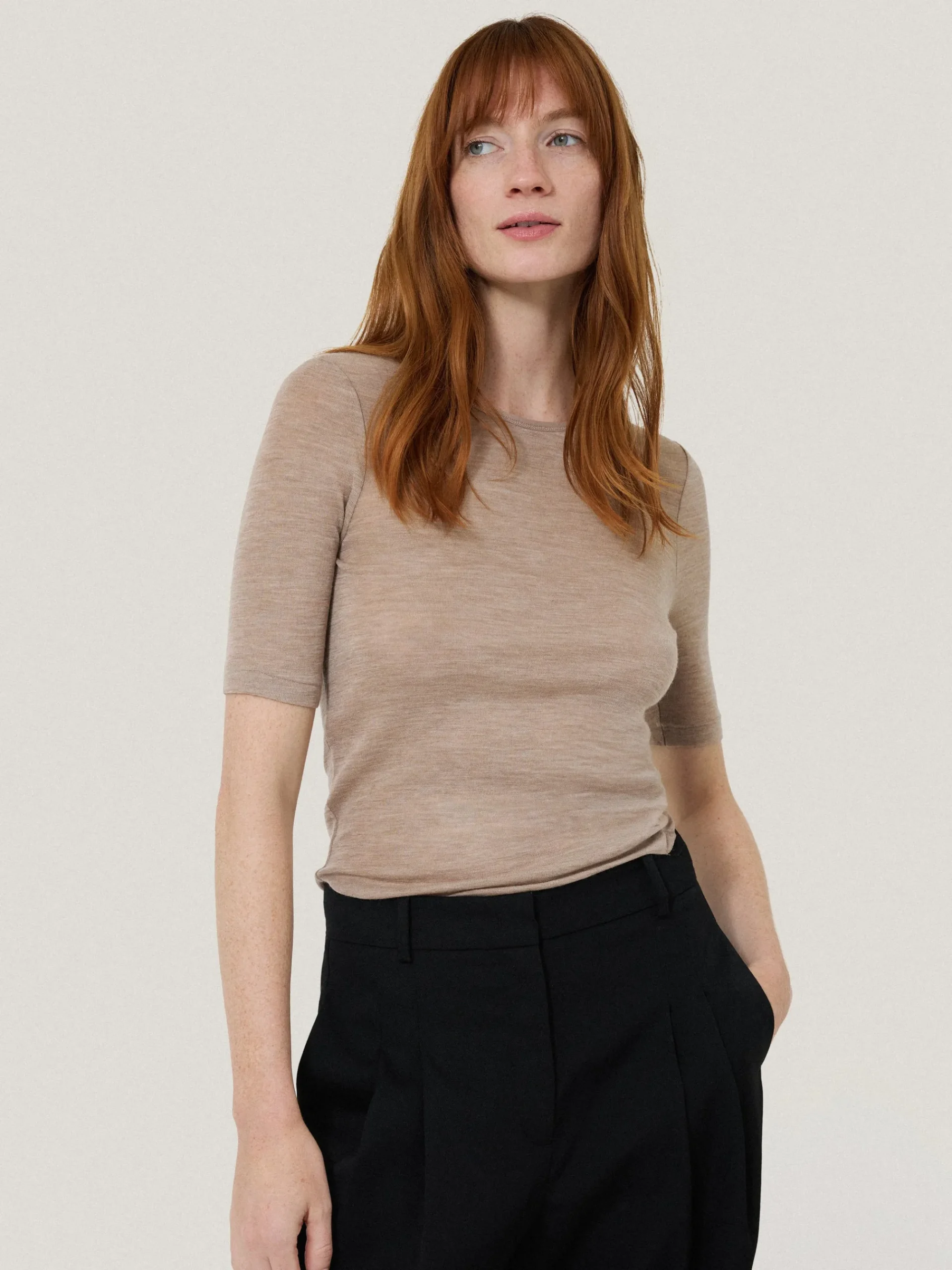 Details: A fine-gauge knit makes this short sleeve top lightweight and breathable, while the merino wool fabrication brings warmth and softness to all your layering scenarios. The slim fit is designed to sit close to your body with an elasticated neck trim for all-day comfort.