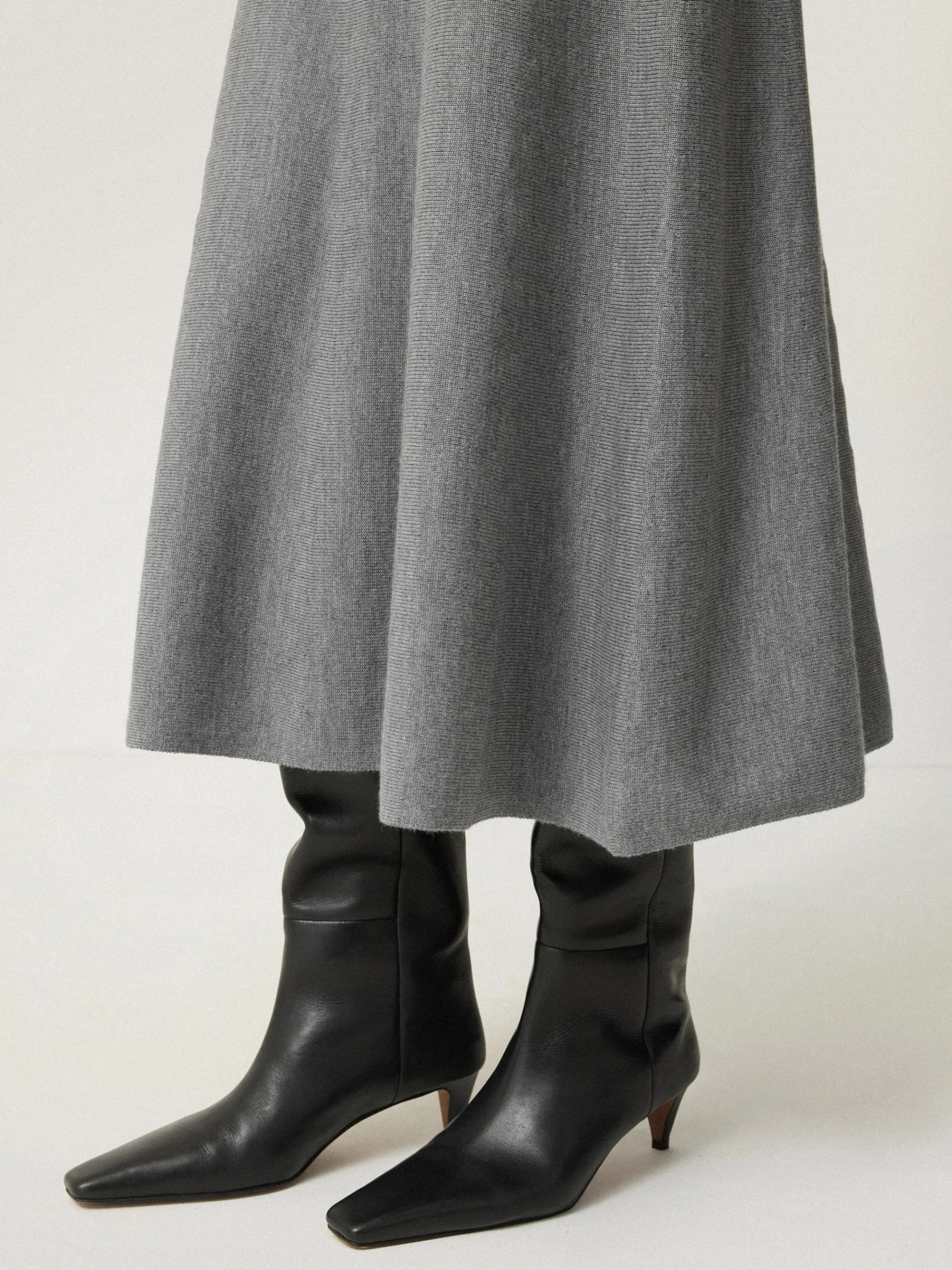 Beautiful merino wool provides lightweight warmth as seen with this classic midi skirt. Cut for a graceful silhouette that falls to the ankle, we love that this piece can be worn with the matching waistcoat or polo neck and a pair of knee high boots.