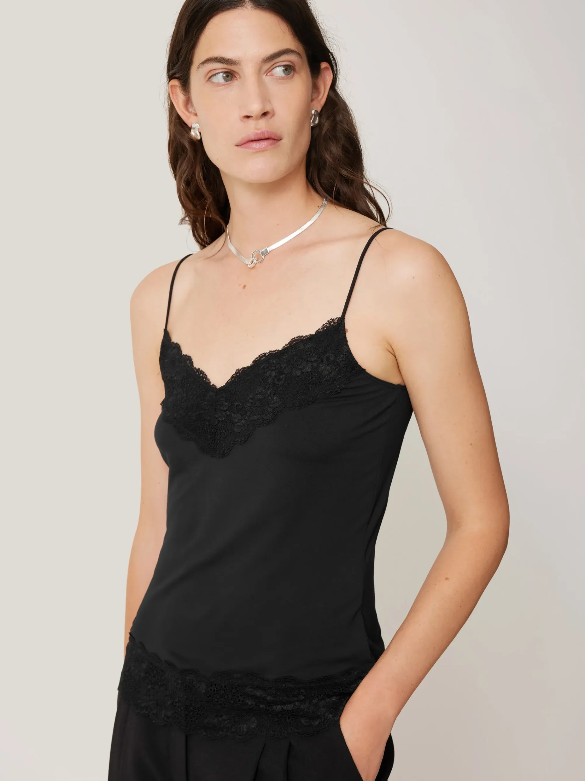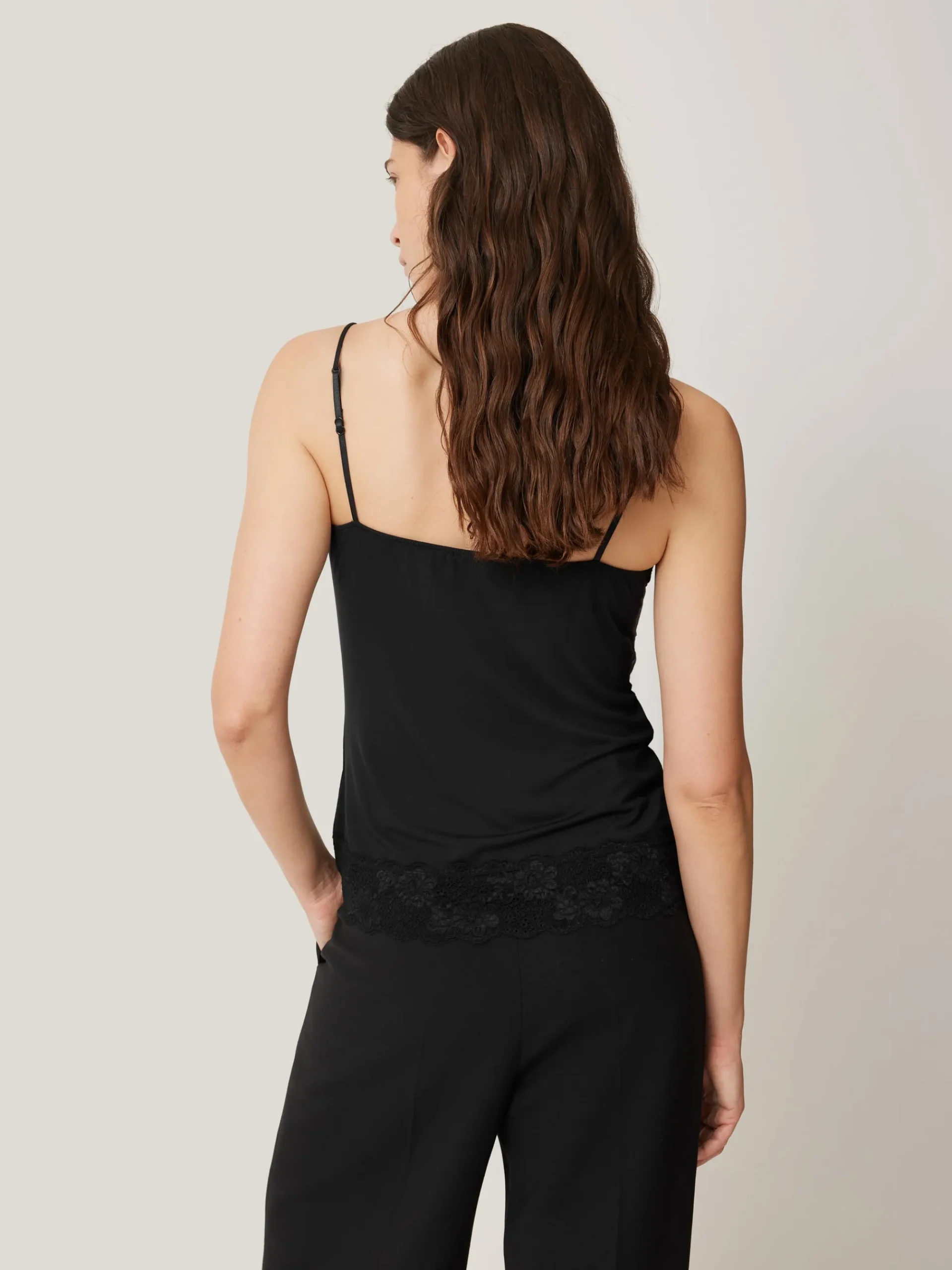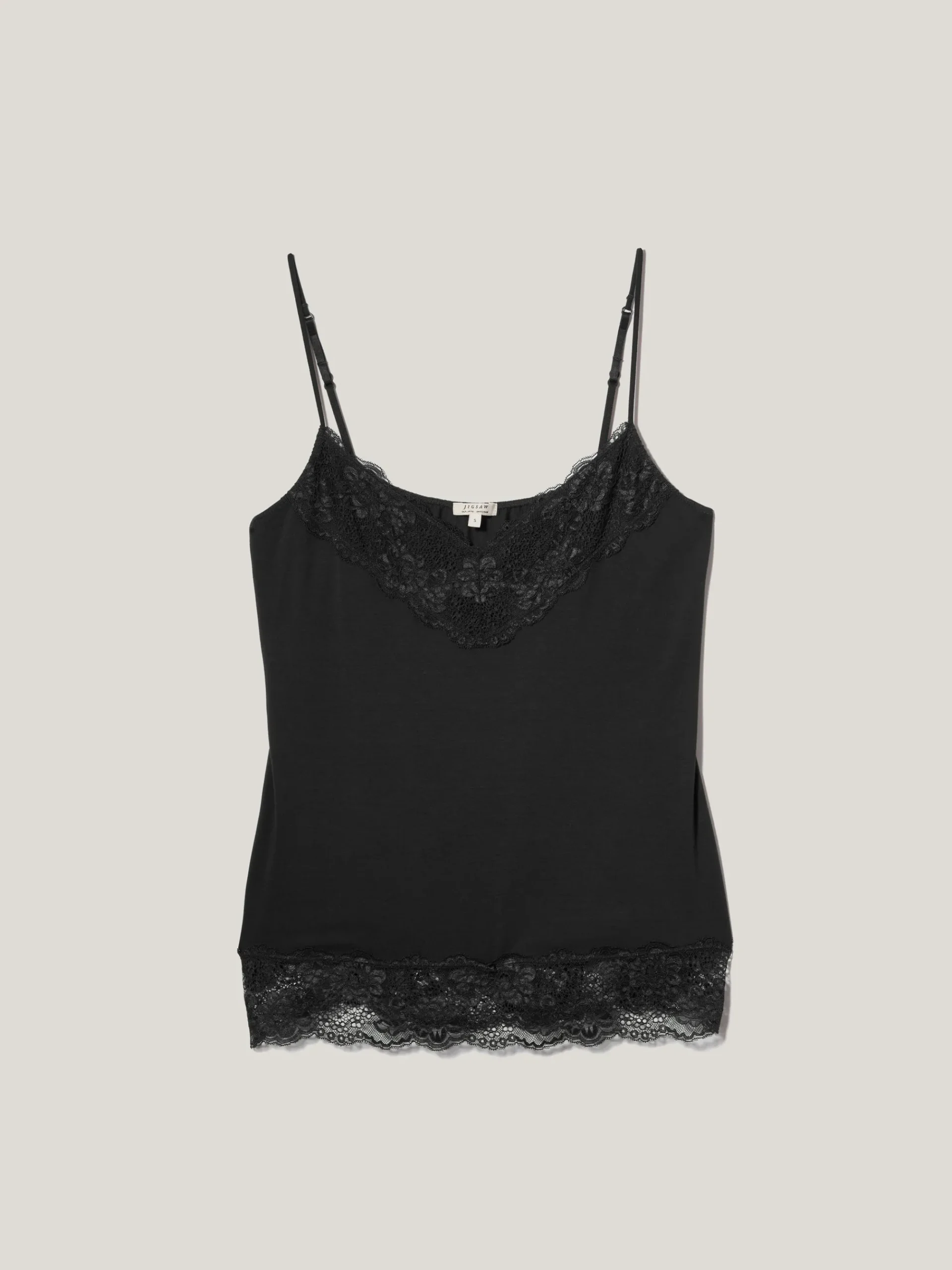 Featured in a range of classic colours, this modal lace vest is a bestselling under layer. Cut from soft modal jersey with slim adjustable straps, lace trim detail adds a subtle vintage-inspired twist.