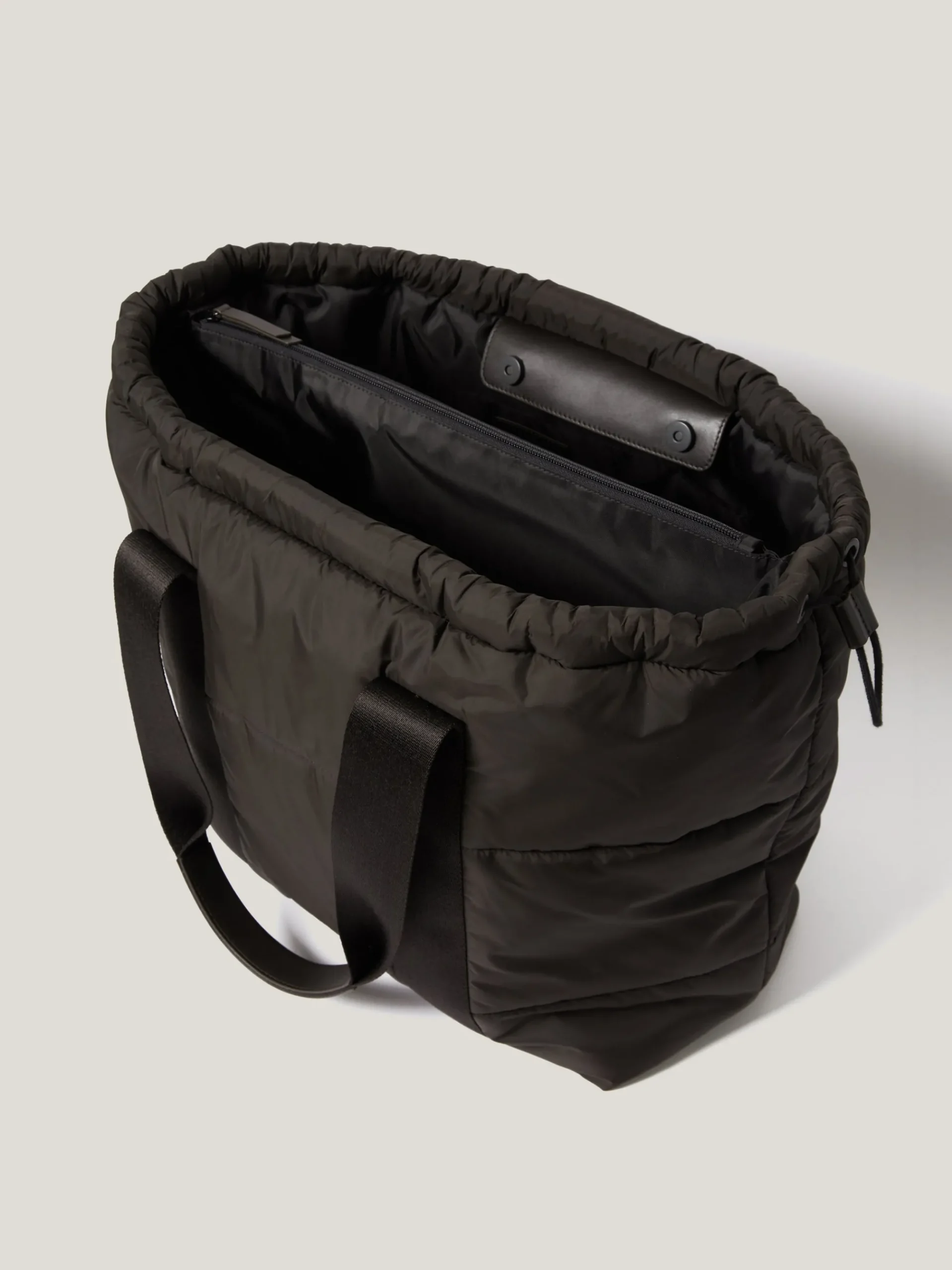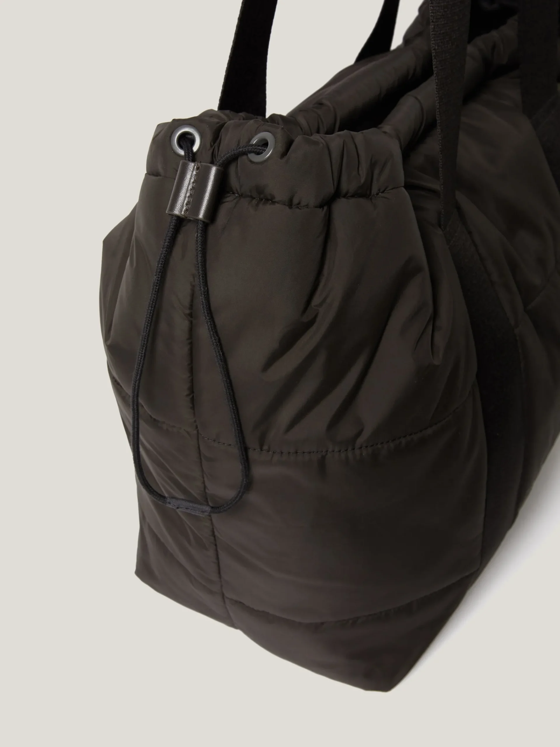 Functional yet right at-home with the nylon bag trend that’s going nowhere fast; this drawstring tote bag is a must-have carryall for every season. The recycled nylon construction is detailed with a drawstring top and a toggle fastening.