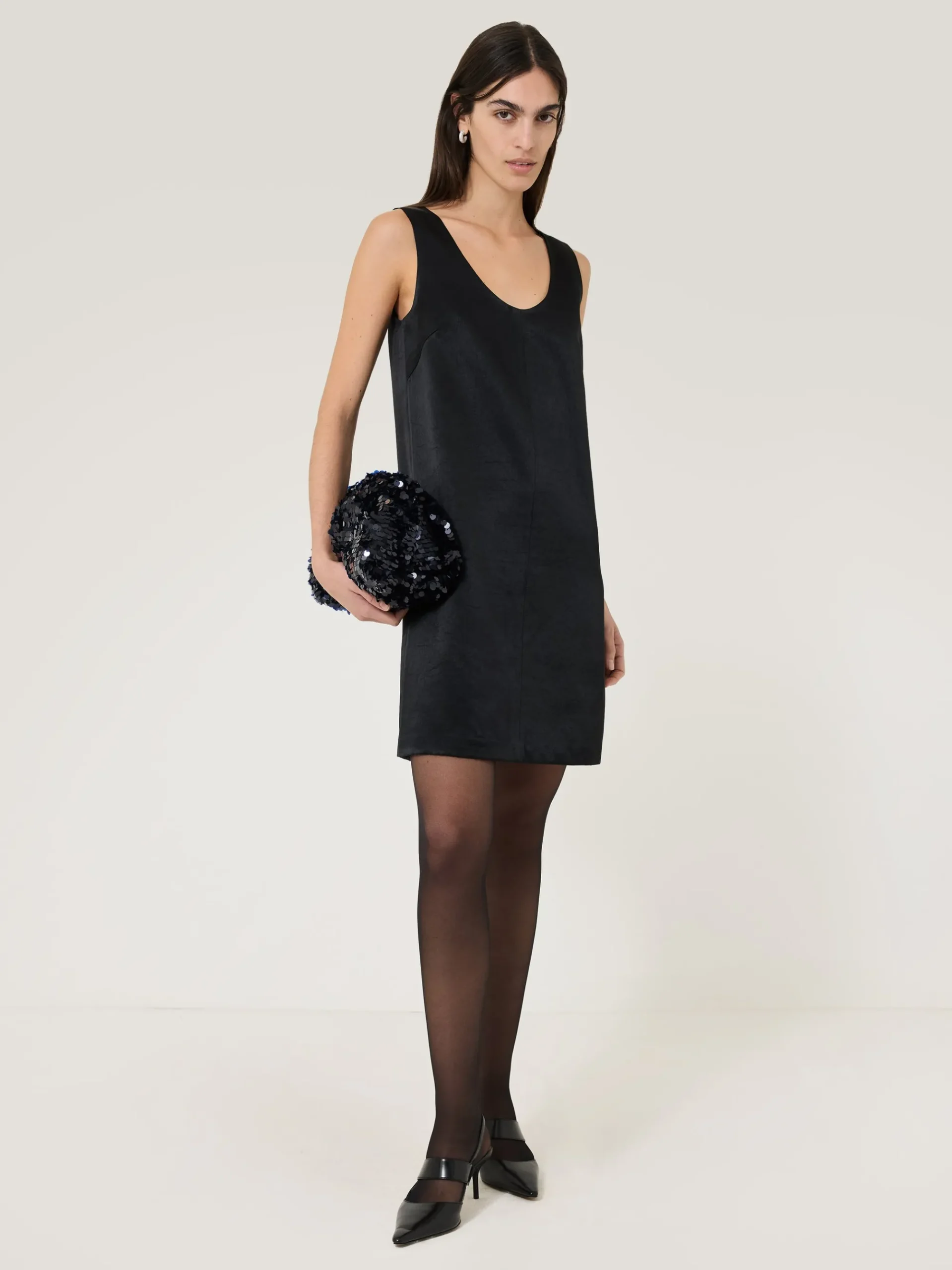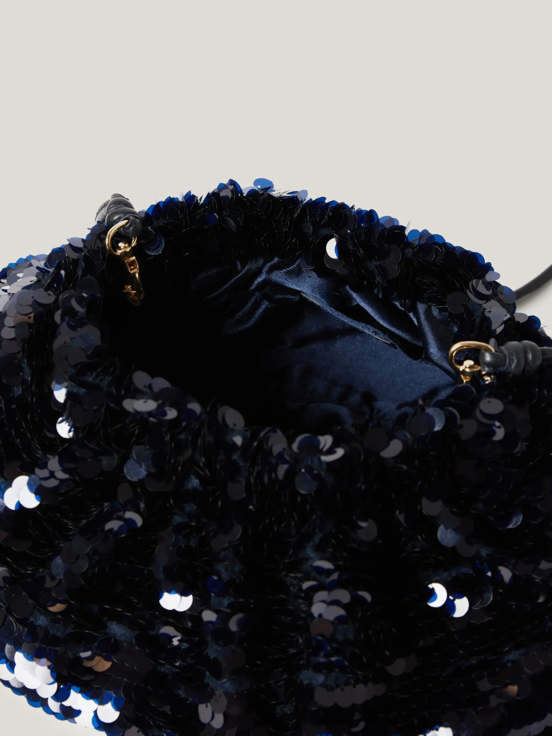 Opt for accessories worthy of their moment in the spotlight. This oversized sequin clutch is a conversation starter for any party, festooned with shimmering sequin embellishment. Add or remove the leather crossbody strap as and where the mood takes you.