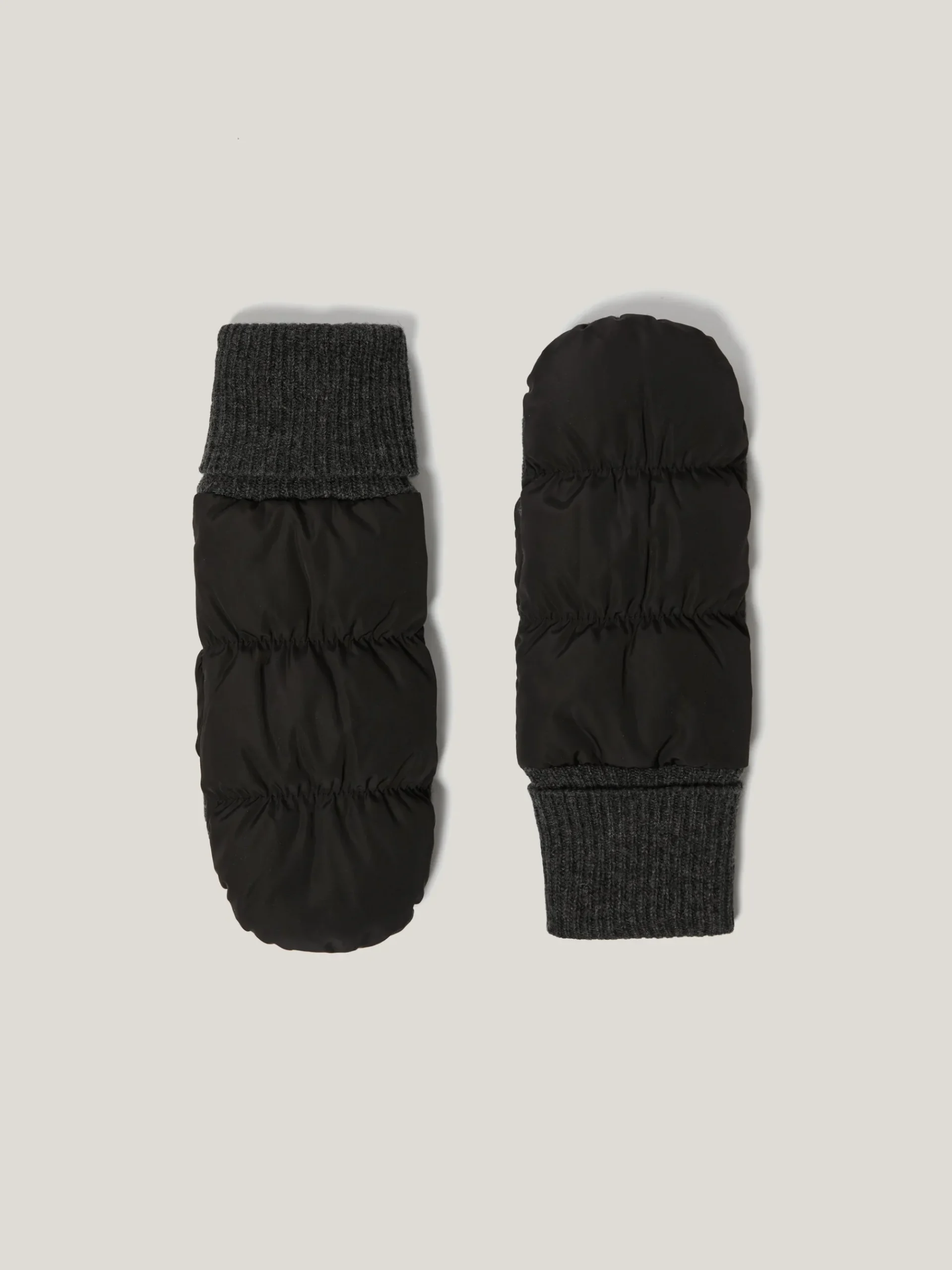 Fend off the winter chill with these puffer mittens; perfect around the city as well as when hitting the slopes with contrasting merino ribbed knit accents for extra warmth.