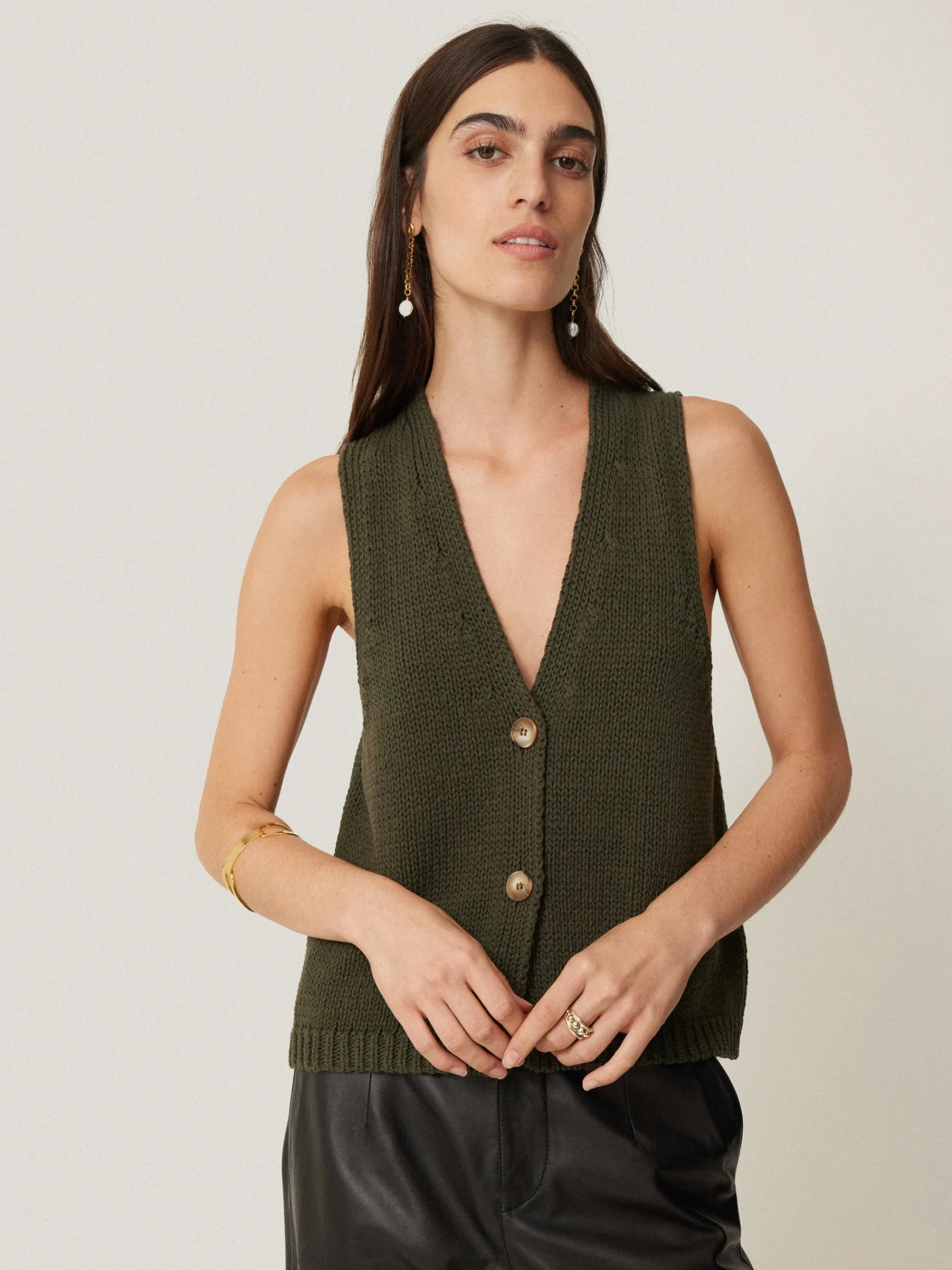 Embrace relaxed, summertime elegance with the Pure Cotton Knitted Waistcoat. Wear to perfection alone or pair with a boxy white tee.