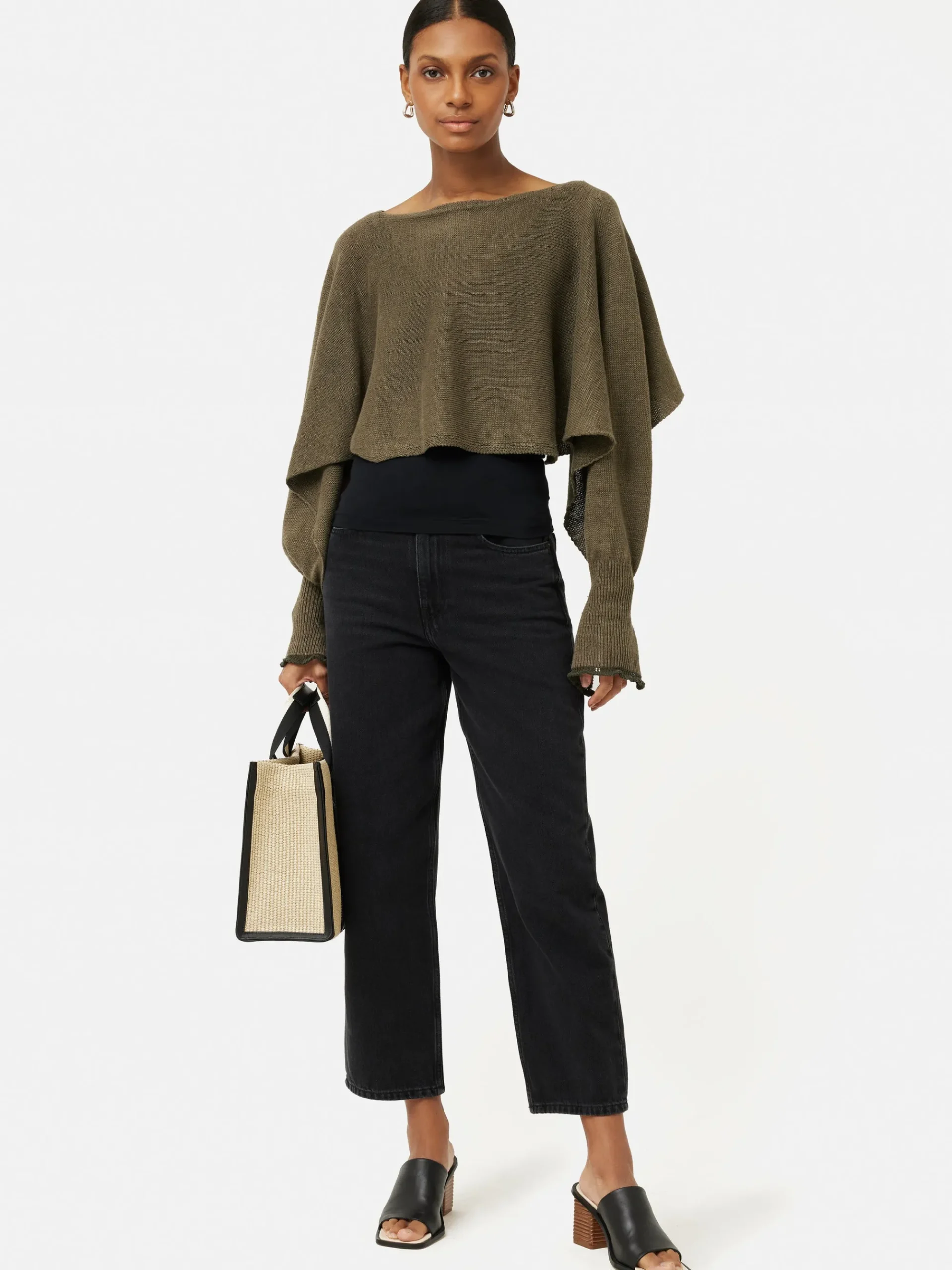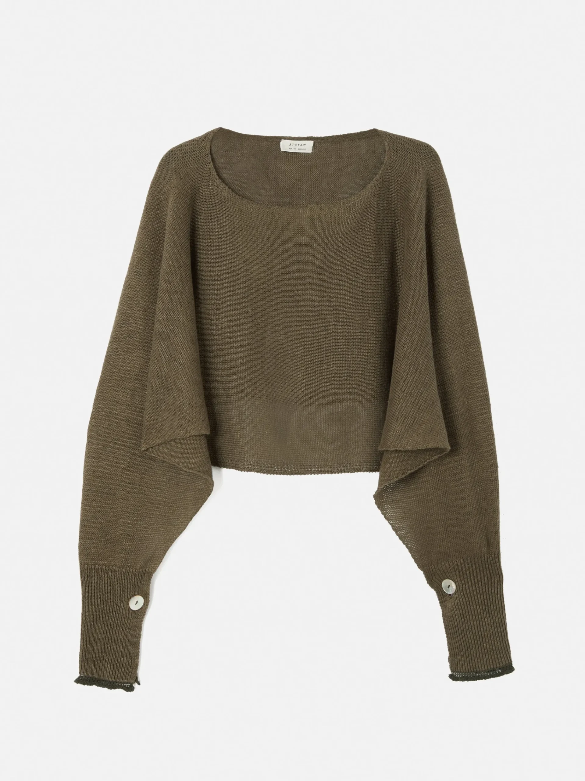 Crafted from pure linen, our poncho jumper is the perfect lightweight layer of the season. A casual fit with a draped hem and slashed neckline opening. Features a ribbed cuff with a contrast trim and a button fastening, wear open or closed depending on desired silhouette.tte. Fit and Features