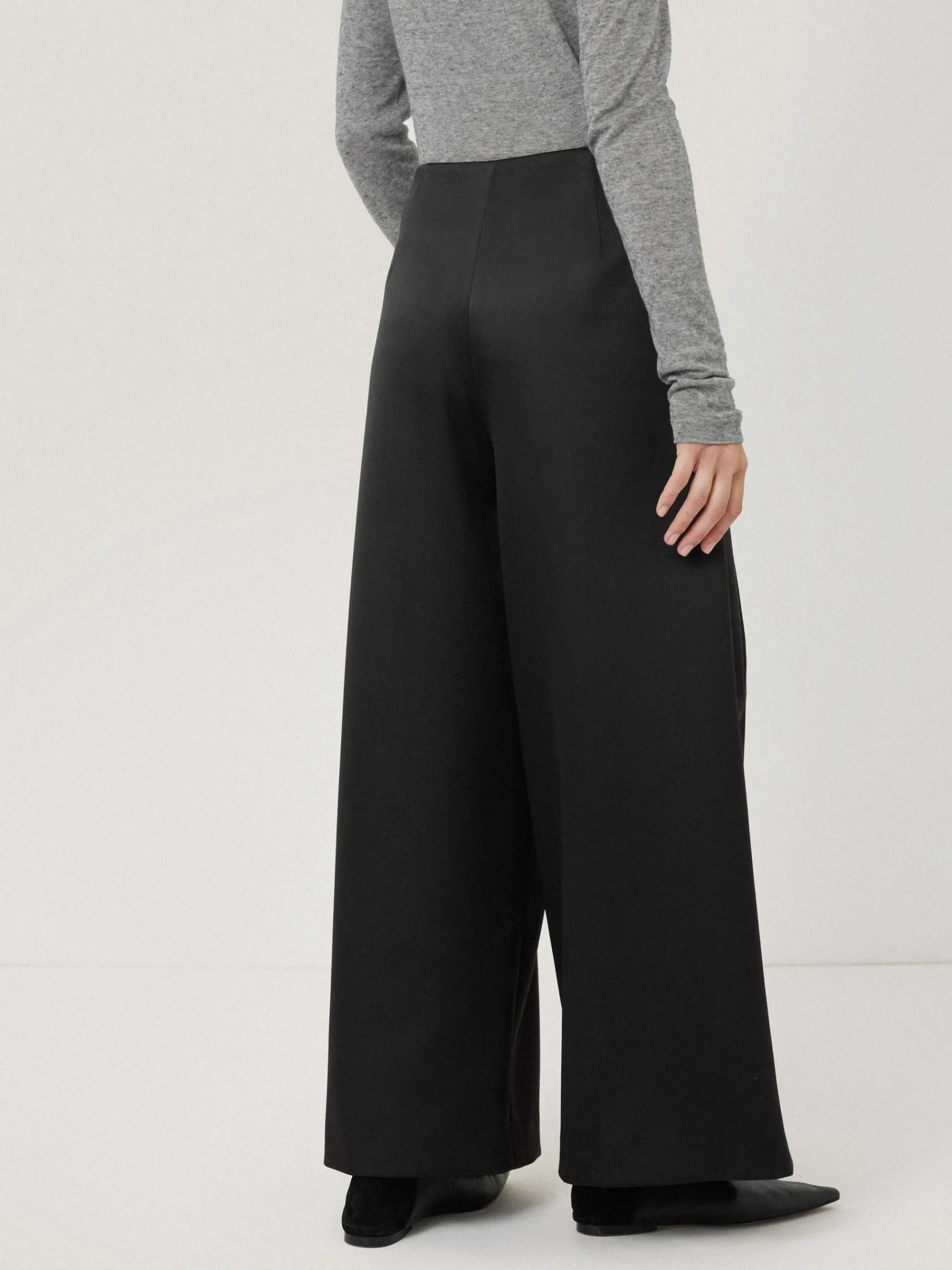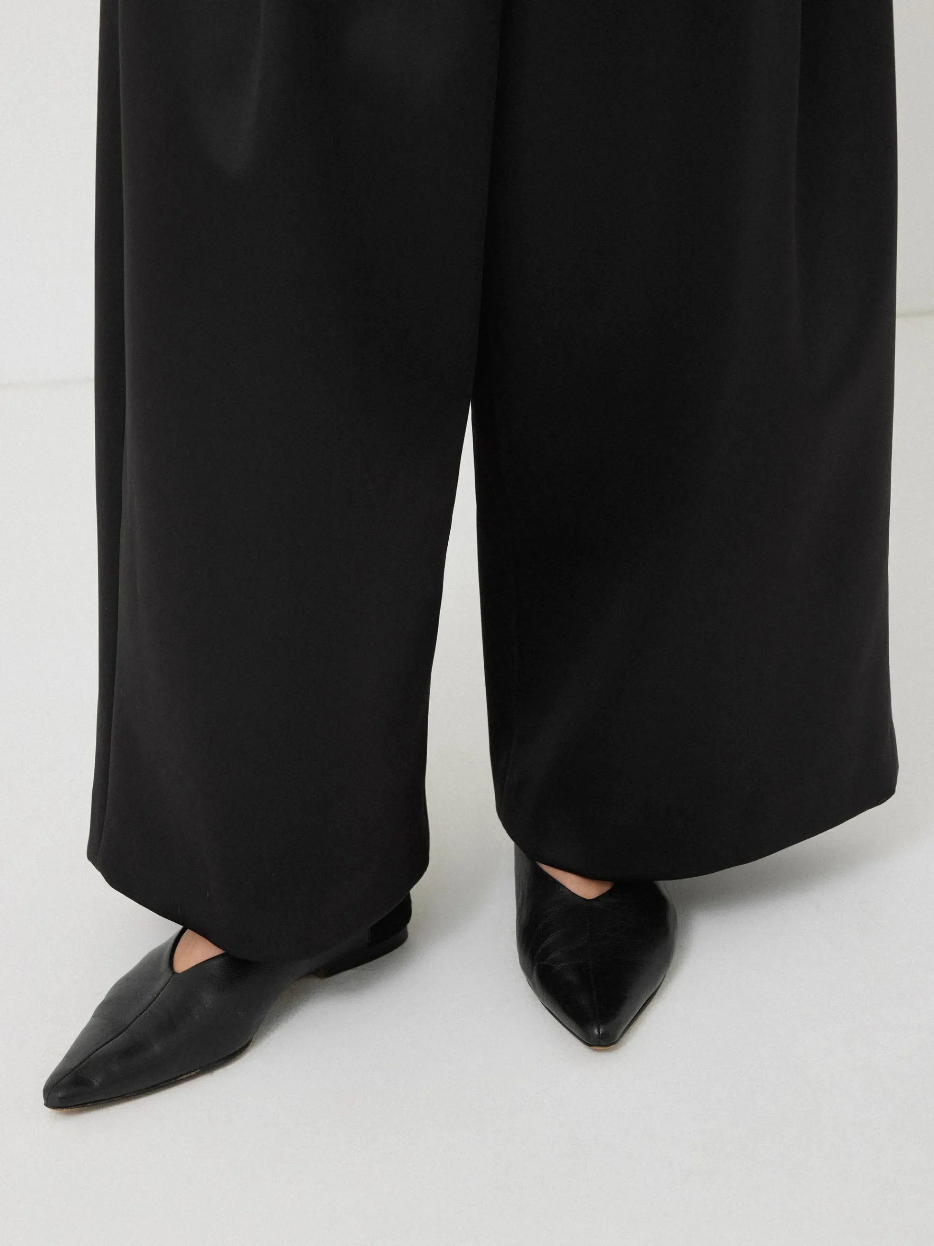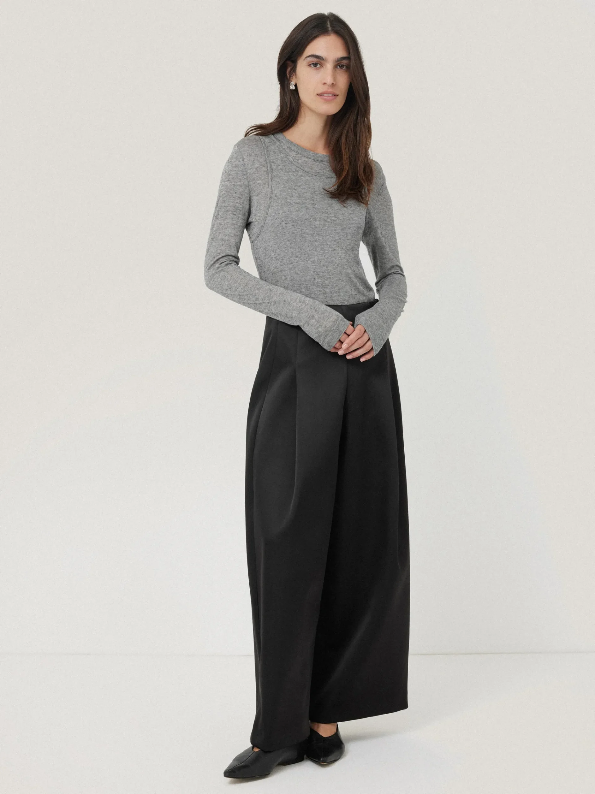 Their mid-weight bonded satin fabrication creates structure while dressing them up as an eveningwear option with wide single pleat detail. Sitting neatly on the ankle, they can also be dressed down with a cosy knit for days in the office.