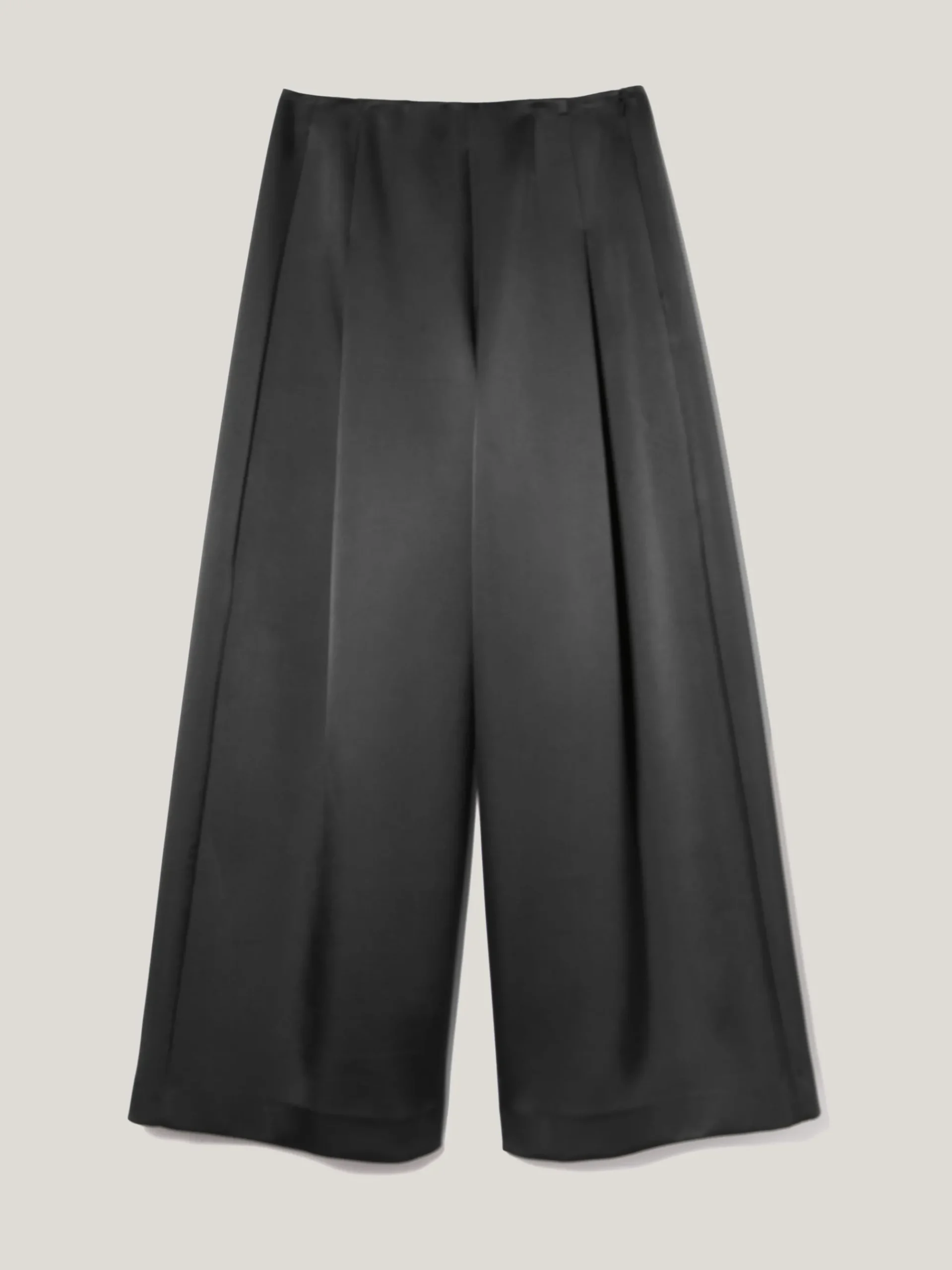 Levelling up from your typical satin trouser, our wide leg satin trousers are a bold take on a wardrobe staple designed with a voluminous, cropped silhouette.