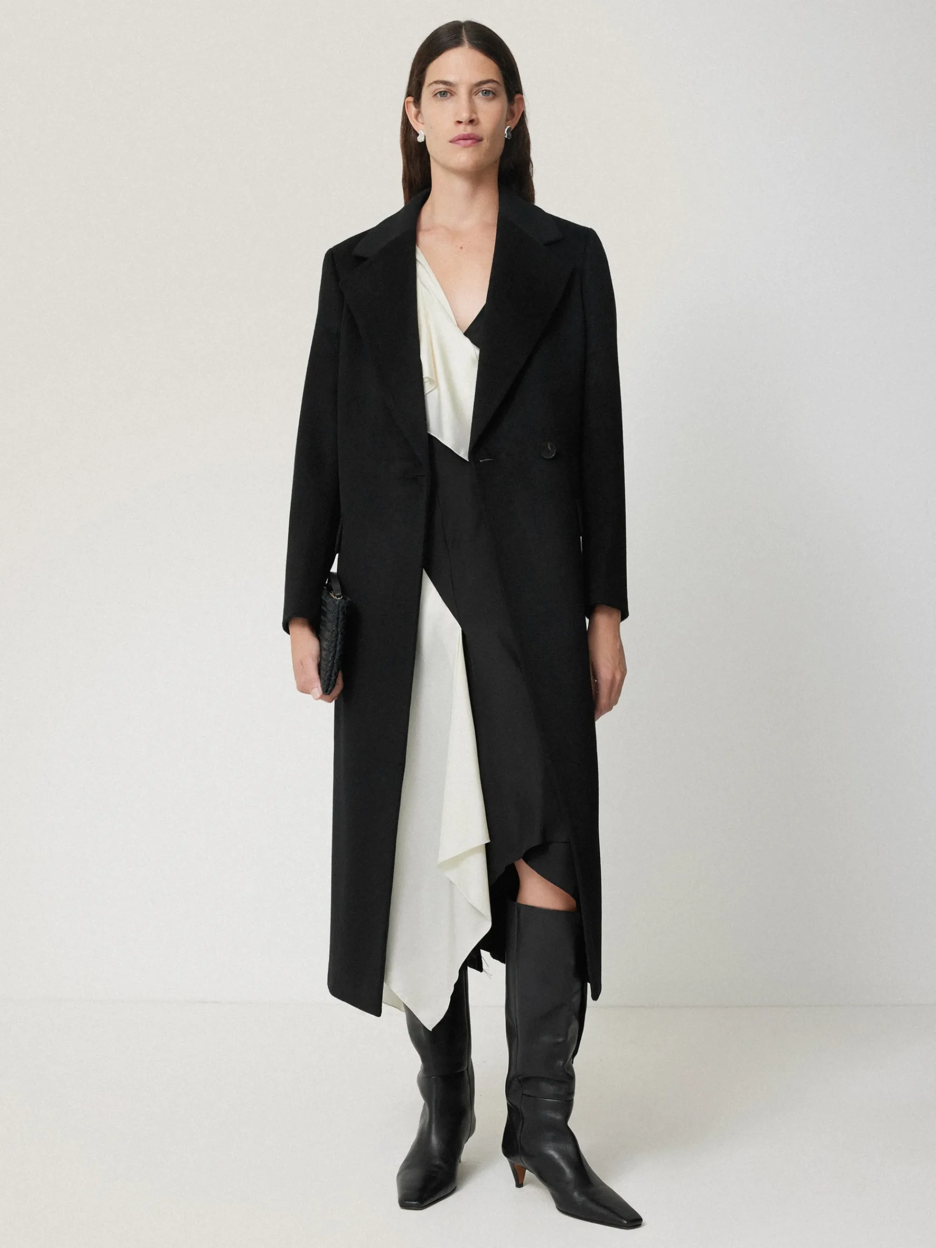 The ultimate occasion piece of the season, this sculptural 3-D dress is designed to drape beautifully on the body with asymmetric layers in two-tone silk twill. Based on textile designs commissioned to us by Janet Lance Hughes, this dress mixes classic tones of cream and black to create a dramatic monochrome colour palette for evening.