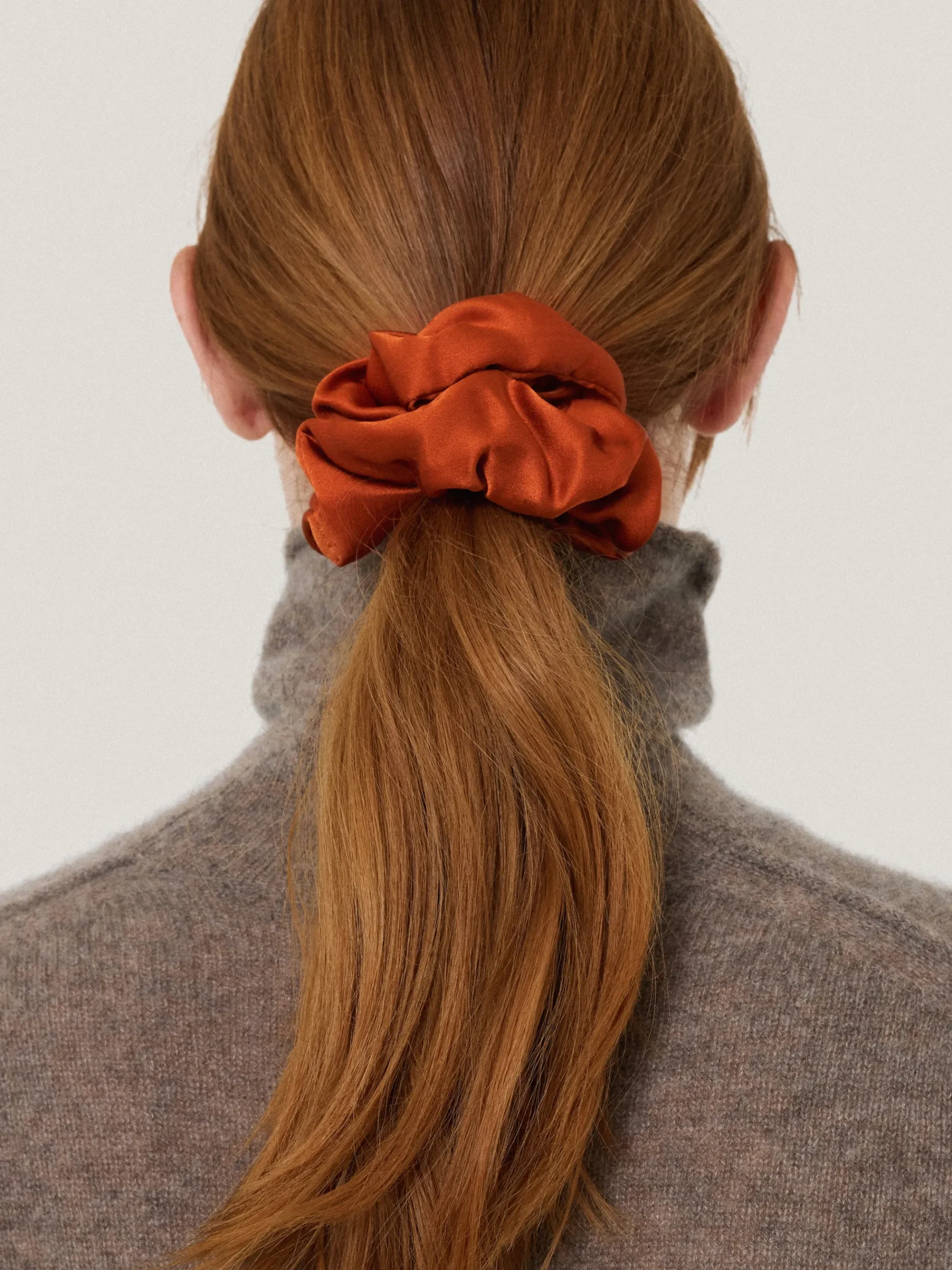 This oversized scrunchie adds a pop of beautiful colour while instantly dressing up any hairstyle in refined silk. A gre…