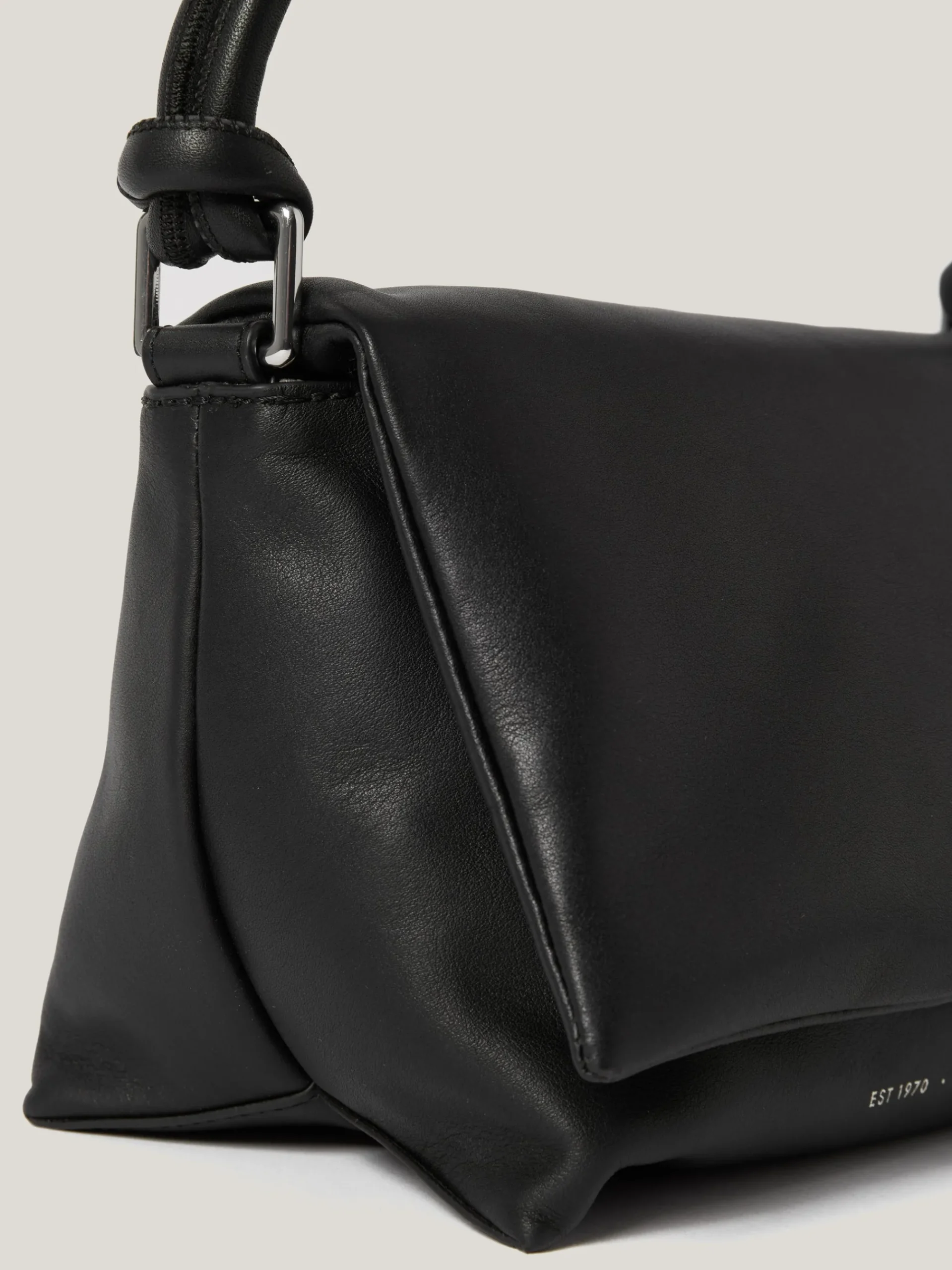 Our padded crossbody plays with texture and proportion, in a contemporary wedge shape with plush cushioning. Butter soft nappa leather only enhances its unique profile, with a detachable, adjustable crossbody strap should you wish to hold from the twisted top handle. Inside, a zip pocket keeps your important things safely stowed away.