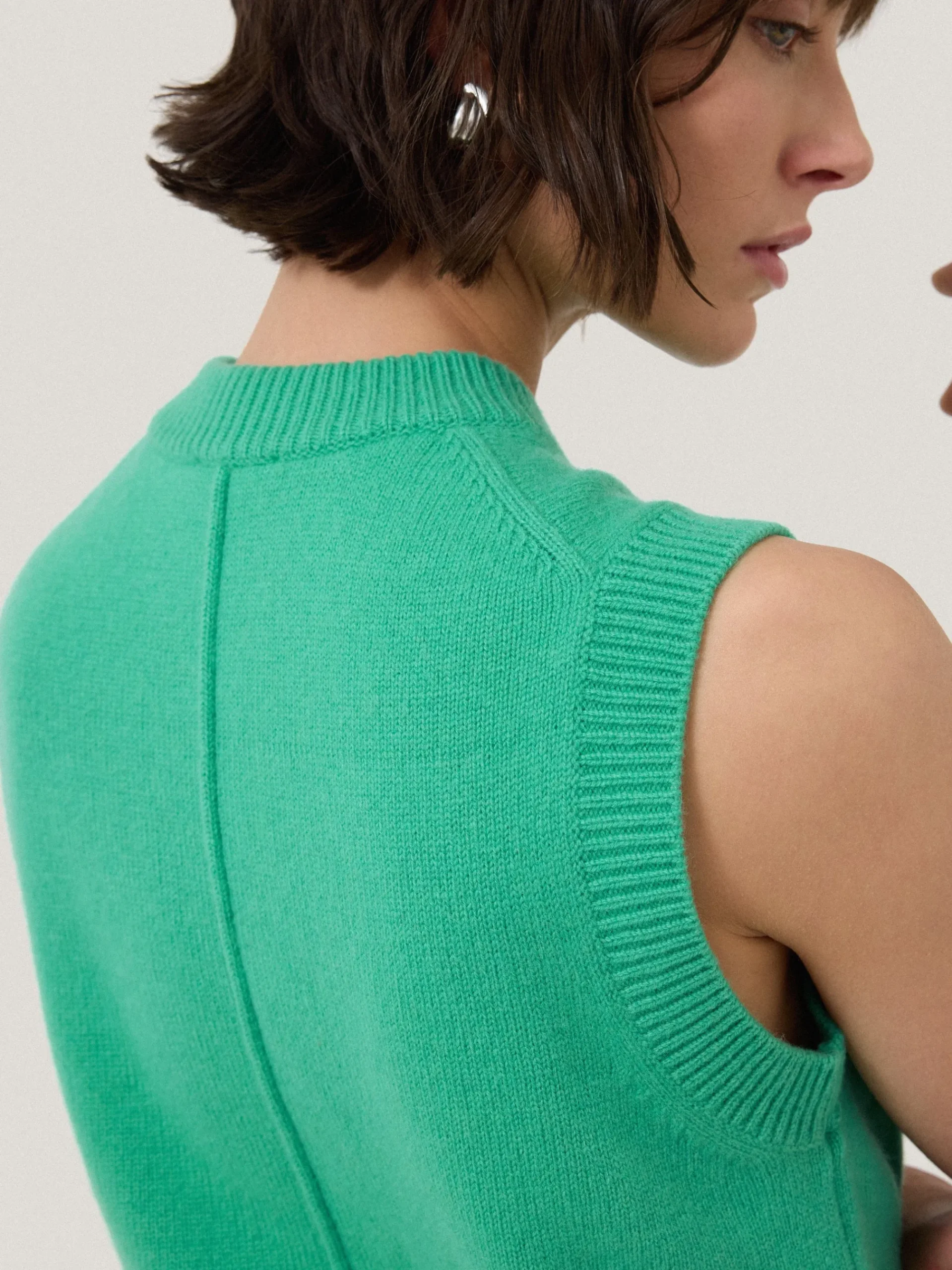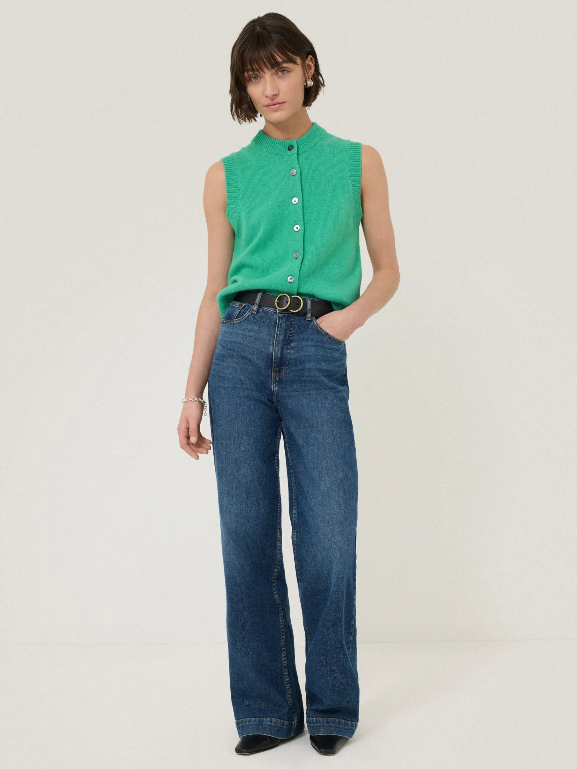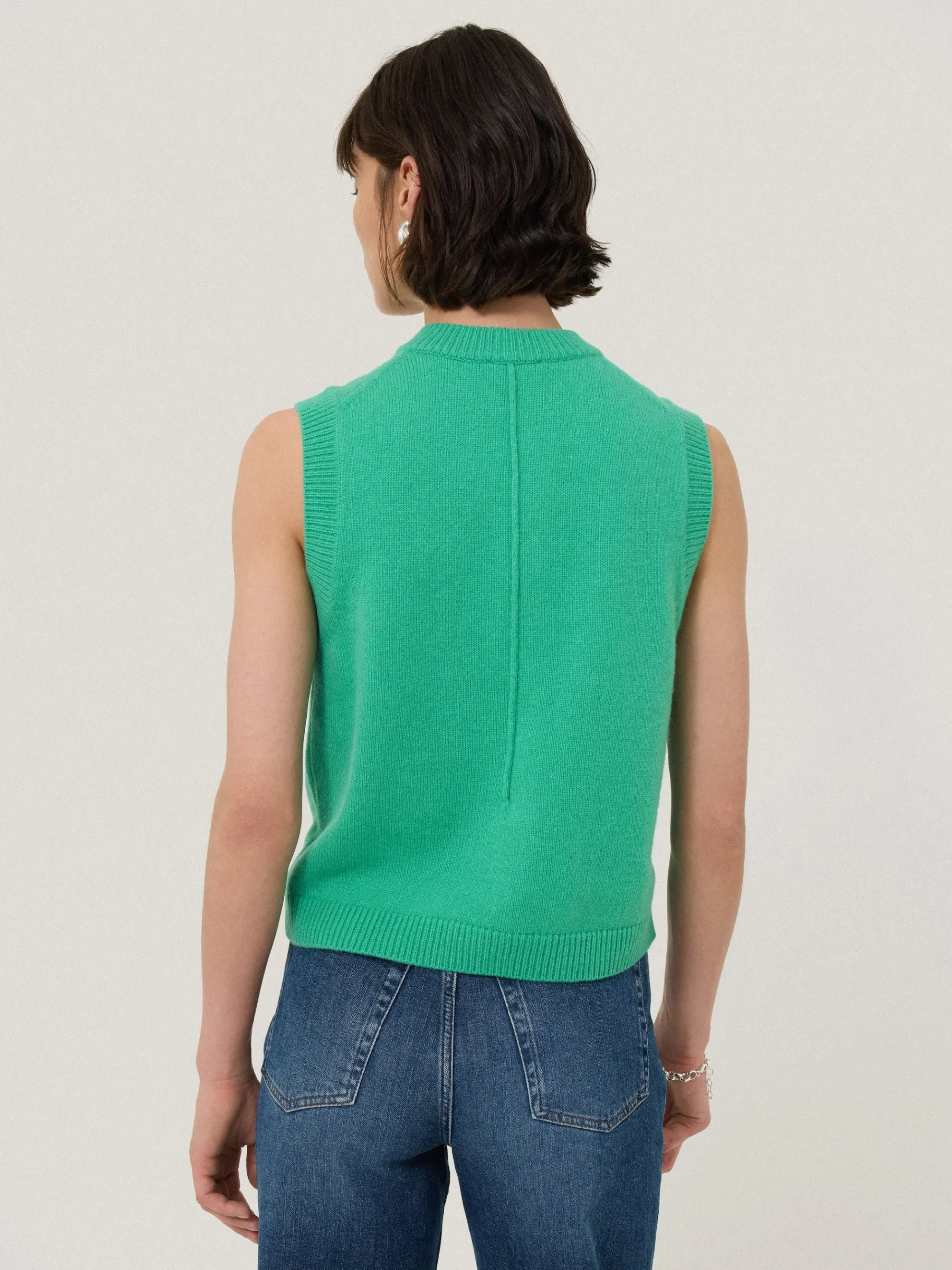 A versatile layering piece with endless outfit possibilities; this delightful waistcoat marries a classic crew neck tank shape with a chic button down front. Finished with natural Mother of Pearl buttons adds subtle iridescence to its cheerful hue.